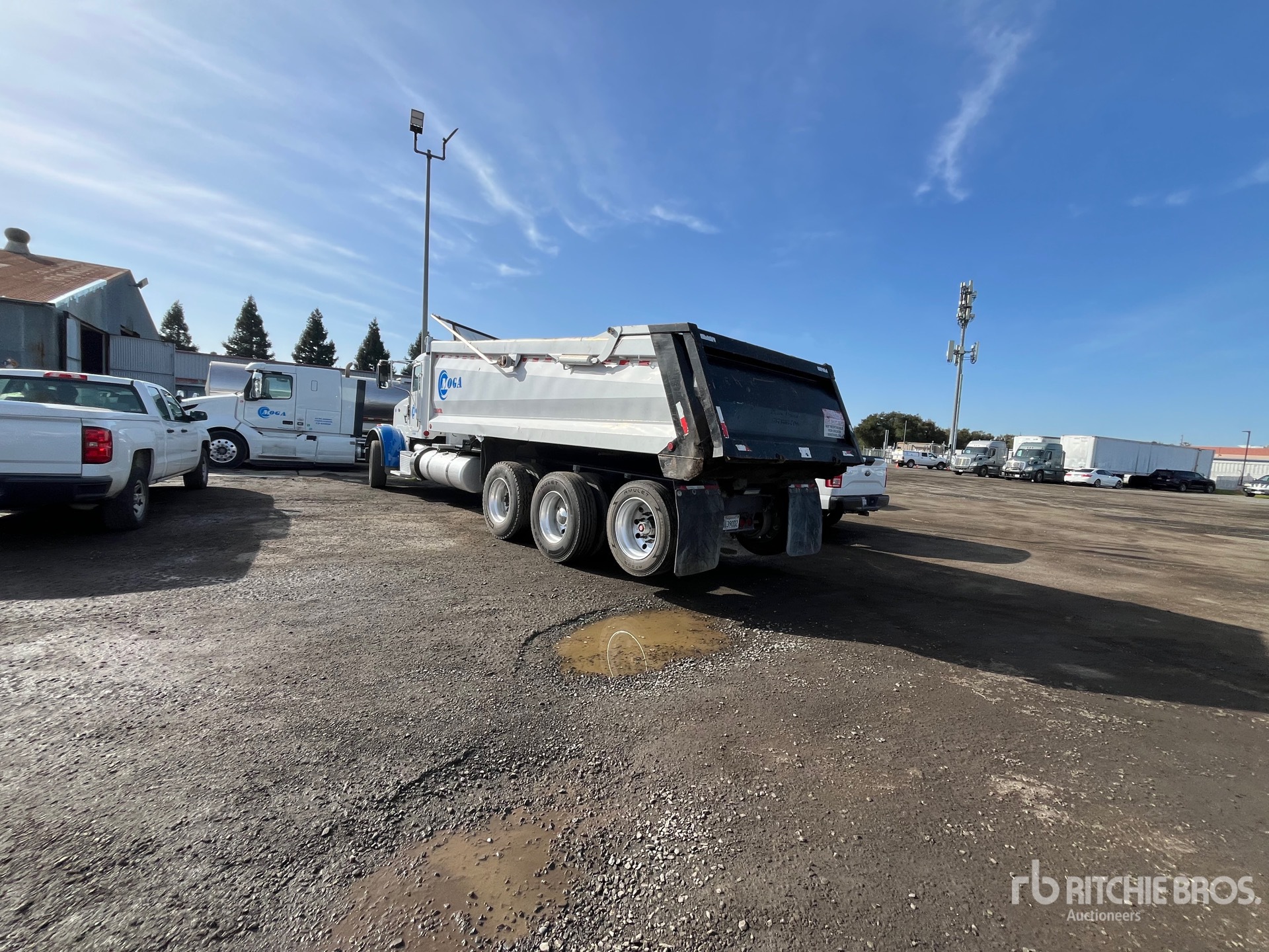 Paccar MX-13 6 Cylinder 12.9 L Diesel 405 hp Engine, US EPA Label, CARB Compliant, Requires Diesel Exhaust Fluid, Engine Brake, Allison Automatic Transmission, Aluminum Wheels, 295/80R22.5 Front Tires, 11R22.5 Rear Tires, Air Lift Tag Axle, Superior 21 ft Long x 4 ft High Steel Body, Air High-Lift Tailgate, Tailgate Chute