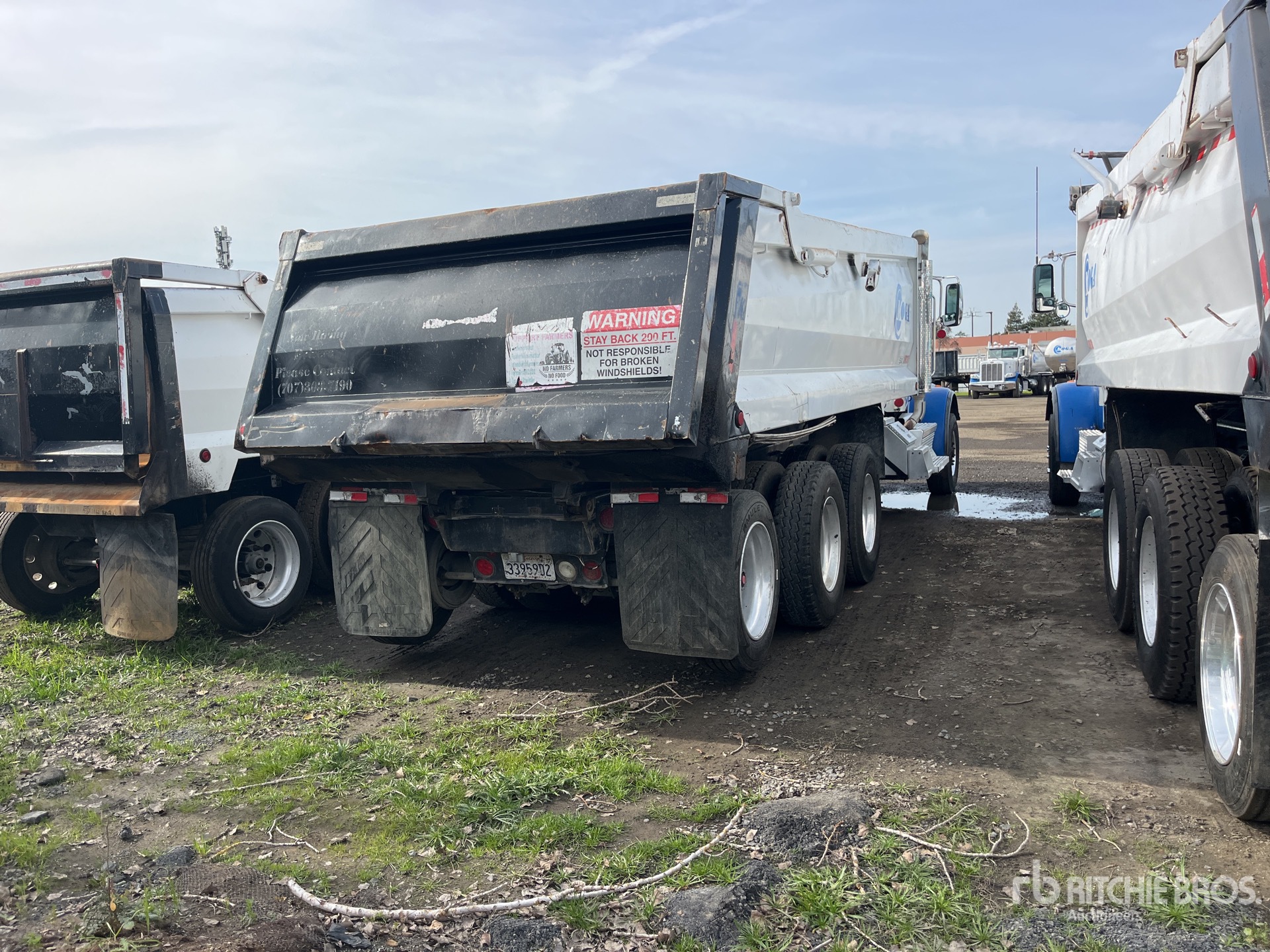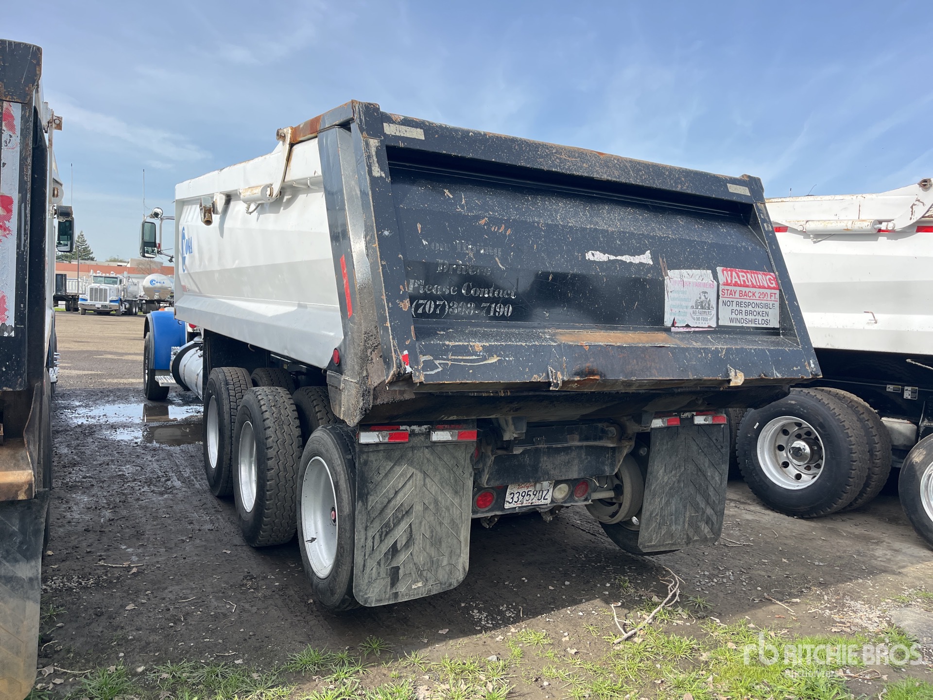 Paccar MX-13 6 Cylinder 12.9 L Diesel 405 hp Engine, US EPA Label, CARB Compliant, Requires Diesel Exhaust Fluid, Paccar Automatic Transmission, 20000 lb Front Axle, 40000 lb Rears, 315/80R22.5 Front Tires, 11R22.5 Rear Tires, Trailing Tag Axle, Superior 21 ft Long x 4 ft High Body, Electric Roll Tarp, Air High-Lift Tailgate, Tailgate Chute