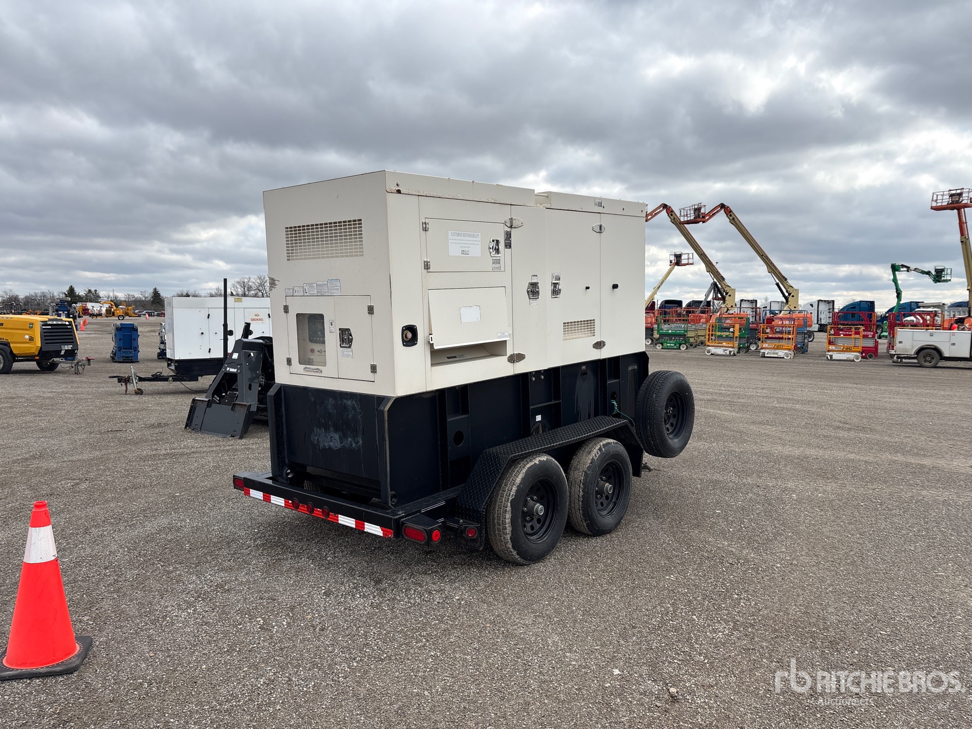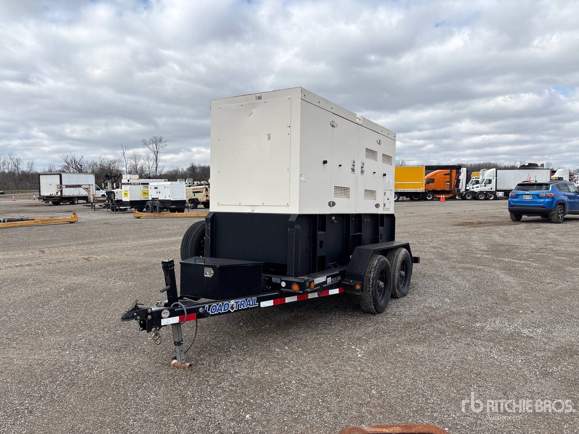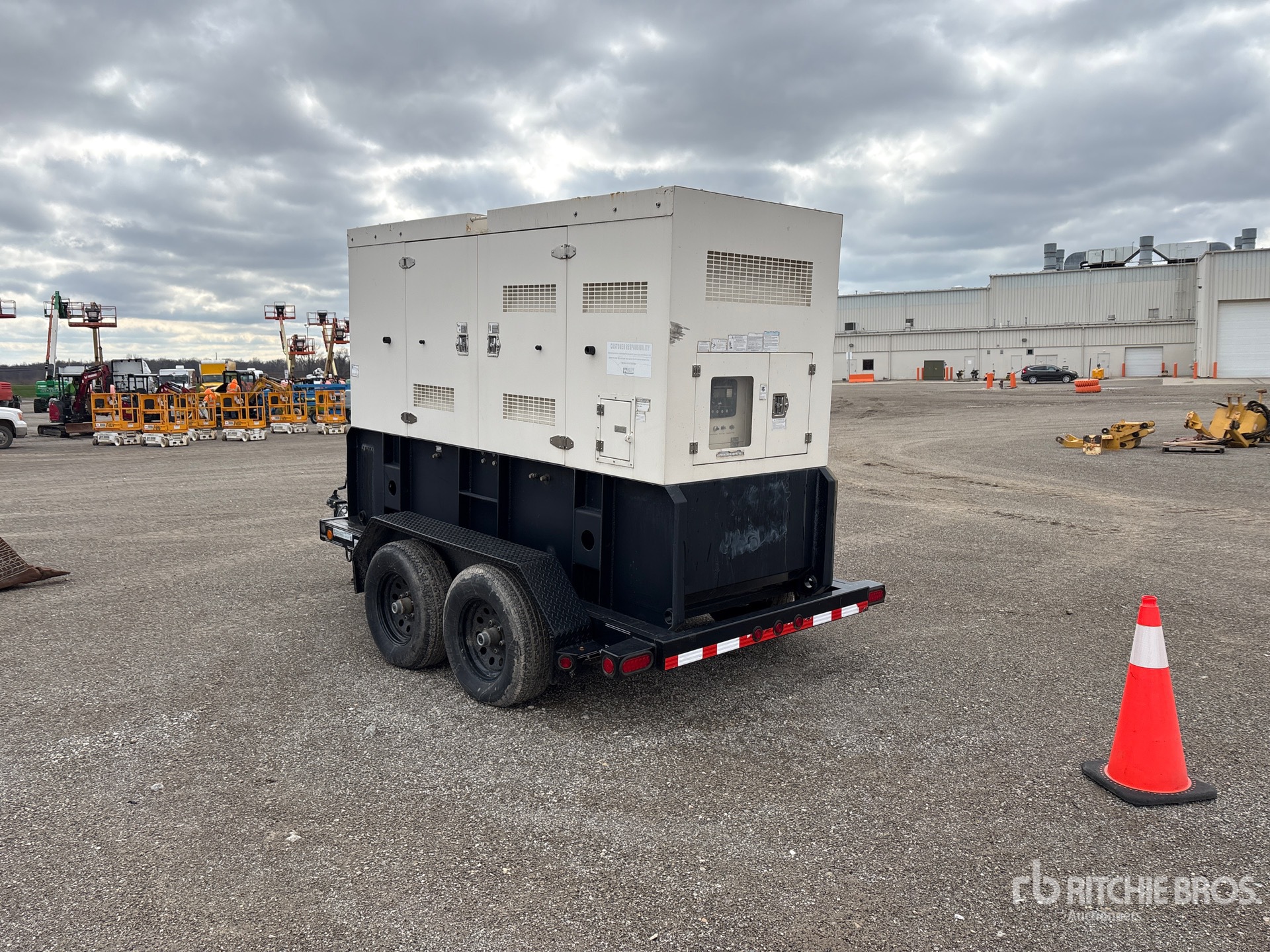 2017 US EPA Label, John Deere 4045HF285-158 4 Cylinder 118 kW 4.5 L Diesel Engine, /99 kW Rated 3 Phase Output, 277 V / 480 V Rated Voltage, 120 V / 240 V Rated Voltage, Sound Attenuated, Ball Hitch Carrier Trailer