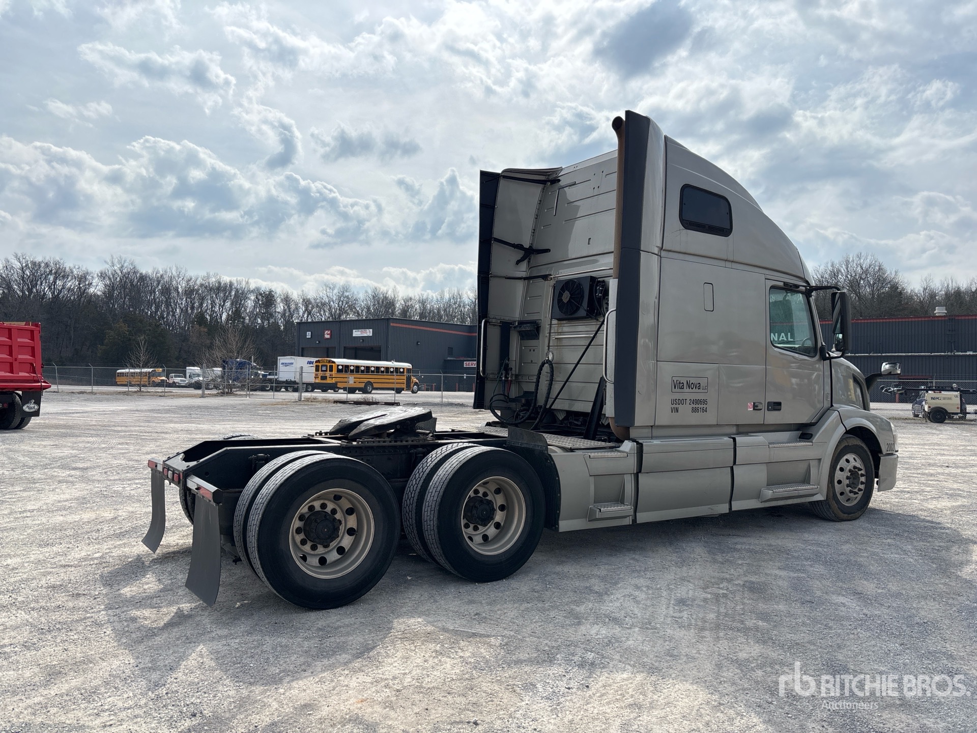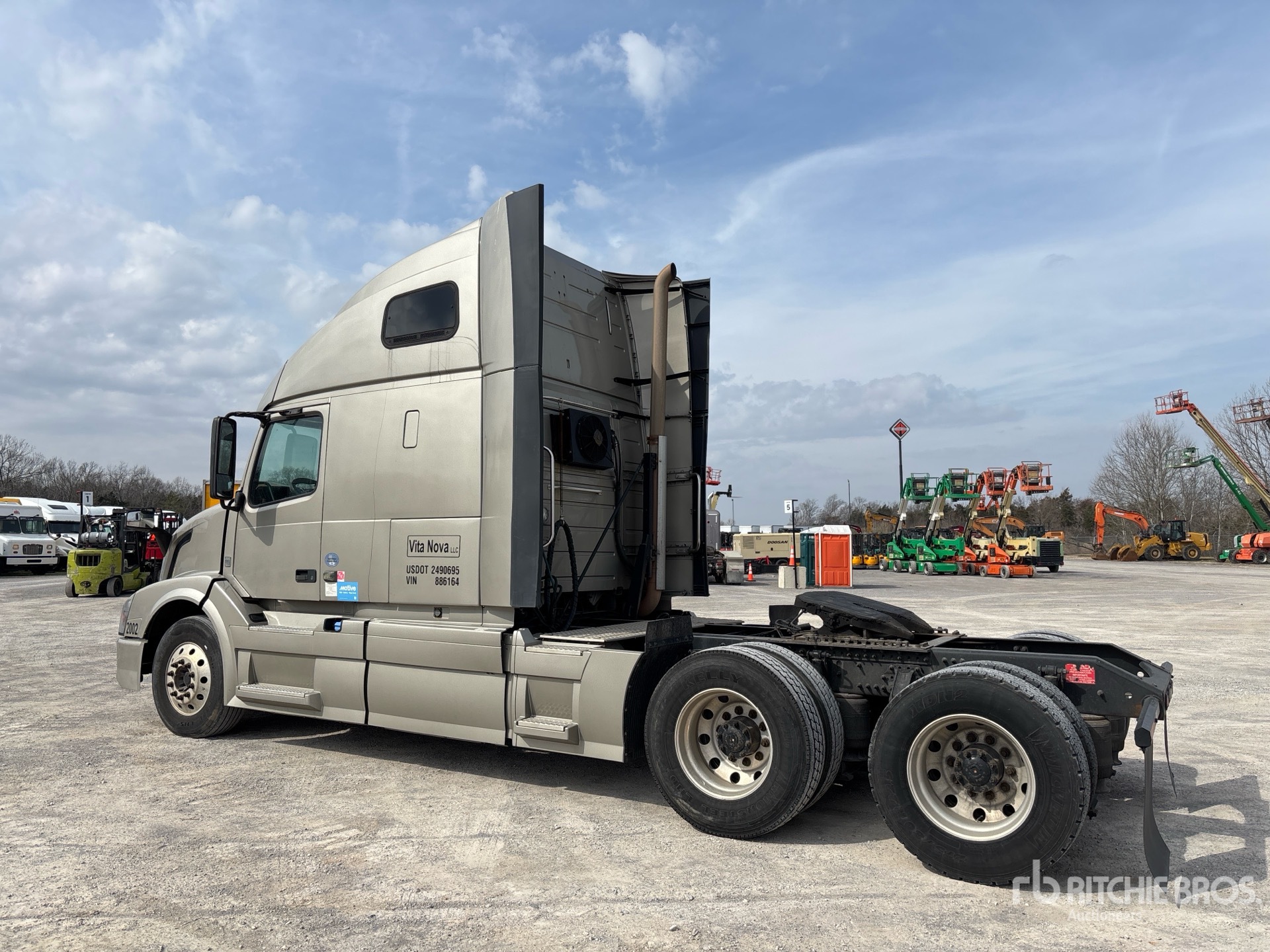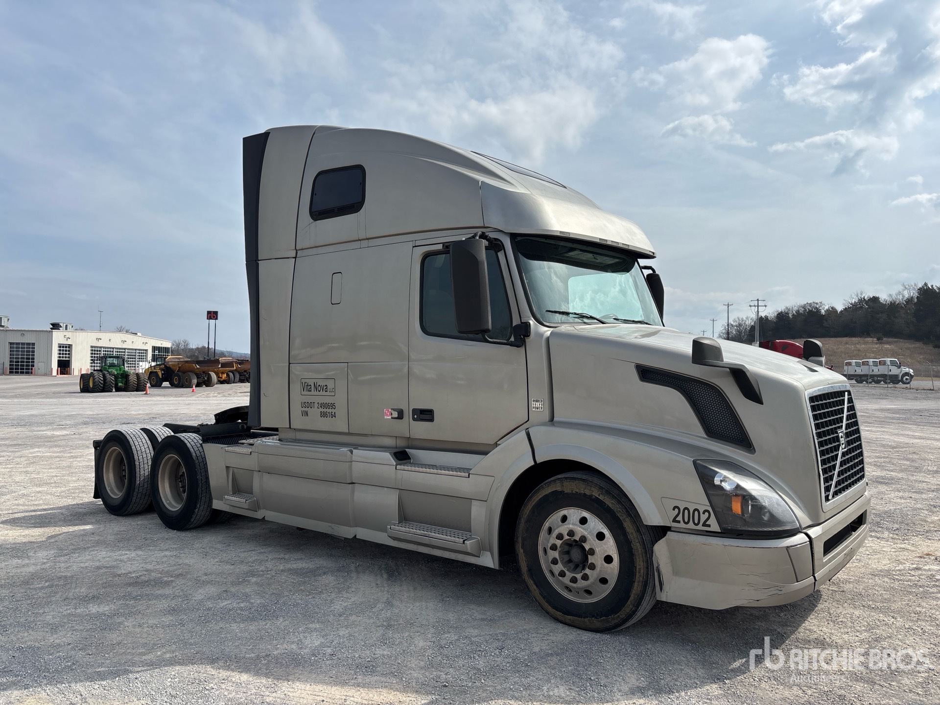 Located in Lane 4 Spot 8, Volvo D13M 425 hp Engine, US EPA Label, 25652 Engine hrs, Volvo ATO2612F 12-Speed Automated Transmission, 12350 lb Front Axle, 38000 lb Rears, 50350 lb GVWR, Engine Brake, 61 in High Rise Sleeper Cab, Bunk Beds, 218 in Wheelbase, Air Suspension, Aluminum Wheels, 295/75R22.5, Air Sliding 5th Wheel, Dual Fuel Tanks