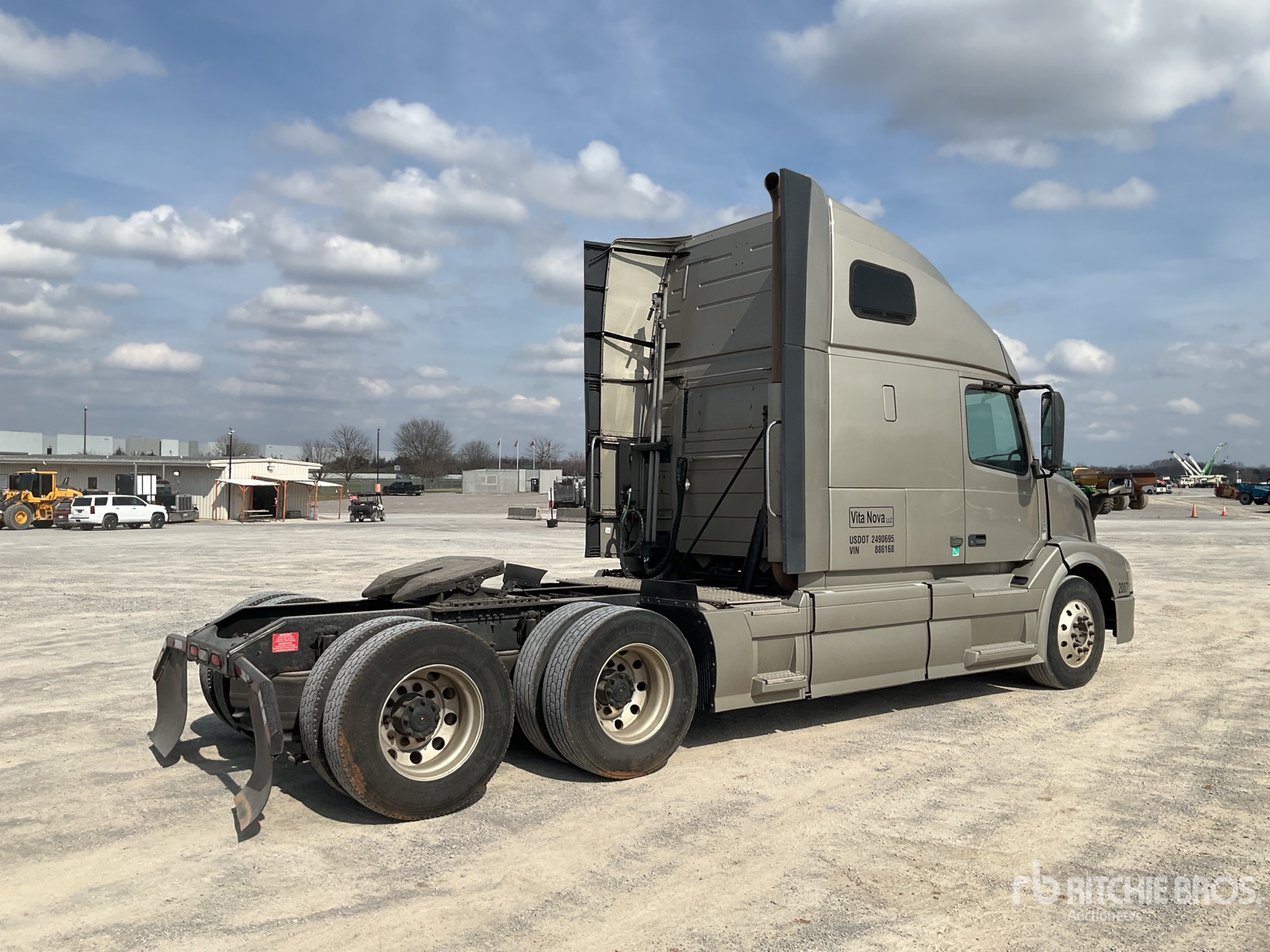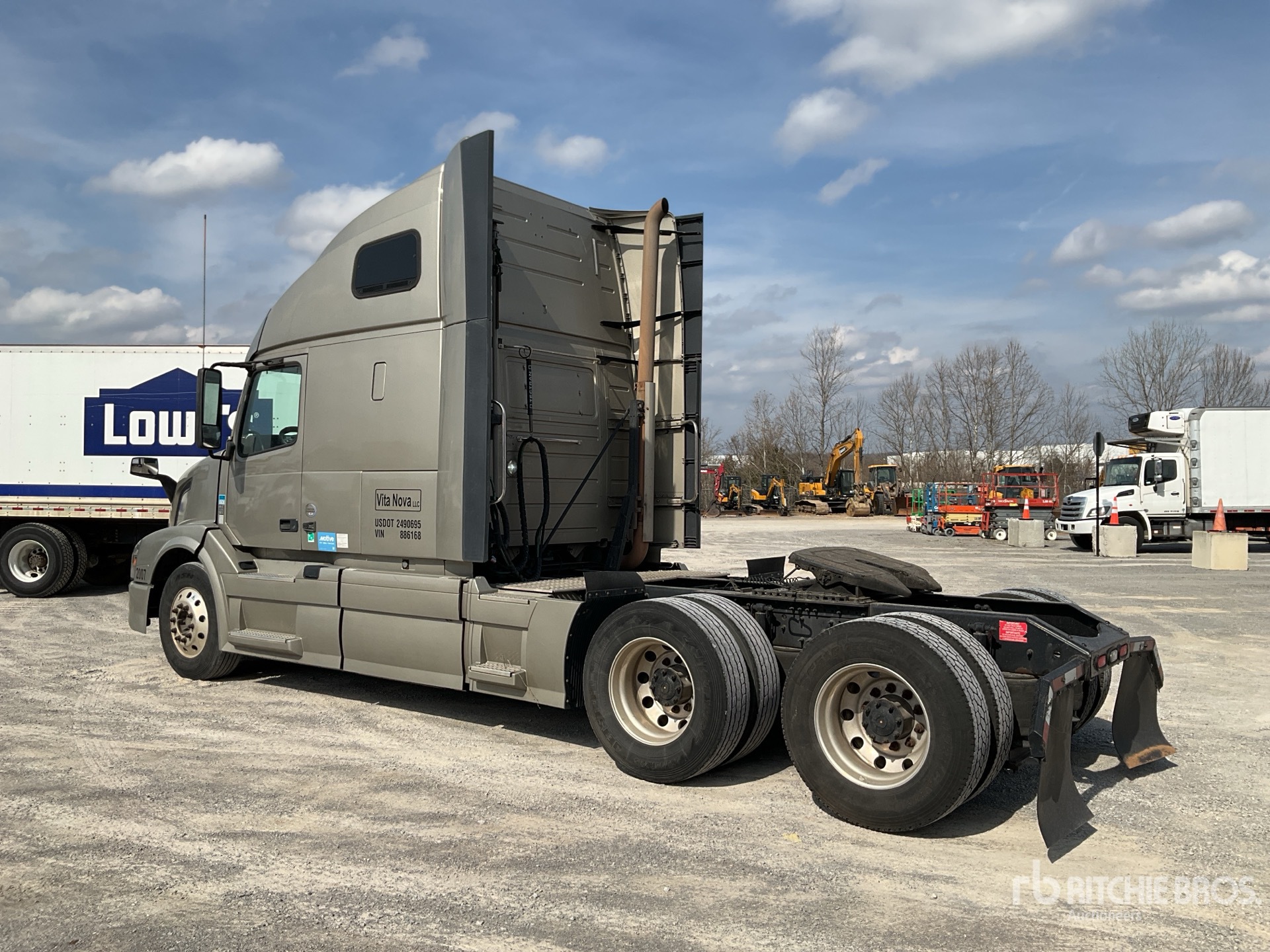Located in Lane 4 Spot 7, Volvo D13M 425 hp Engine, 2017 US EPA Label, 16198 Engine hrs, Volvo AT2612F 12-Speed Automated Transmission, 12350 lb Front Axle, 38000 lb Rears, 50350 lb GVWR, Engine Brake, 61 in High Rise Sleeper Cab, Bunk Beds, 220 in Wheelbase, Air Suspension, Aluminum Outer Wheels, 295/75R22.5 Front Tires, 295/75R22.5 Rear Tires, Air Sliding 5th Wheel