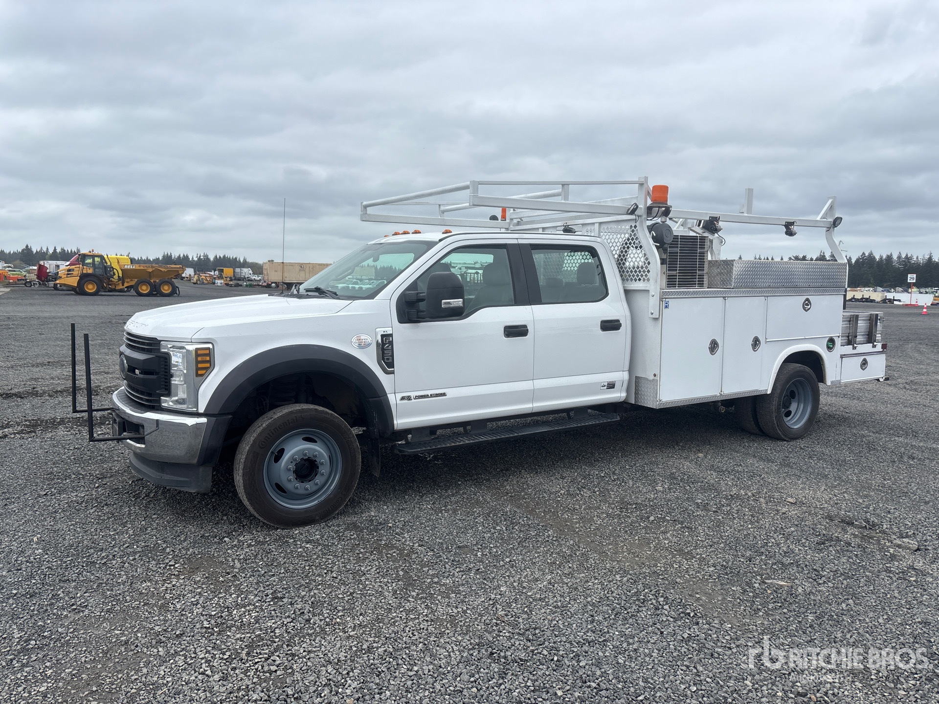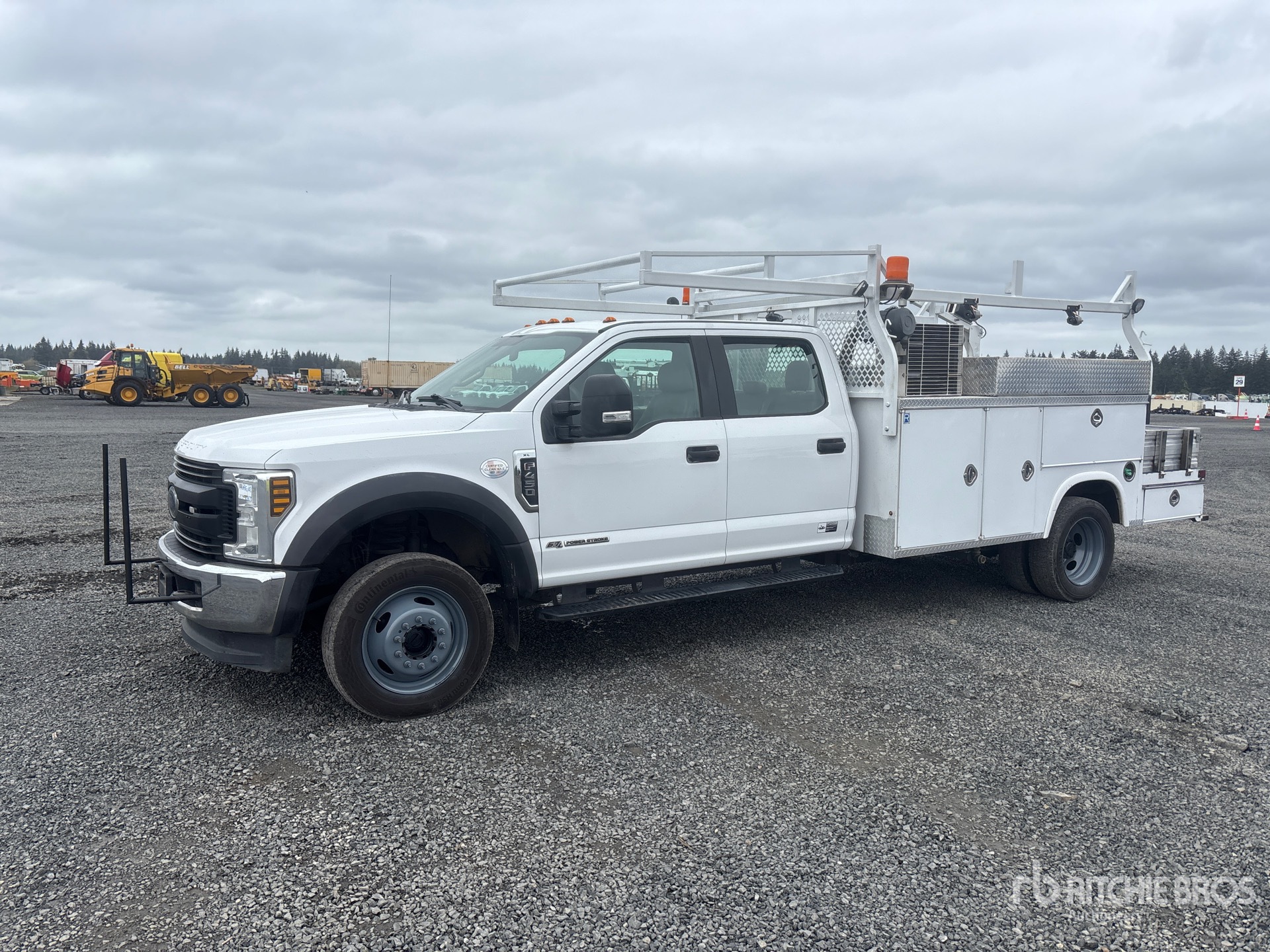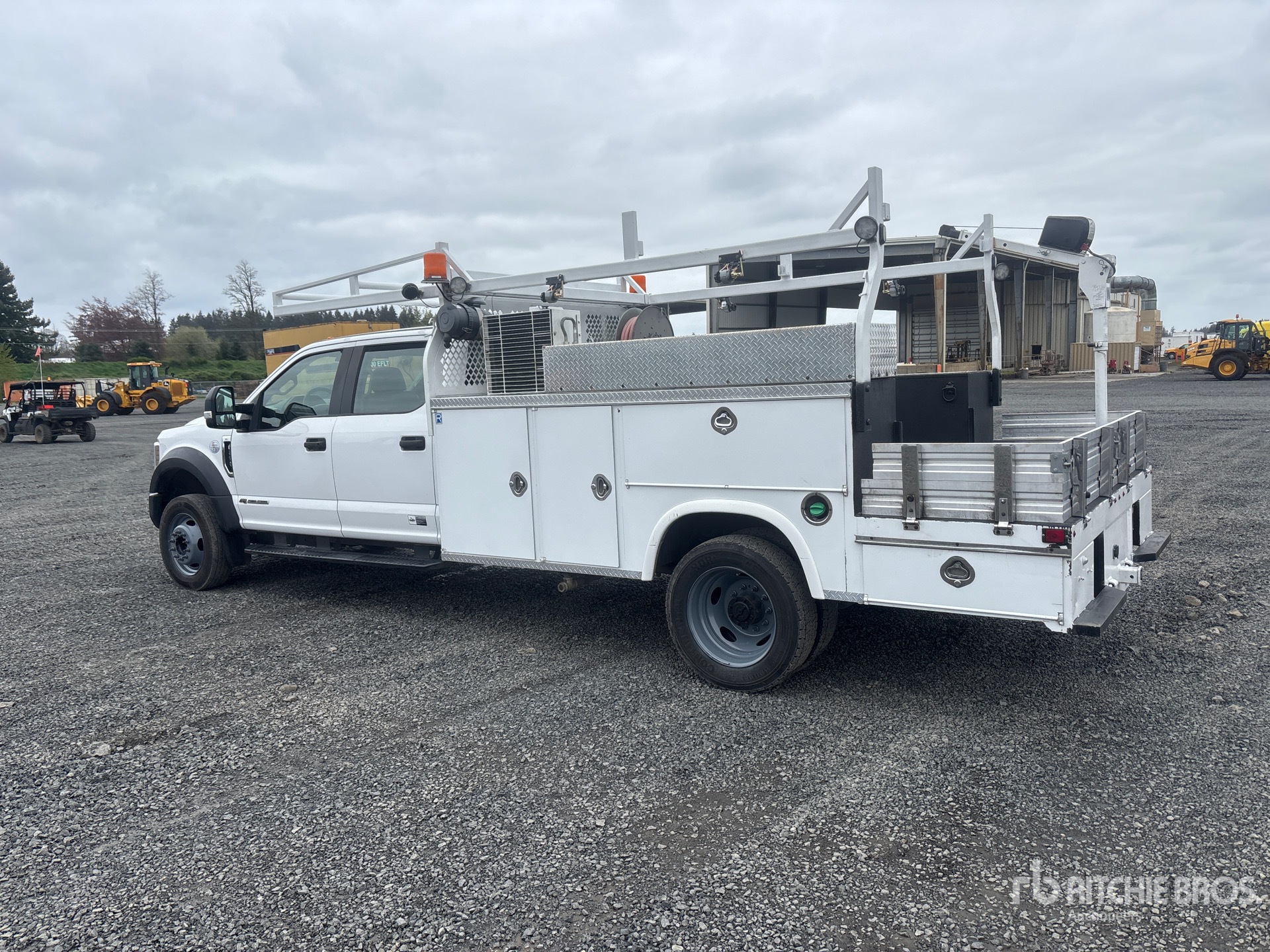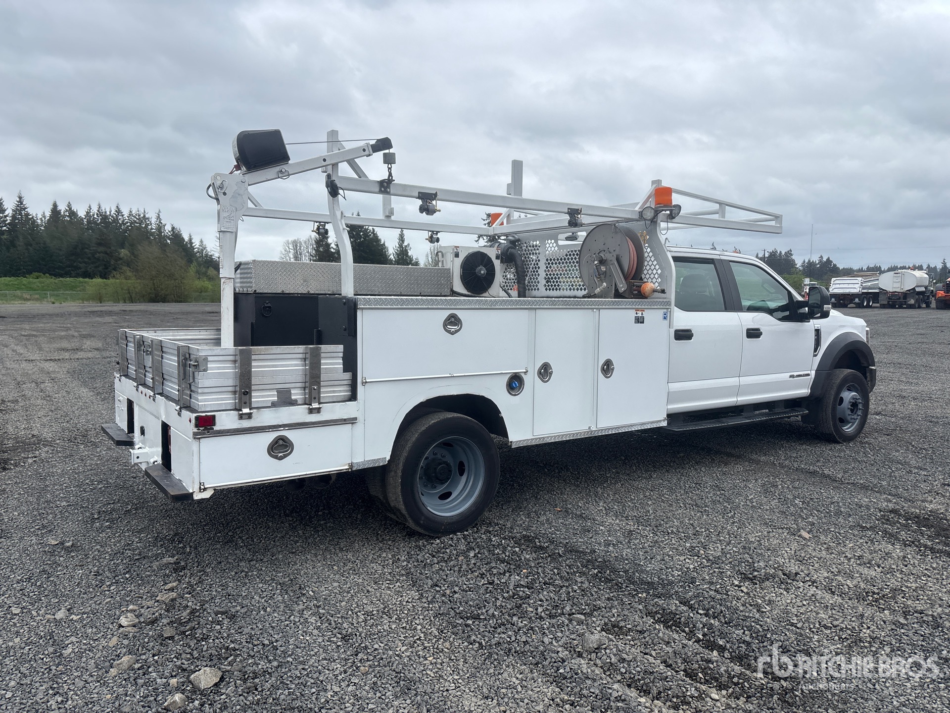 Ford 4V F-Series V8 6.7 L Diesel 330 hp Engine, 2019 US EPA Label, Requires Diesel Exhaust Fluid, Automatic Transmission, 7000 lb Front Axle, 12880 lb Rears, 16000 lb GVWR, 225/70R19.5, Spring Suspension, 203 in Wheelbase, PTO, Royal Truck Body A000066043 9 ft Body, Western Mule P10 Series 1000 lb 2 Section Electric Crane, VanAir V-Tec PTO Air Compressor, Air Hose Reel