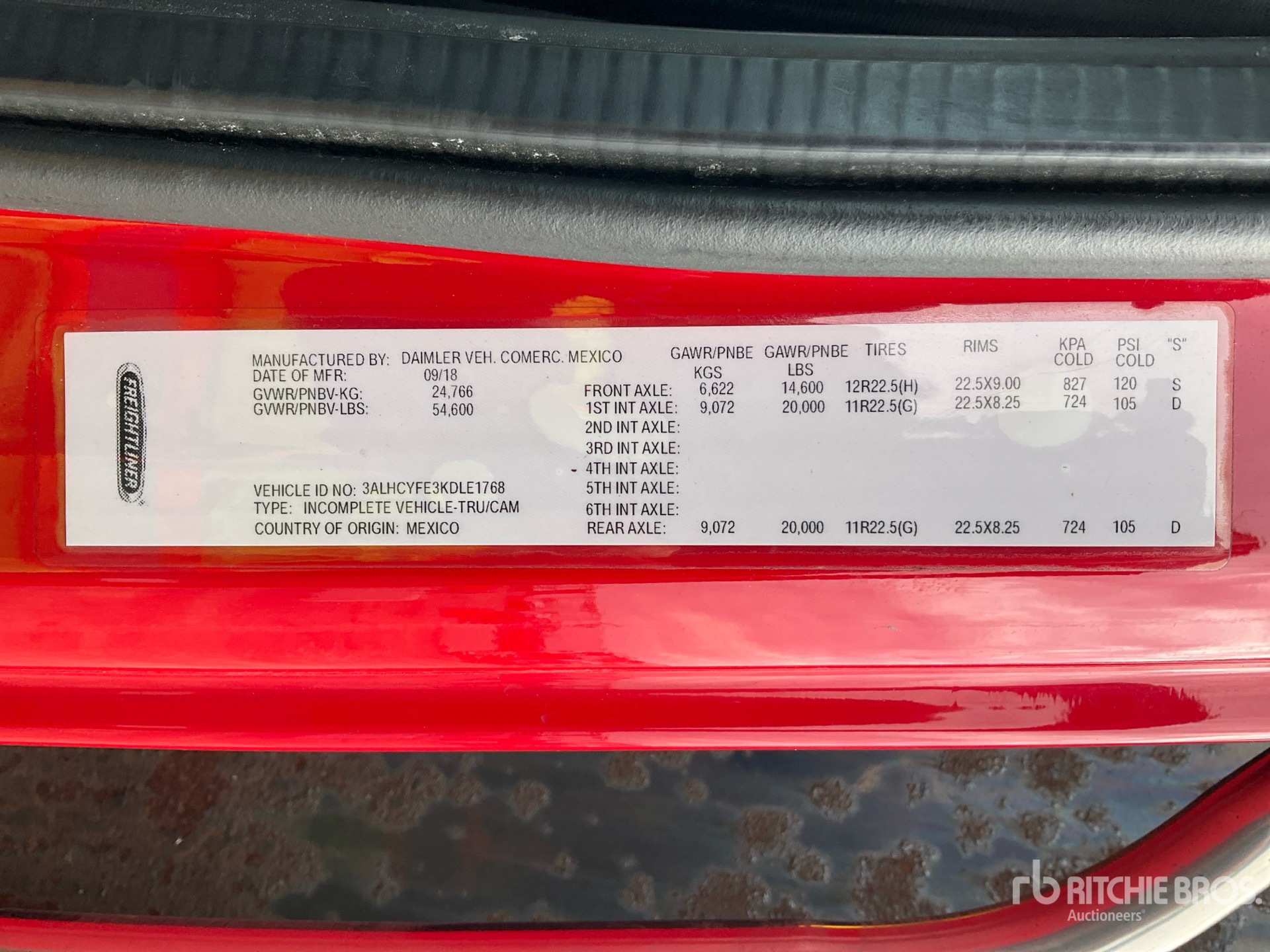 Located in Lane 46 Spot 19, Cummins L9 6 Cylinder 9.0 L Diesel 300 hp Engine, Requires Diesel Exhaust Fluid, 8683.1 Engine hrs, Eaton Fuller FR-9210B 10-Speed Manual Transmission, 14600 lb Front Axle, 40000 lb Rears, Meritor MT-40-14X Drive Axles, 3.42:1 Axle Ratio, 54600 lb GVWR, Air Ride Cab, Aluminum Wheels, 11R22.5, Double Frame, Airliner Air Ride Suspension, 274 in Wheelbase, 24 ft x 96 in Bed, Liftgate, Forklift Mount Kit