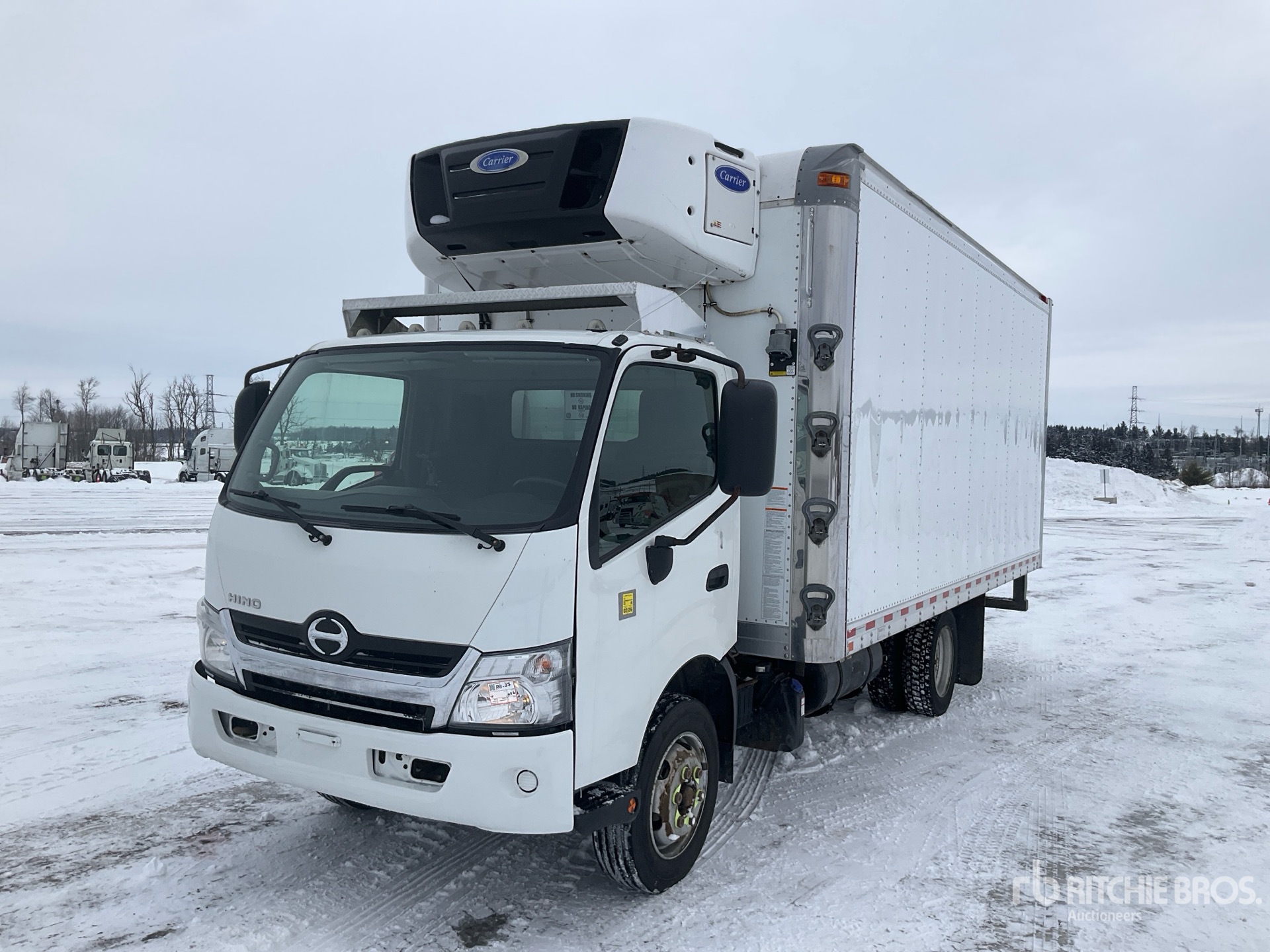 Hino J05E-TP 4 Cylinder 5.1 L Diesel 210 hp Engine, 2018 US EPA Label, Automatic Transmission, 7270 lb Front Axle, 13660 lb Rears, 19500 lb GVWR, 225/70R19.5, Spring Suspension, 152 in Wheelbase, Carrier Reefer Unit, 7765 Reefer Engine Hours:, Standby Power, Morgan 18 ft x 102 in Wide x 89 in High Body, Professionally-Maintained-Fleet-Vehicle-Pag