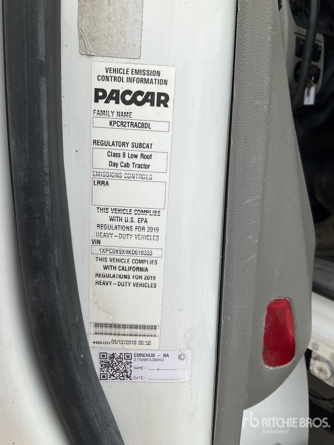 Paccar Engine, 51 Engine hrs, 12350 lb Front Axle, 40000 lb Rears, 222 in Wheelbase, Air Suspension, Aluminum Wheels, 11R22.5 Front Tires, 455/55R22.5 Super Singles Rear Tires, Dual Fuel Tanks