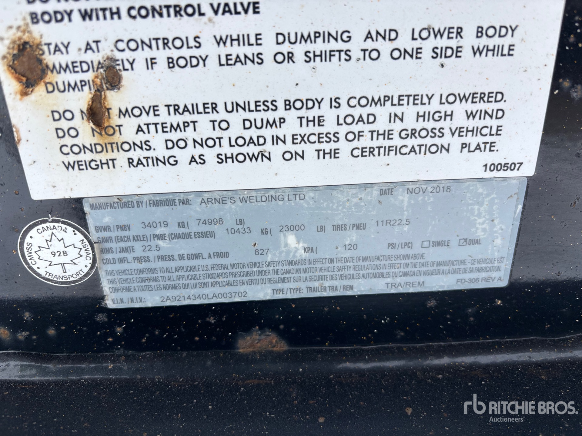 Las mediciones se expresan de modo estimativo solamente. Las dimensiones reales de la carga pueden variar según la altura del camión o remolque y la posición o configuración de la máquina cargada. Es responsabilidad del comprador calcular las dimensiones de las cargas antes de abandonar nuestro sitio de subastas a fin de garantizar que aquellas se pueden transportar de modo seguro. El comprador deberá verificar todas las dimensiones. No confíe en estas dimensiones para fines de transporte.