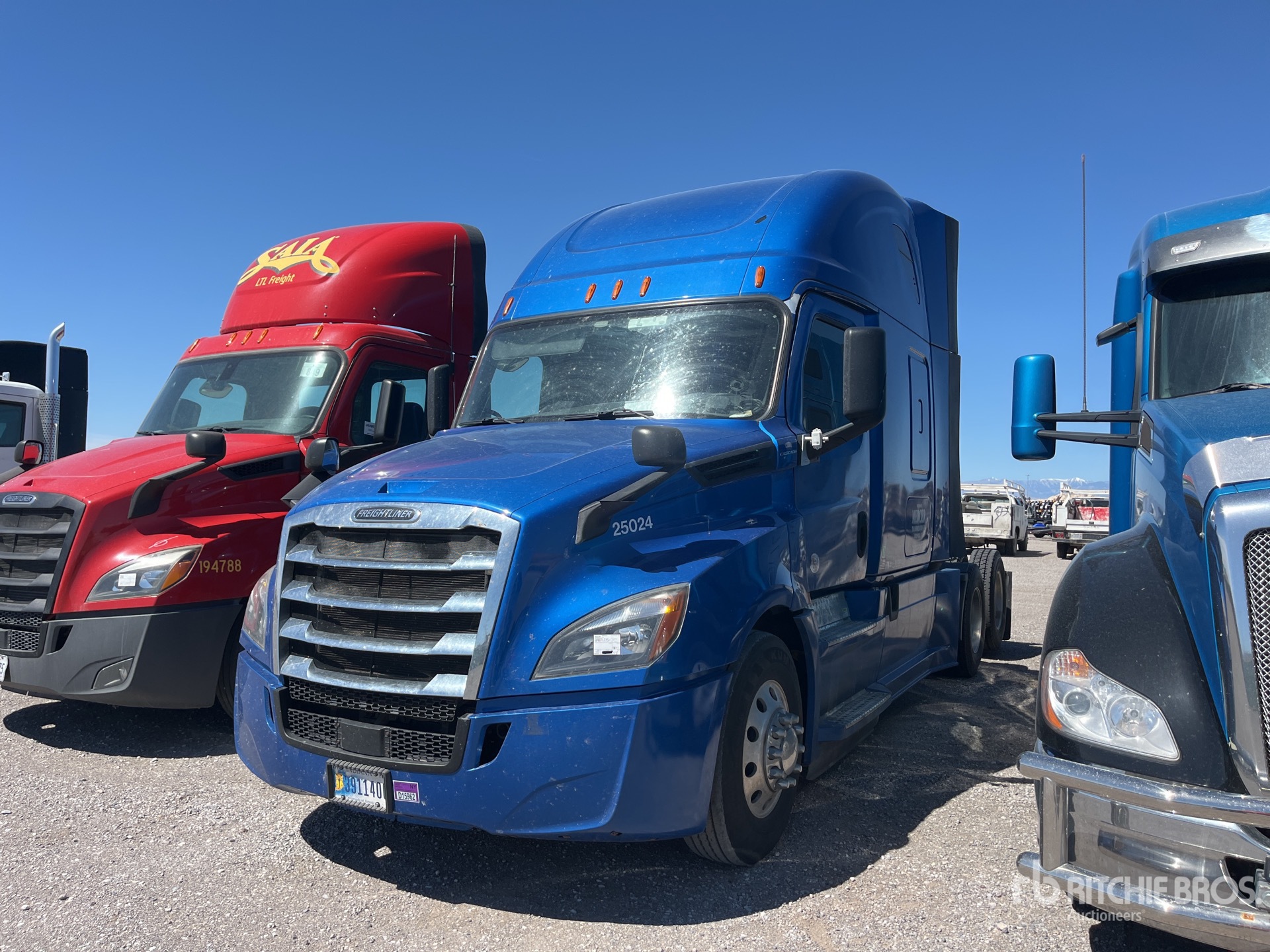 Detroit DD15 400 hp Engine, 2019 US EPA Label, 18921 Engine hrs, Detroit DT12-1750-DH1 12-Speed Automated Transmission, 12350 lb Front Axle, 40000 lb Rears, 52350 lb GVWR, Engine Brake, 70 in High Rise Sleeper Cab, Bunk Beds, 227 in Wheelbase, Air Suspension, Aluminum Wheels, 295/75R22.5, Air Sliding 5th Wheel, Dual Fuel Tanks, Headache Rack