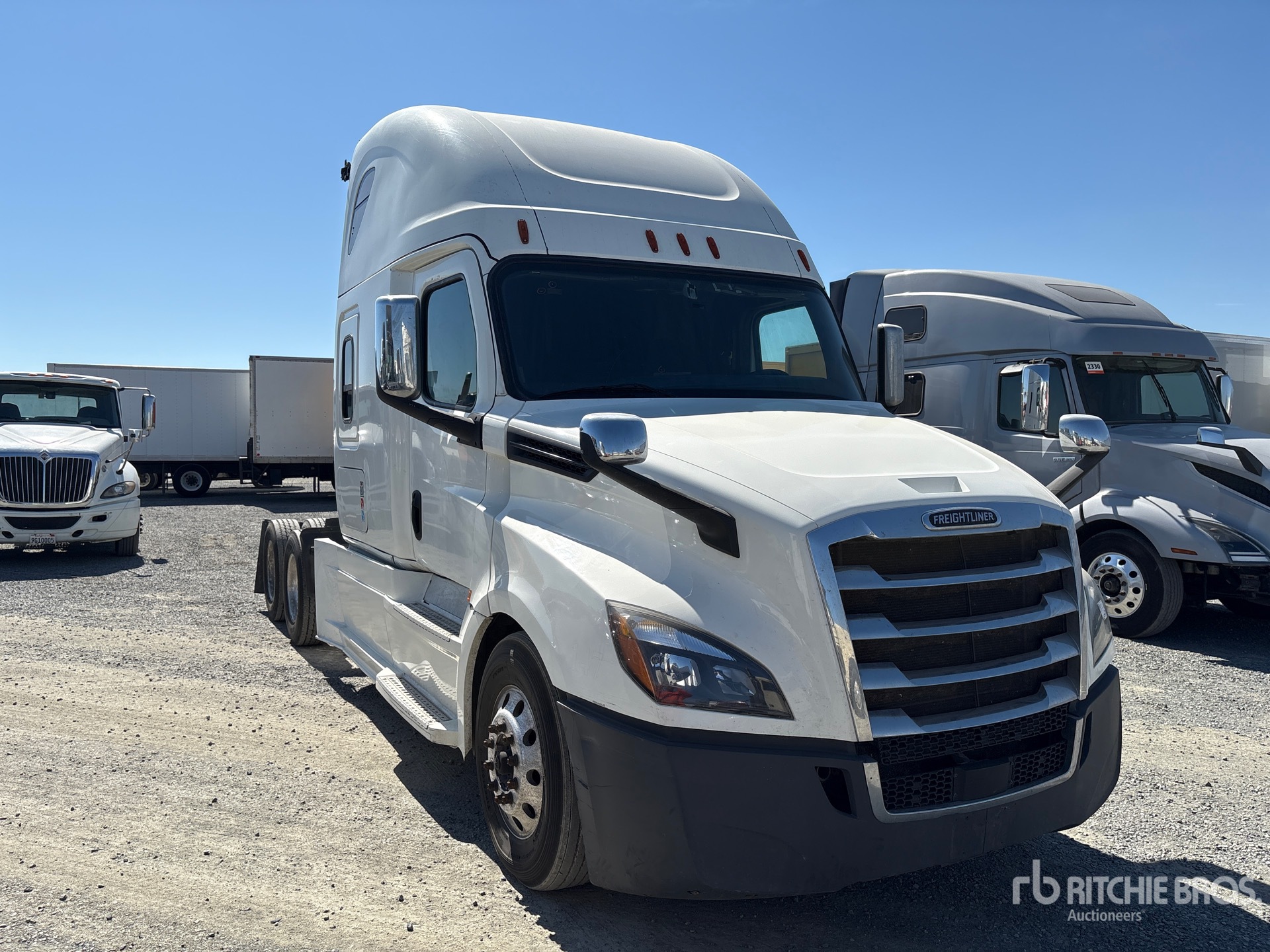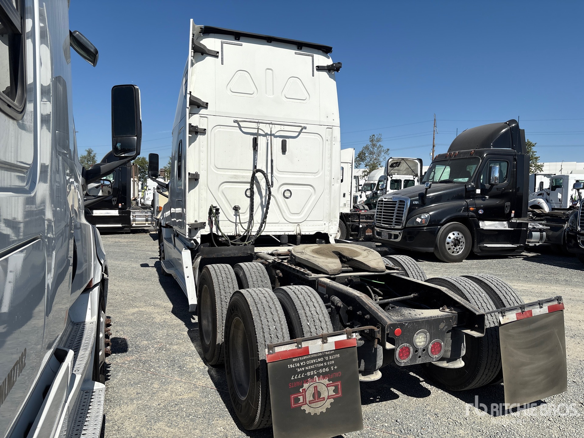 Located in Lane 6 Spot 16, Detroit DD15 455 hp Engine, 19461 Engine hrs, Detroit DT12-1750-DH Automated Transmission, 12350 lb Front Axle, 40000 lb Rears, 52350 lb GVWR, Engine Brake, 72 in High Rise Sleeper Cab, Bunk Beds, 227 in Wheelbase, Air Suspension, 295/75R22.5, Air Sliding 5th Wheel, Dual Fuel Tanks
