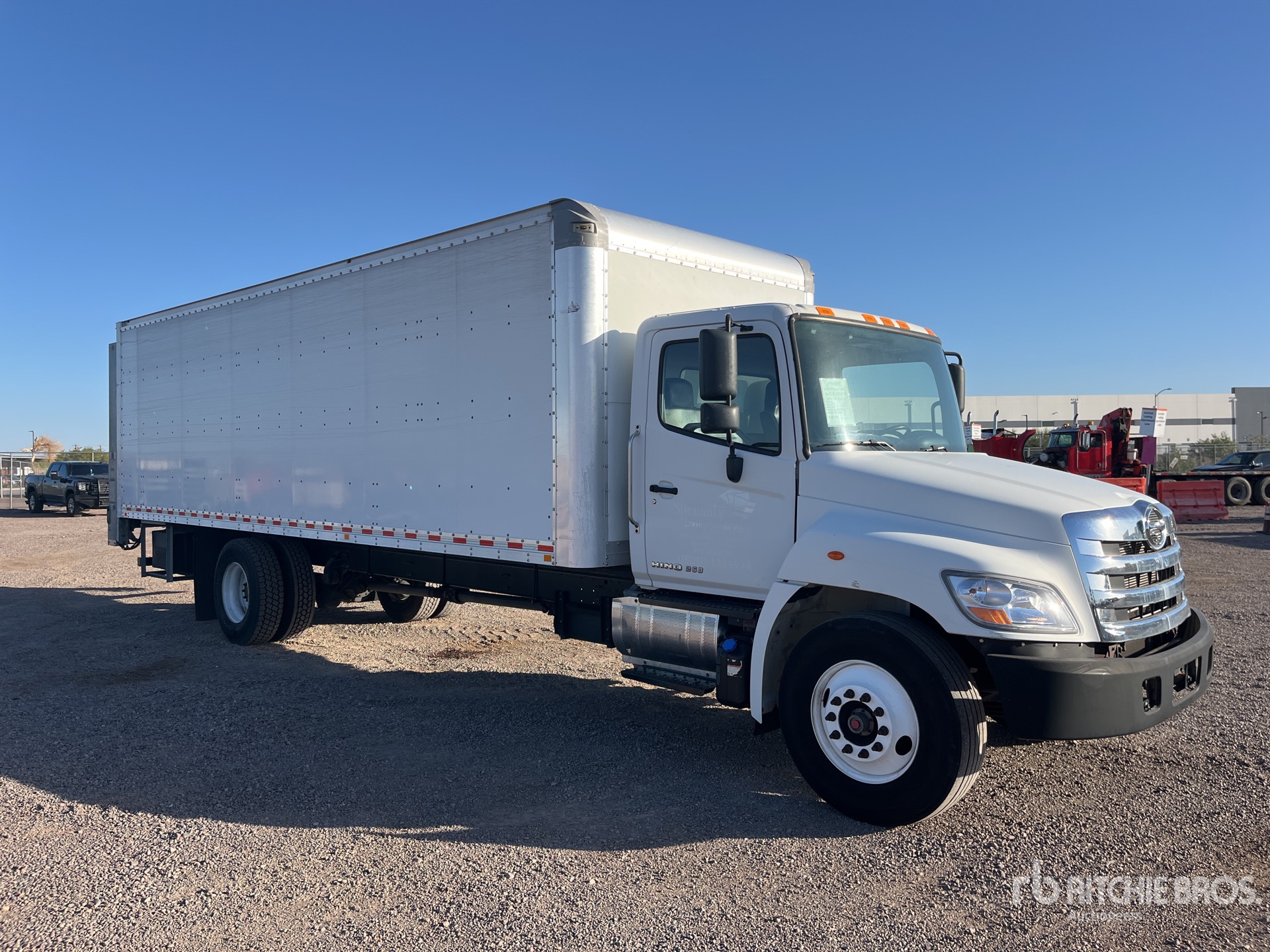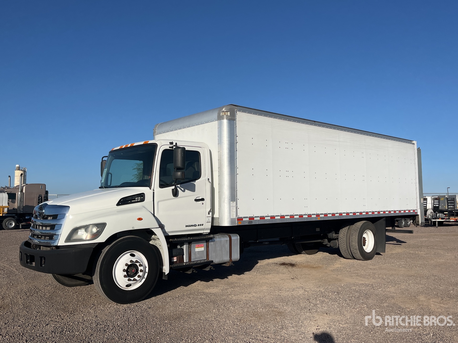 Located in Lane 19 Spot 54, Hino J08E-WU 6 Cylinder 7.7 L Diesel 230 hp Engine, 2018 US EPA Label, Requires Diesel Exhaust Fluid, 7786 Engine hrs, Automatic Transmission, 10000 lb Front Axle, 19000 lb Rears, 25950 lb GVWR, 11R22.5, Air Ride Suspension, 272 in Wheelbase, Morgan 26 ft x 102 in Wide x 85 in High Body, Liftgate, Professionally-Maintained-Fleet-Vehicle-PAG