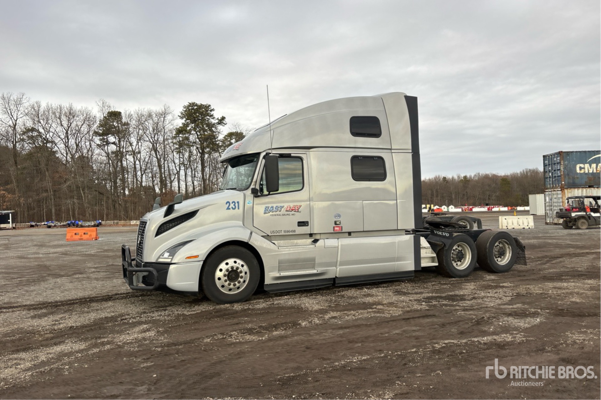 Located in Lane 53 Spot 52, Volvo D13 425 hp Engine, US EPA Label, 15422 Engine hrs, Volvo AT2612F 12-Speed Automated Transmission, 12350 lb Front Axle, 38000 lb Rears, 50350 lb GVWR, 70 in High Rise Sleeper Cab, Bunk Beds, Auxiliary Power Unit, Carrier Sleeper Air Conditioner, 234 in Wheelbase, Air Suspension, Aluminum Wheels, 295/75R22.5 Front Tires, 445/50R22.5 Super Singles Rear Tires, Air Sliding 5th Wheel, Dual Fuel Tanks
