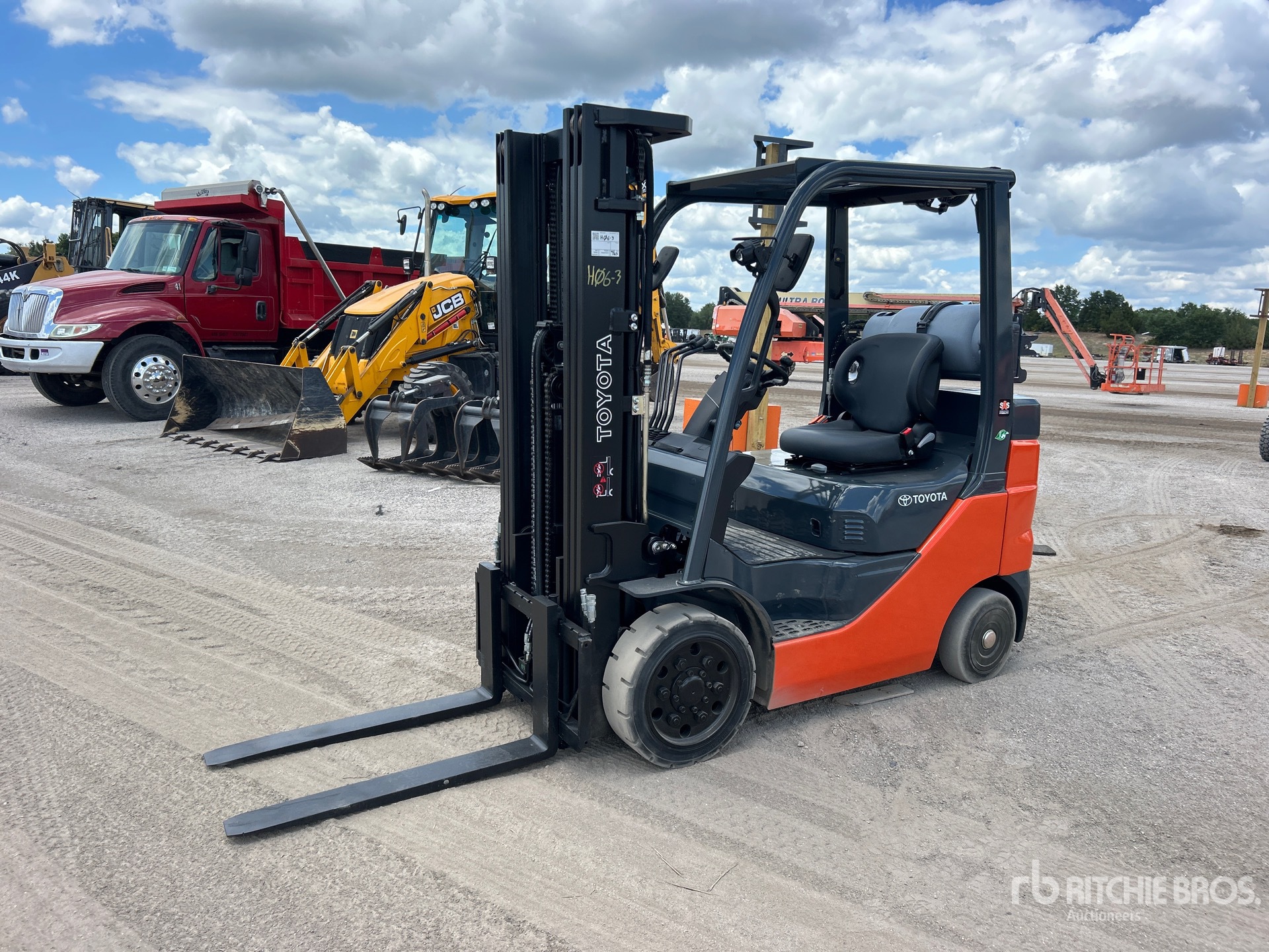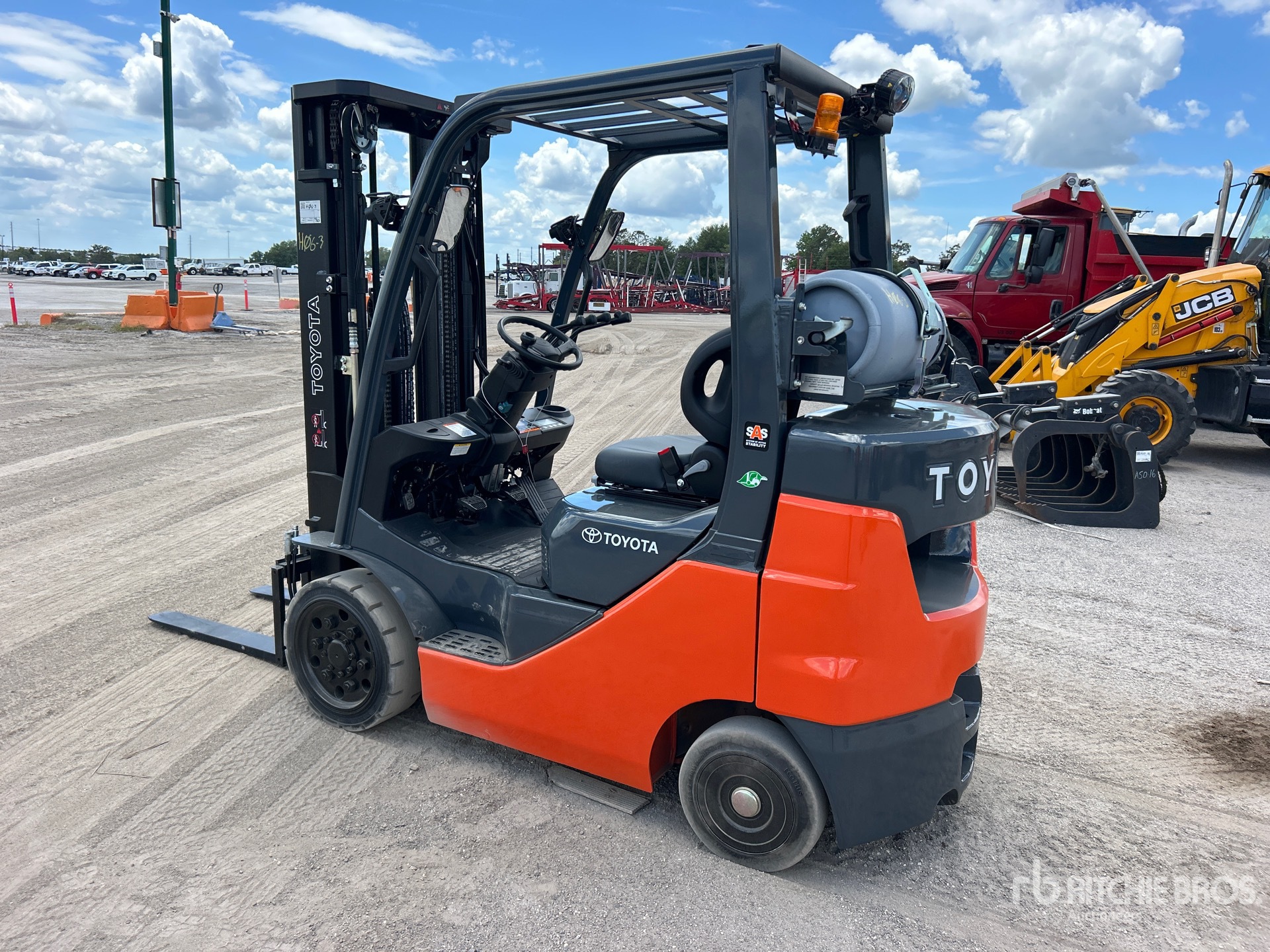 3 Stage Mast, Full Free Lift, 189 in Max Lift Height, 84 in Lowered Mast Height, 38 in Forks, Auxiliary Hydraulic Plumbing, Solid Pneumatic Tires, 2020 US EPA Label, Toyota 4 Cylinder 38 kW 2.2 L LPG Engine