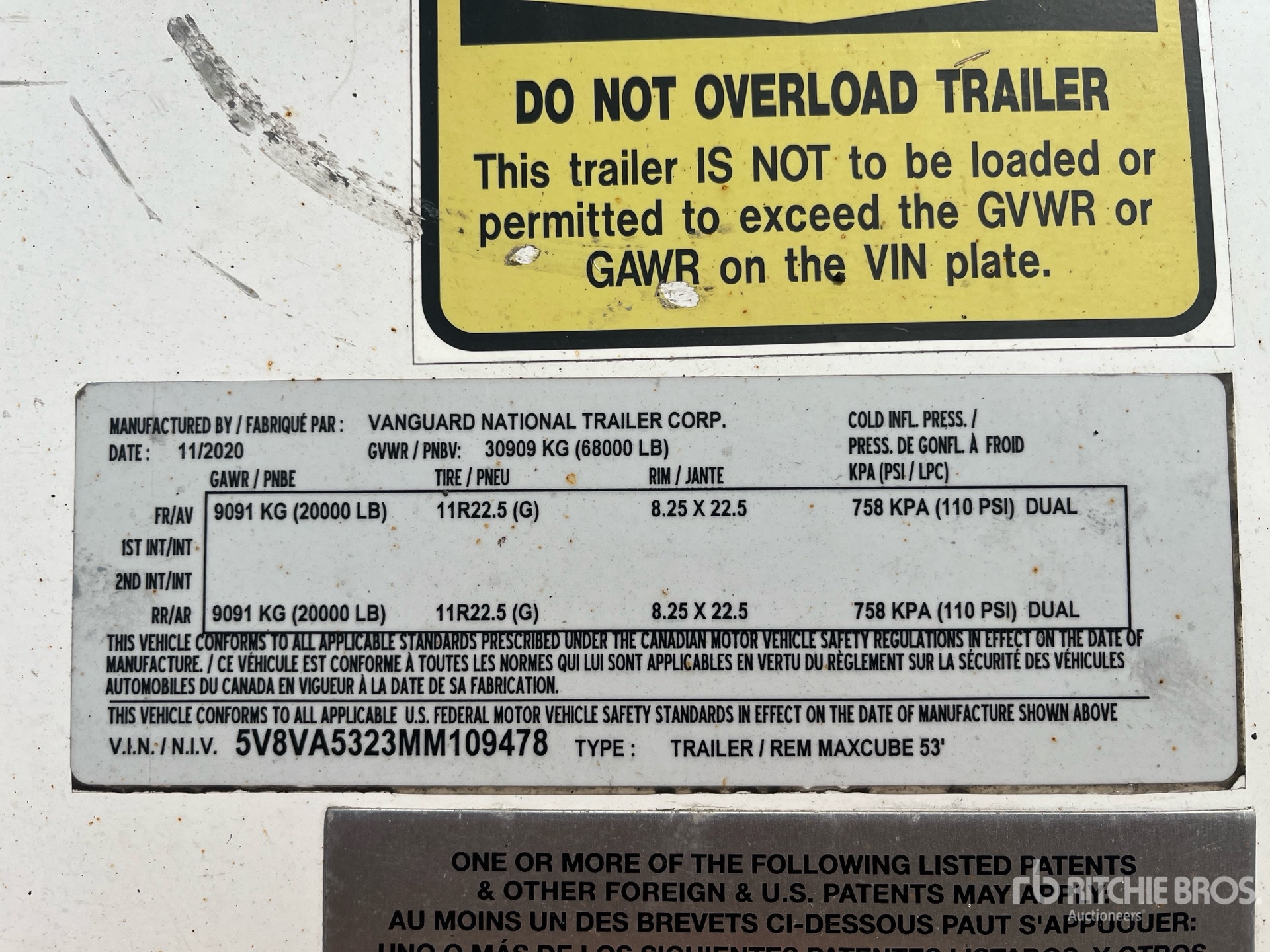 Air Ride Sliding Suspension, Pintle Hitch, Hardwood Floor, Swing Door, 11R22.5 Tires, 68000 lb GVWR