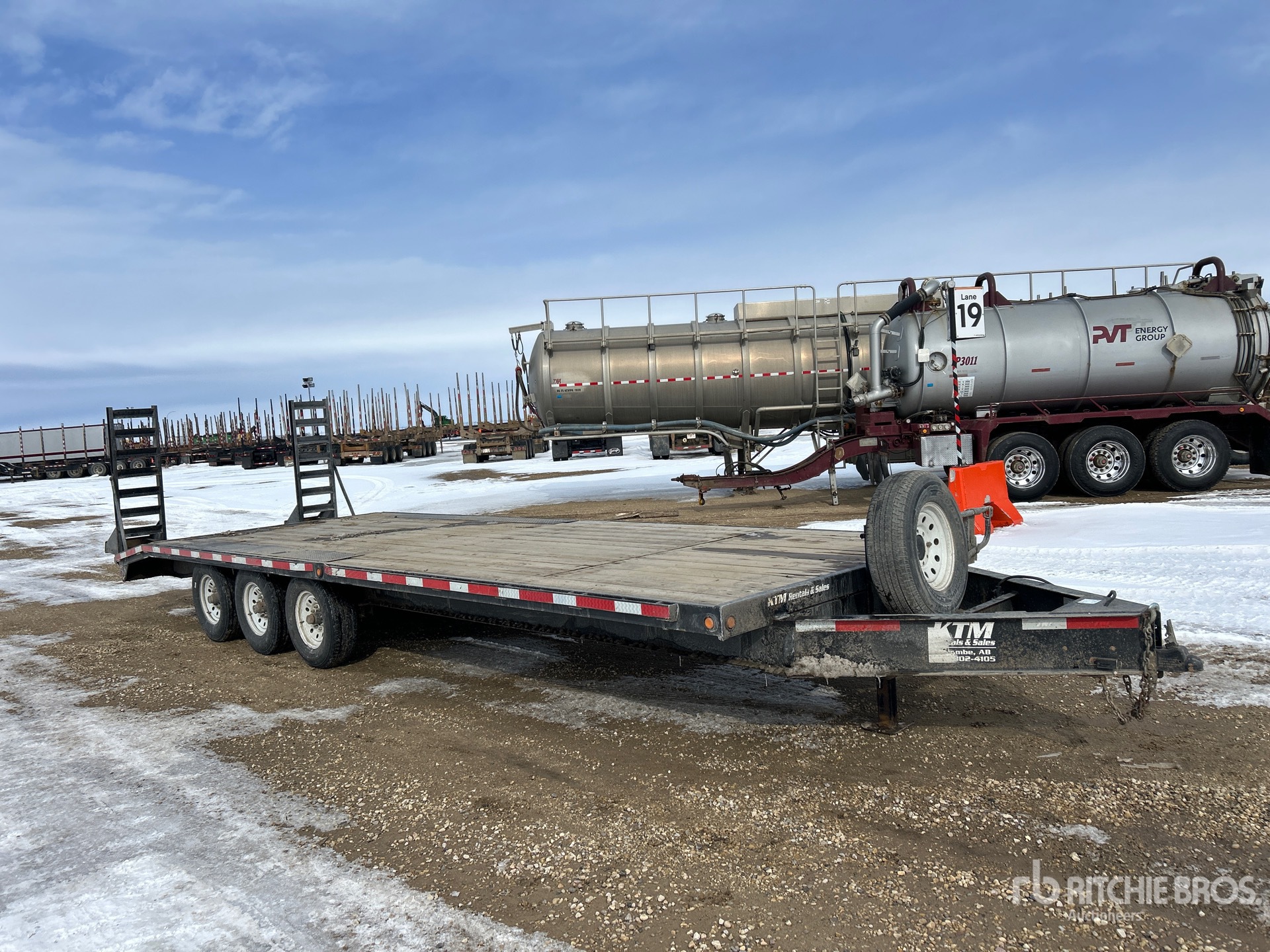Ball Hitch, Spring Suspension, Electric Brakes, 23 ft Main Deck, 3 ft Dovetail, 97 in Usable Deck Width, 101 in Overall Deck Width, Deck Over Tires, Spring Assisted Ramps, Wood Flooring, 235/80R16 Tires, 9525 kg GVWR