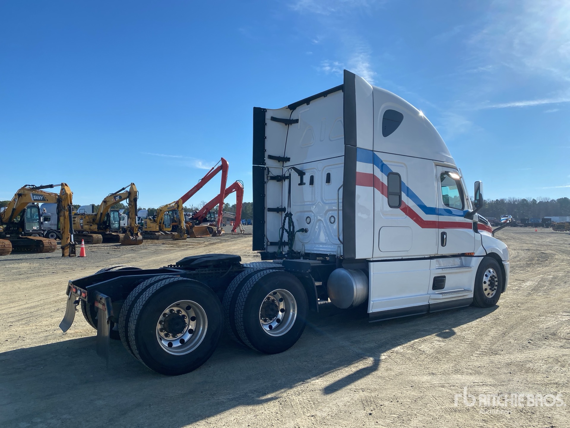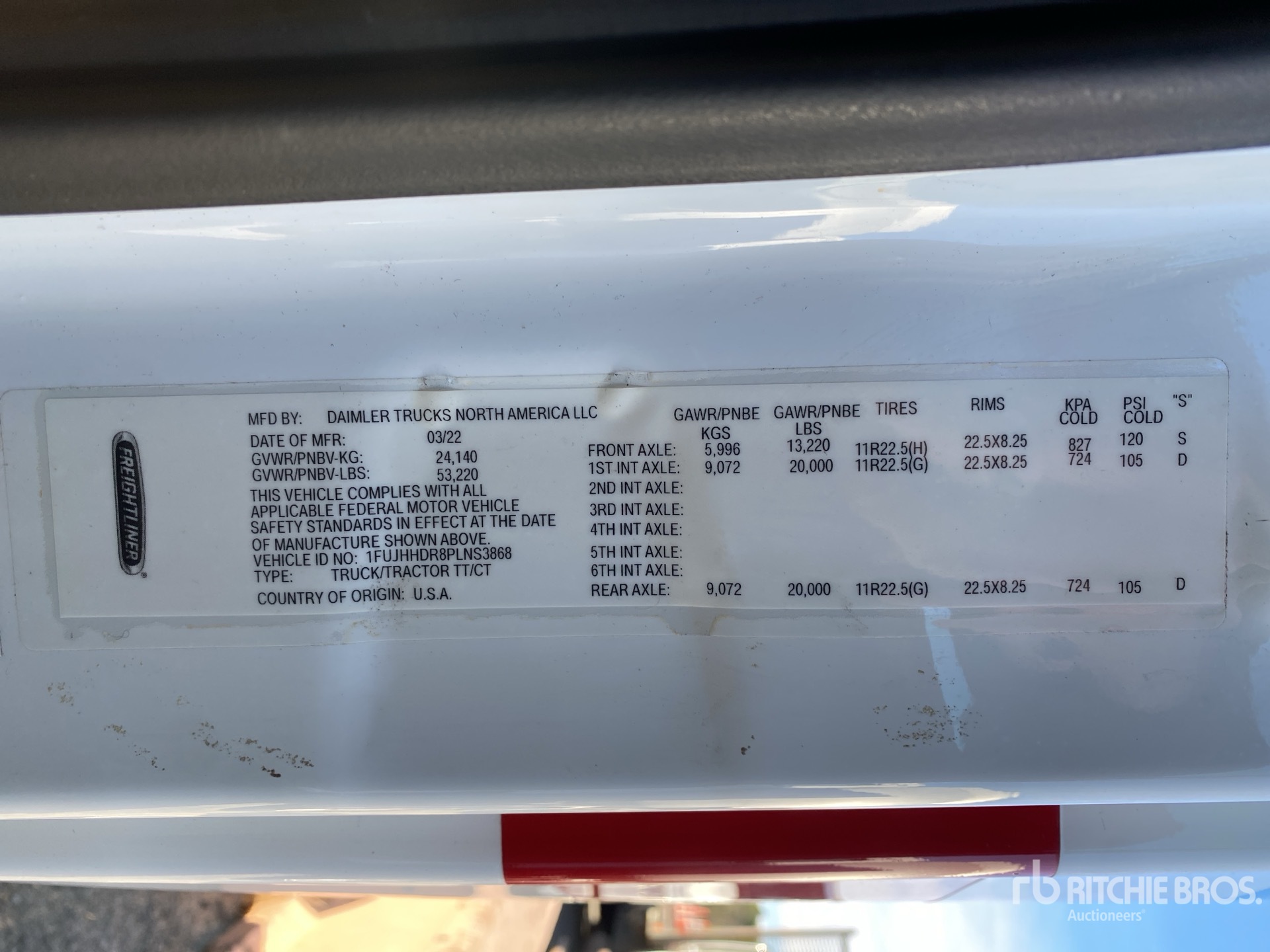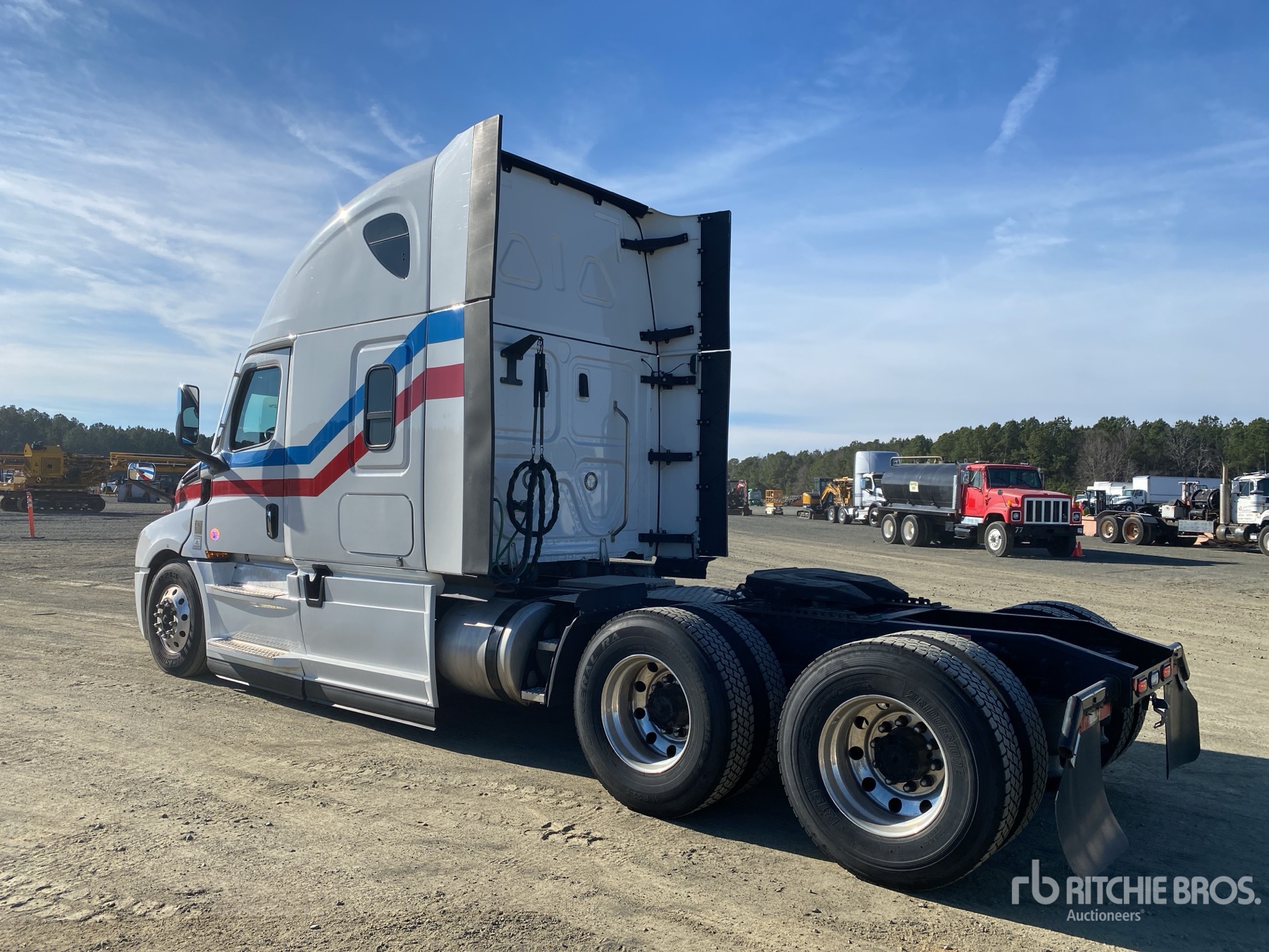 Detroit DD15 425 hp Engine, 2022 US EPA Label, 10913 Engine hrs, Detroit DT12-1750 OHE 12-Speed Automated Transmission, 13220 lb Front Axle, 40000 lb Rears, 53220 lb GVWR, Engine Brake, 70 in High Rise Sleeper Cab, Bunk Beds, 233 in Wheelbase, Air Suspension, Aluminum Wheels, 11R22.5, Air Sliding 5th Wheel, Dual Fuel Tanks