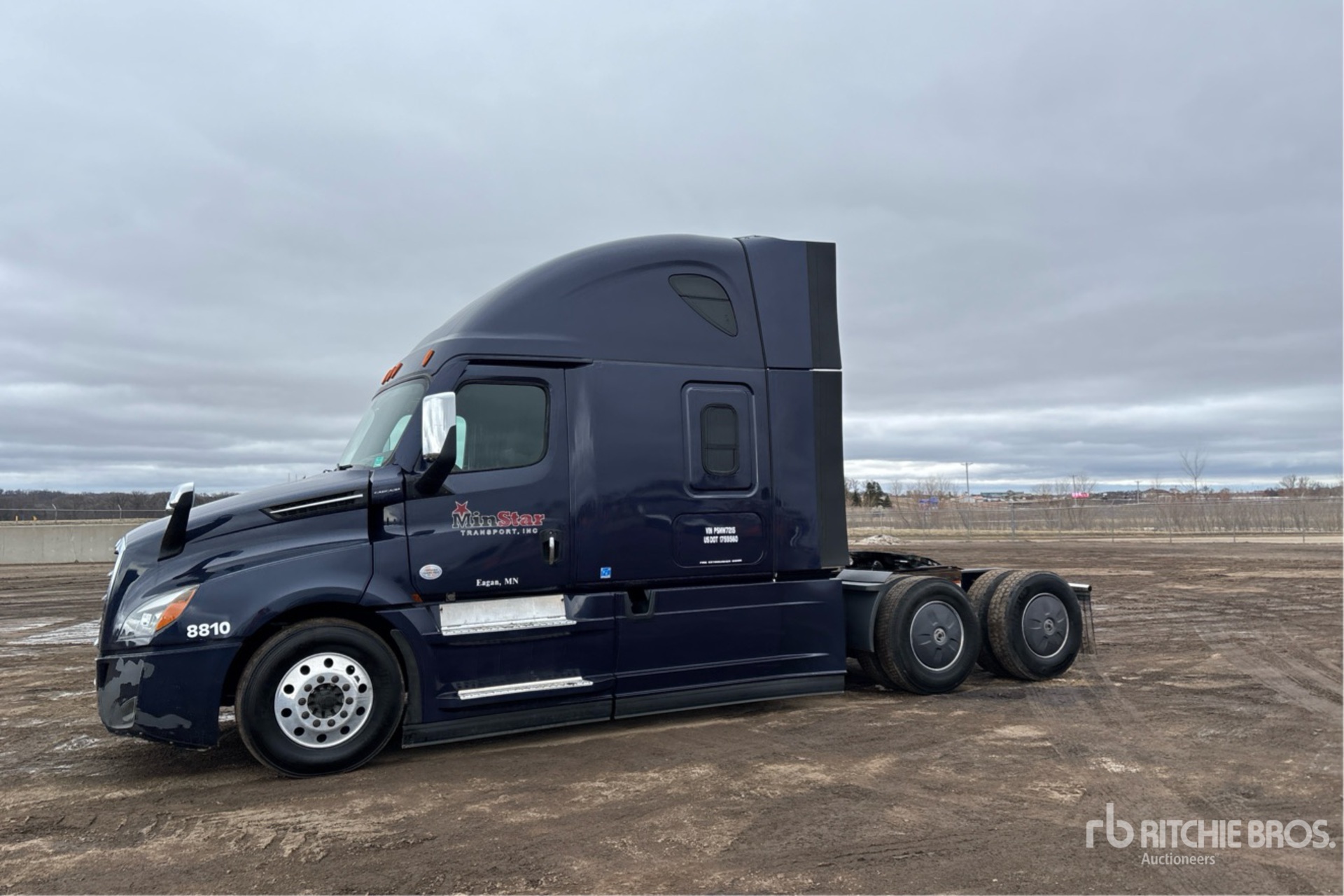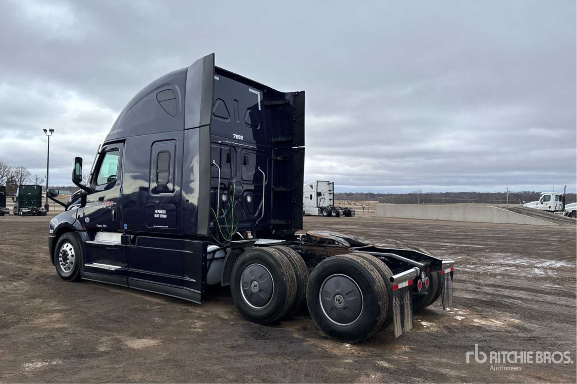 Located in Lane 7 Spot 38, Detroit DD15 475 hp Engine, 2022 US EPA Label, 8163 Engine hrs, Detroit DT12-1650-OHE 12-Speed Automated Transmission, 12500 lb Front Axle, 40000 lb Rears, 52500 lb GVWR, Engine Brake, 70 in High Rise Sleeper Cab, Bunk Beds, Bunk Heater, 223 in Wheelbase, Air Suspension, Aluminum Outer Wheels, 295/75R22.5, Air Sliding 5th Wheel, Dual Fuel Tanks