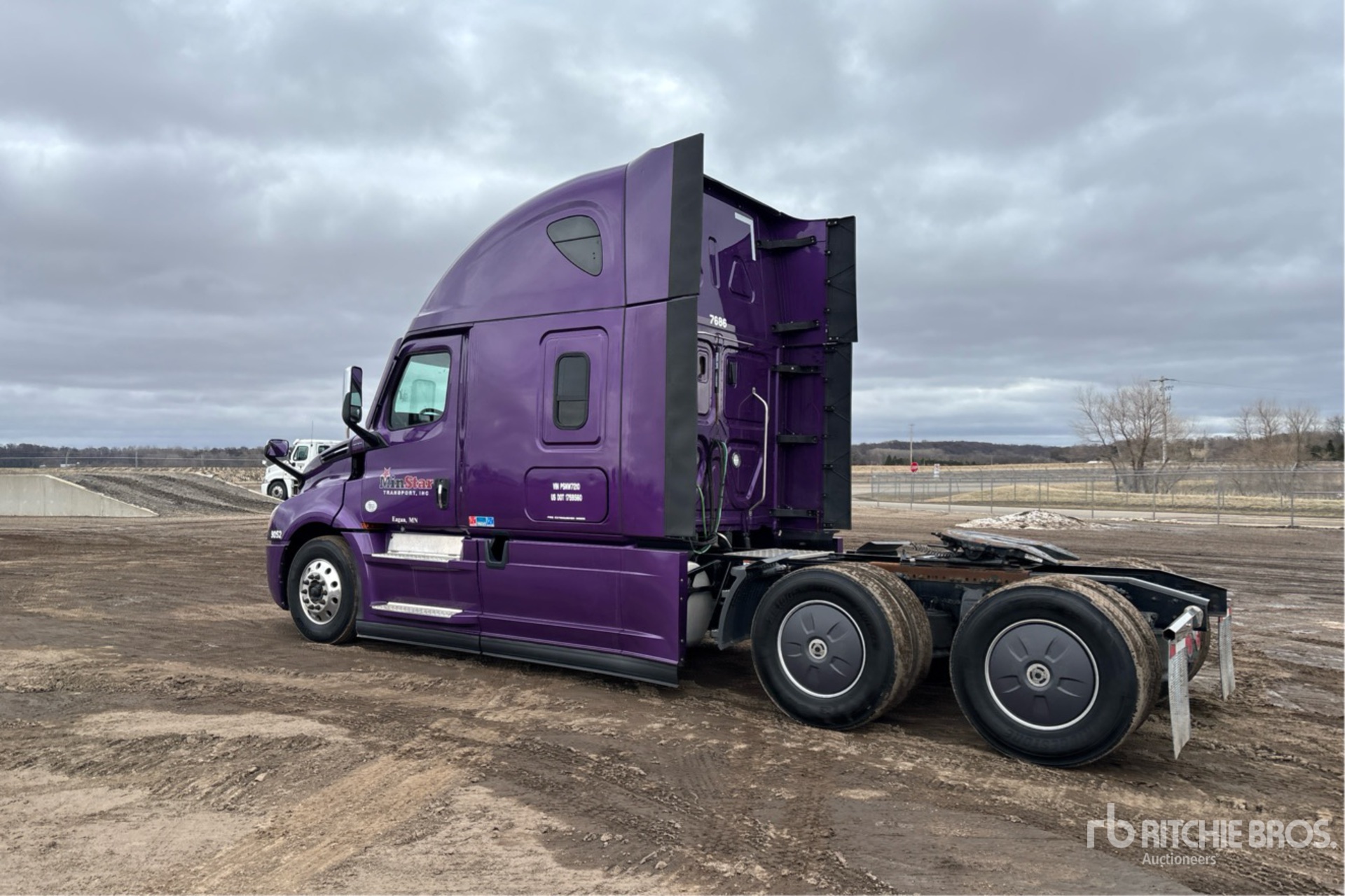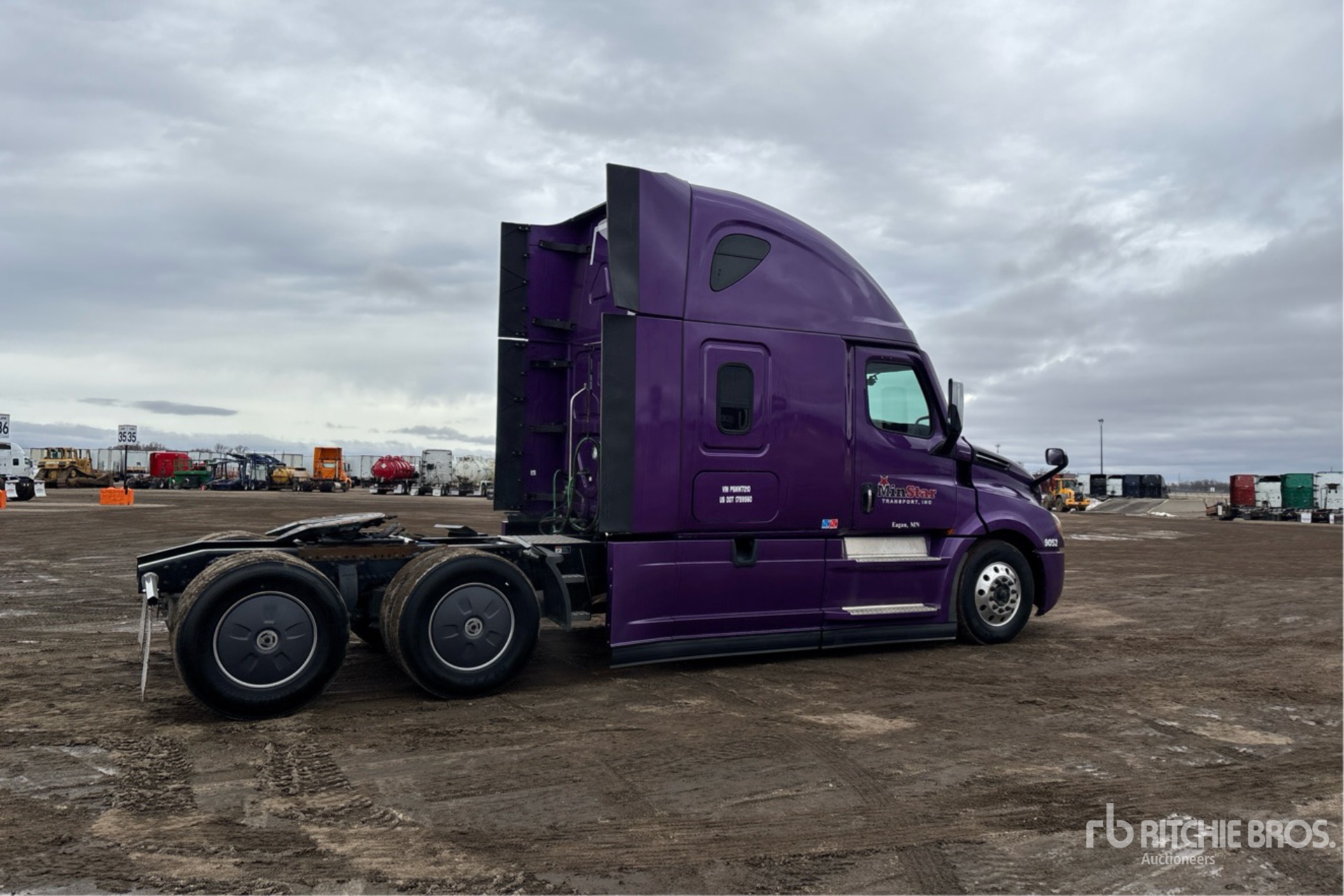 Located in Lane 7 Spot 41, Detroit DD15 475 hp Engine, 2022 US EPA Label, 13023 Engine hrs, Detroit DT12-1650-OHE 12-Speed Automated Transmission, 12500 lb Front Axle, 40000 lb Rears, 52500 lb GVWR, Engine Brake, 70 in High Rise Sleeper Cab, Bunk Beds, 223 in Wheelbase, Air Suspension, Aluminum Wheels, 275/80R22.5 Front Tires, 295/75R22.5 Rear Tires, Air Sliding 5th Wheel, Dual Fuel Tanks