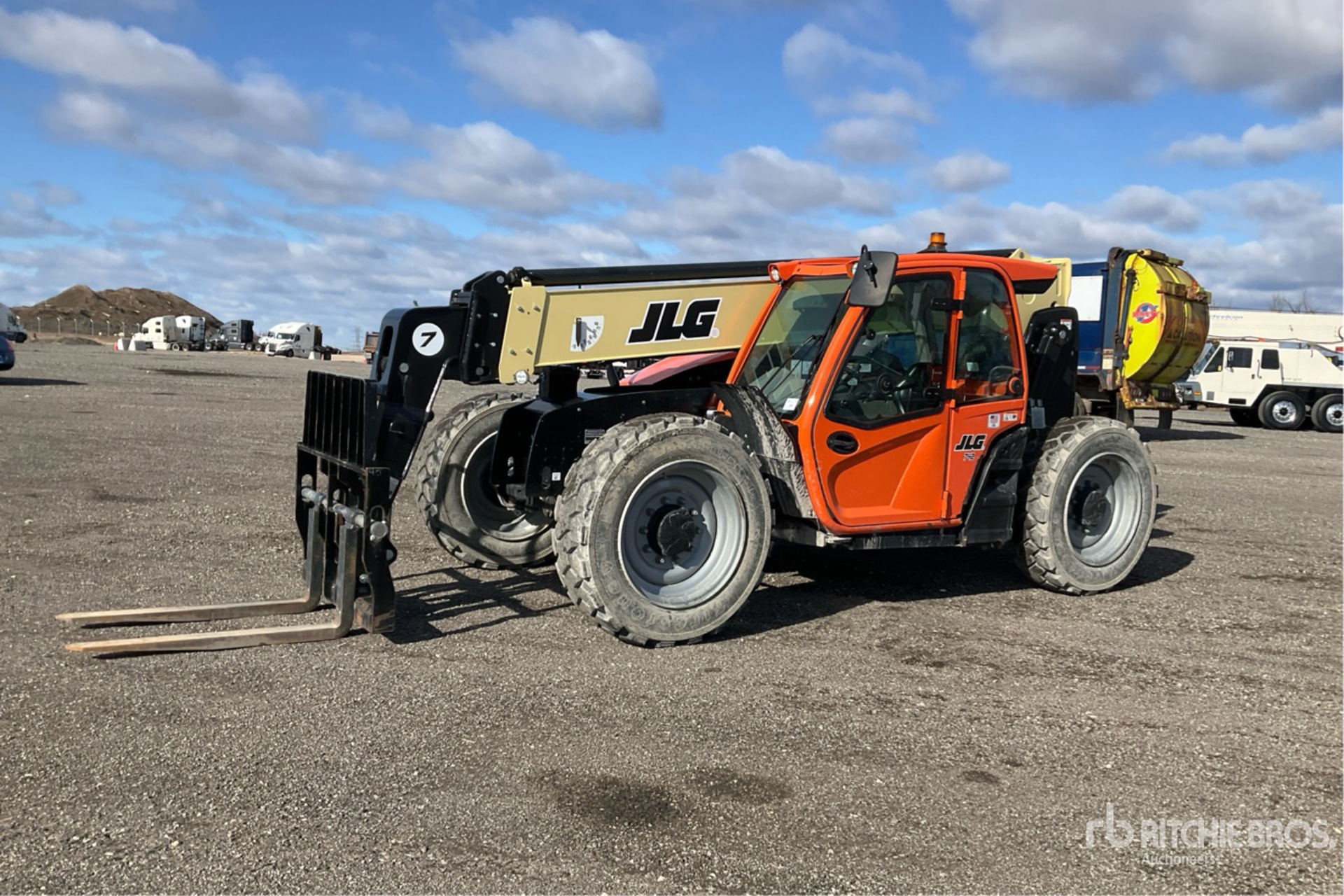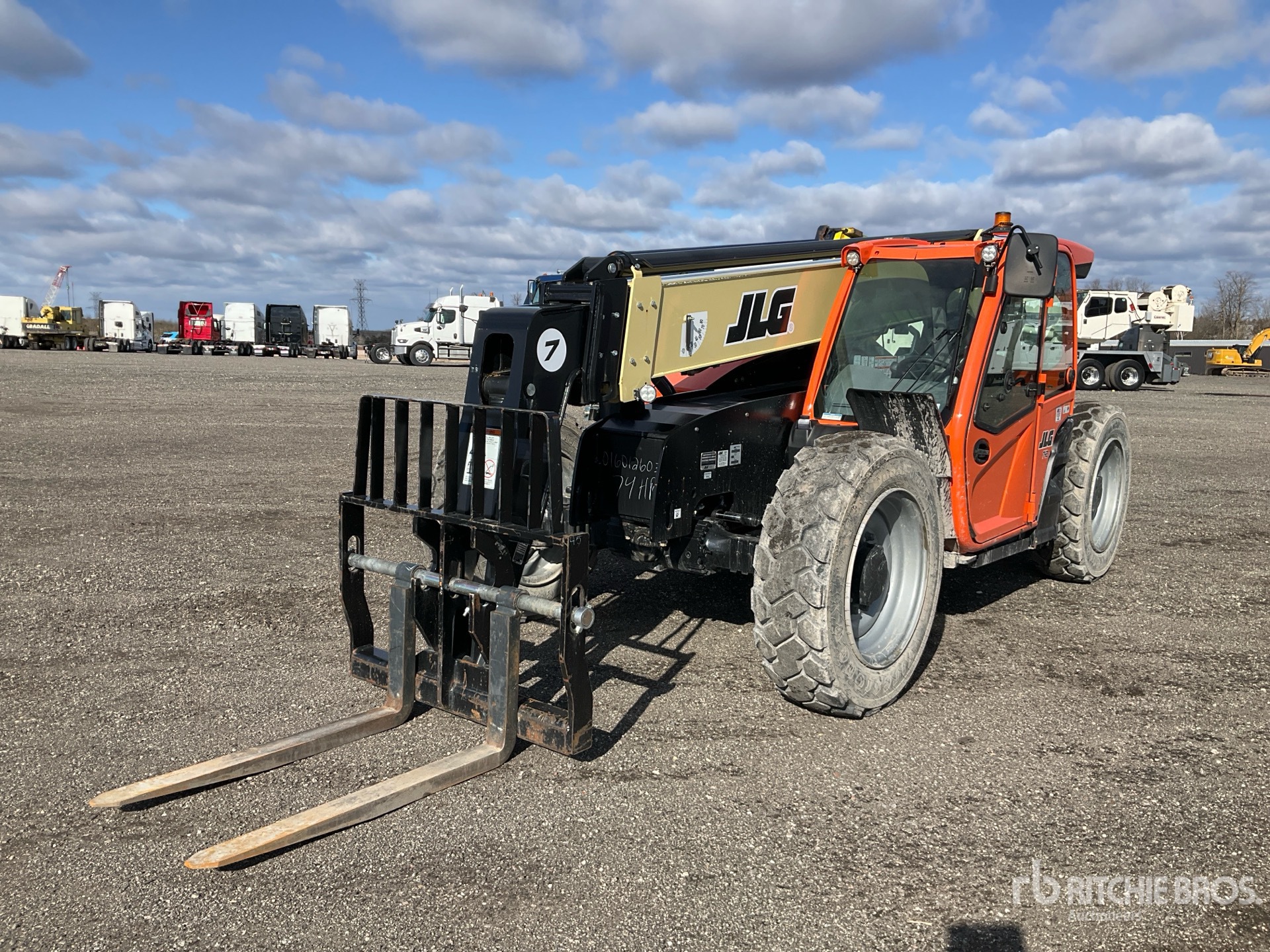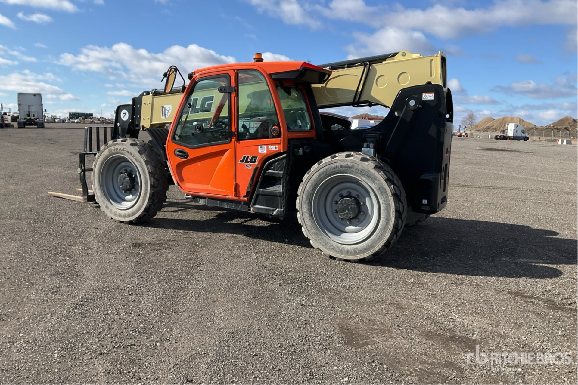 Located in Lane 22 Spot 38, Enclosed Cab, 42 ft Max Lift Height, 7000 lb Max Lift Capacity, 48 in Manual Coupler, Auxiliary Hydraulic Plumbing, 370/75-28 Tires