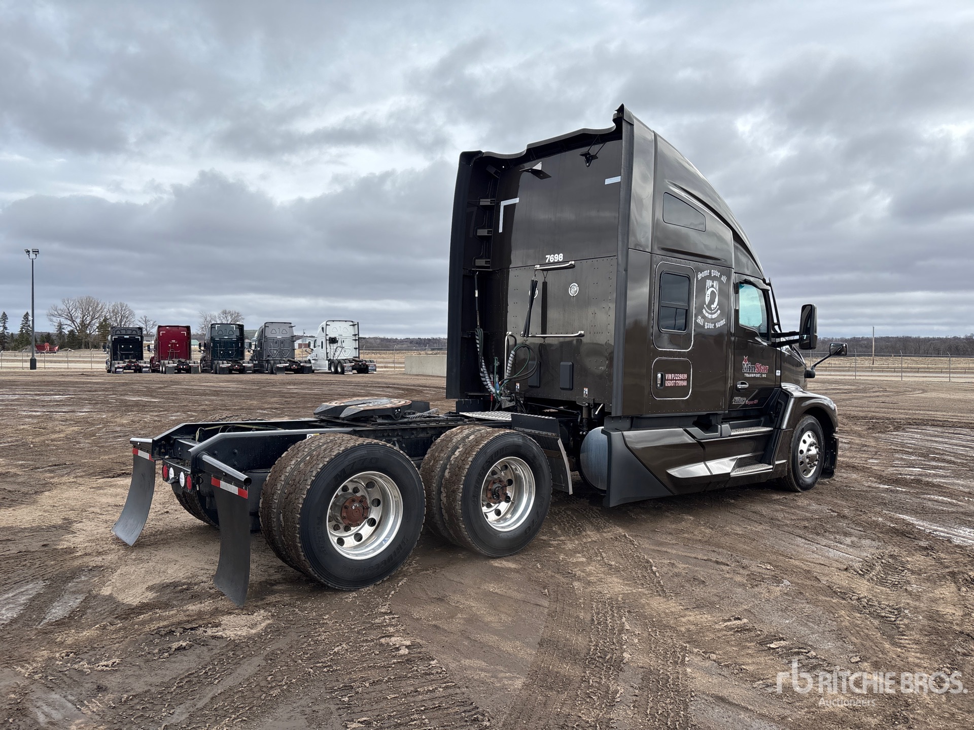 Located in Lane 7 Spot 39, Paccar MX-13 456 hp Engine, 2022 US EPA Label, 9737 Engine hrs, Eaton Fuller Manual Transmission, 12350 lb Front Axle, 40000 lb Rears, 52350 lb GVWR, Engine Brake, 62 in High Rise Sleeper Cab, Bunk Beds, 235 in Wheelbase, Air Suspension, Aluminum Outer Wheels, 275/70R22.5 Front Tires, 295/75R22.5 Rear Tires, Air Sliding 5th Wheel, Dual Fuel Tanks