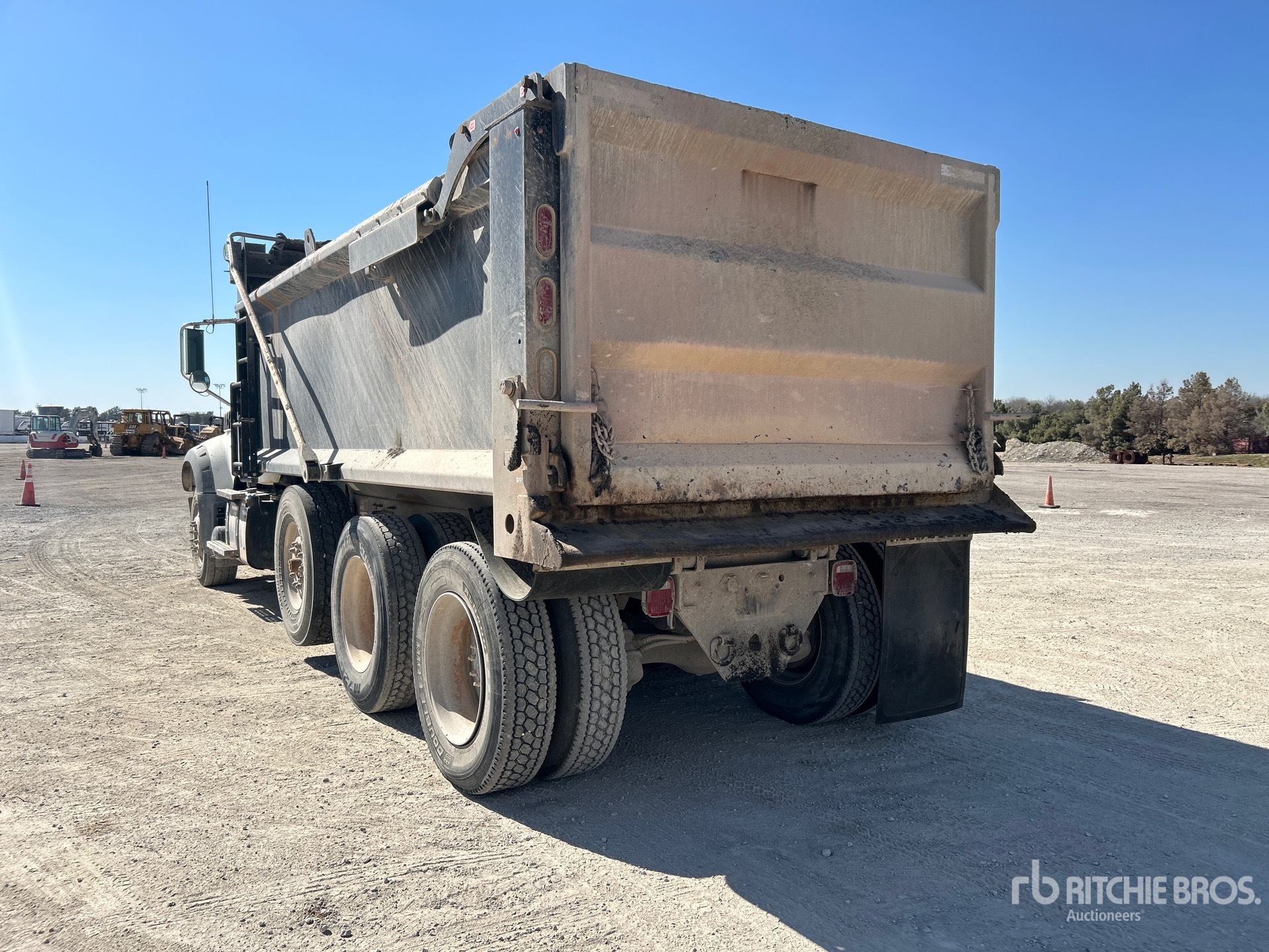 Located in Lane 44 Spot 10, Mack MP8 6 Cylinder 12.8 L Diesel 505 hp Engine, 2022 US EPA Label, Requires Diesel Exhaust Fluid, 5055.9 Engine hrs, Engine Brake, Mack mDrive 12-Speed Automated Transmission, Differential Lock, 20000 lb Front Axle, 66000 lb Rears, 86000 lb GVWR, Aluminum Wheels, 315/80R22.5 Front Tires, 11R24.5 Rear Tires, Steerable Air Lift Tag Axle, Dual Steering Boxes, Double Frame, Hendrickson Haulmaax Rubber over Walking Beam Suspension, 251 in Wheelbase, PTO, Load King 17 ft 6 in Long x 3 ft 10 in High Steel Body, Electric Roll Tarp, Air High-Lift Tailgate