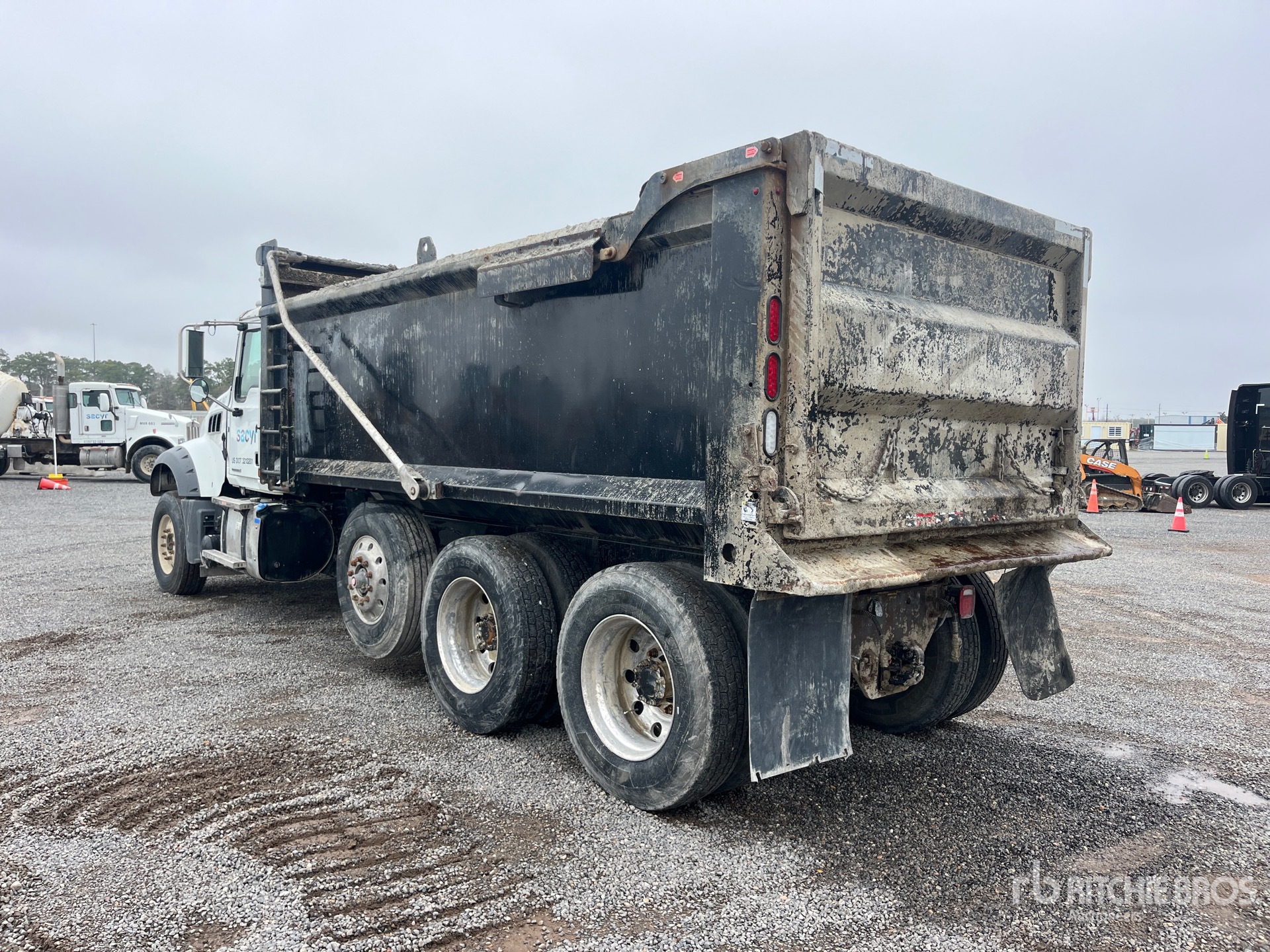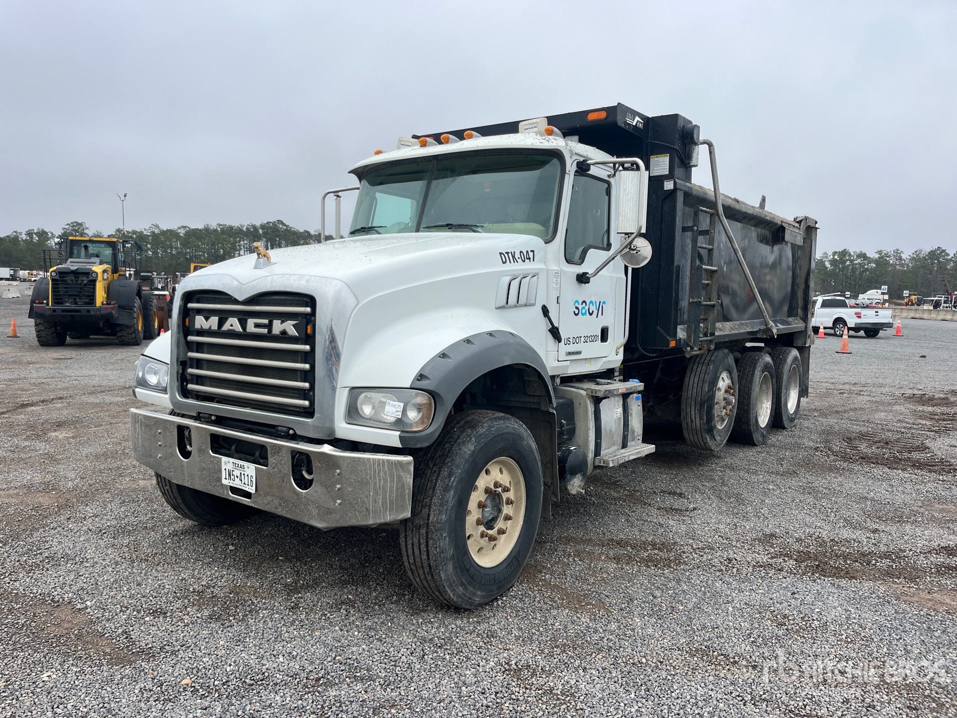 Mack MP8 12.8 L Diesel 505 hp Engine, 2022 US EPA Label, Requires Diesel Exhaust Fluid, 3635 Engine hrs, Mack Automated Transmission, Differential Lock, 20000 lb Front Axle, 46000 lb Rears, 86000 lb GVWR, Aluminum Wheels, 315/80R22.5 Front Tires, 11R22.5 Rear Tires, Steerable Air Lift Pusher Axle, Hendrickson Haulmaax Rubber over Walking Beam Suspension, 255 in Wheelbase, Load King 17 ft 5 in Long x 4 ft 5 in High Steel Body, Electric Roll Tarp, Ringfeder