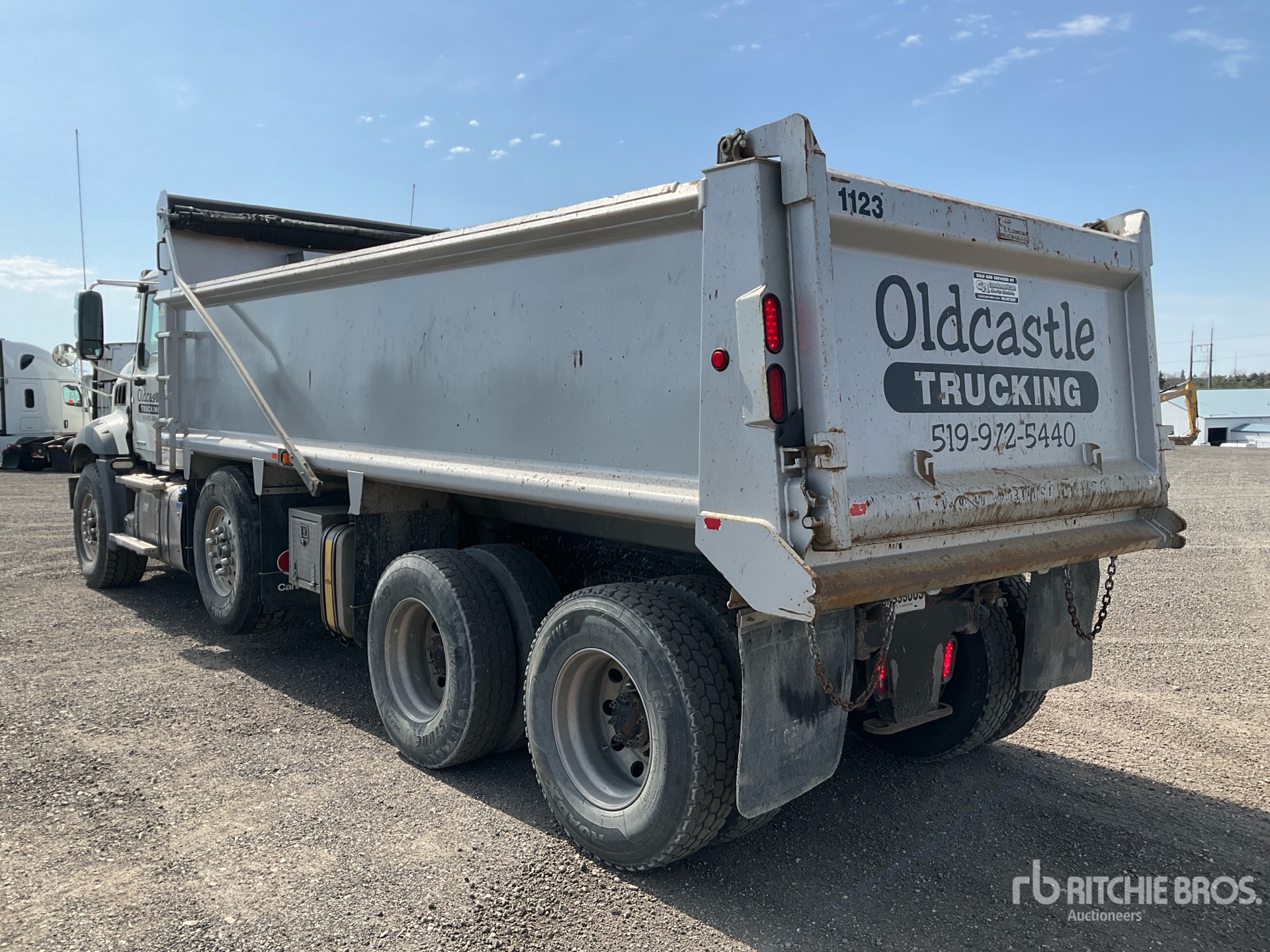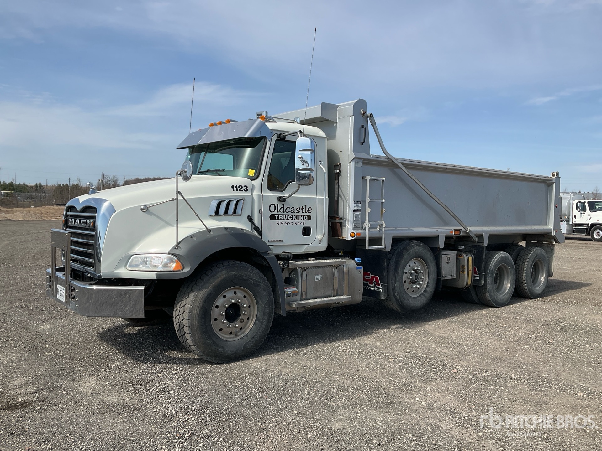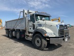 Mack MP8 6 Cylinder 12.8 L Diesel 455 hp Engine, 2022 US EPA Label, 4450 Engine hrs, Engine Brake, Mack Mack M drive Automatic Transmission, Differential Lock, 20000 lb Front Axle, 46000 lb Rears, 66000 lb GVWR, Air Ride Cab, Aluminum Wheels, 425/65R22.5 Front Tires, 11R22.5 Rear Tires, Dual Steering Boxes, Double Frame, Hendrickson Haulmaax Walking Beam Suspension, 256 in Wheelbase, PTO, Lanau 20 ft 6 in Long x 3 ft 10 in High Steel Body, Heated Box, Air Powered Roll Tarp