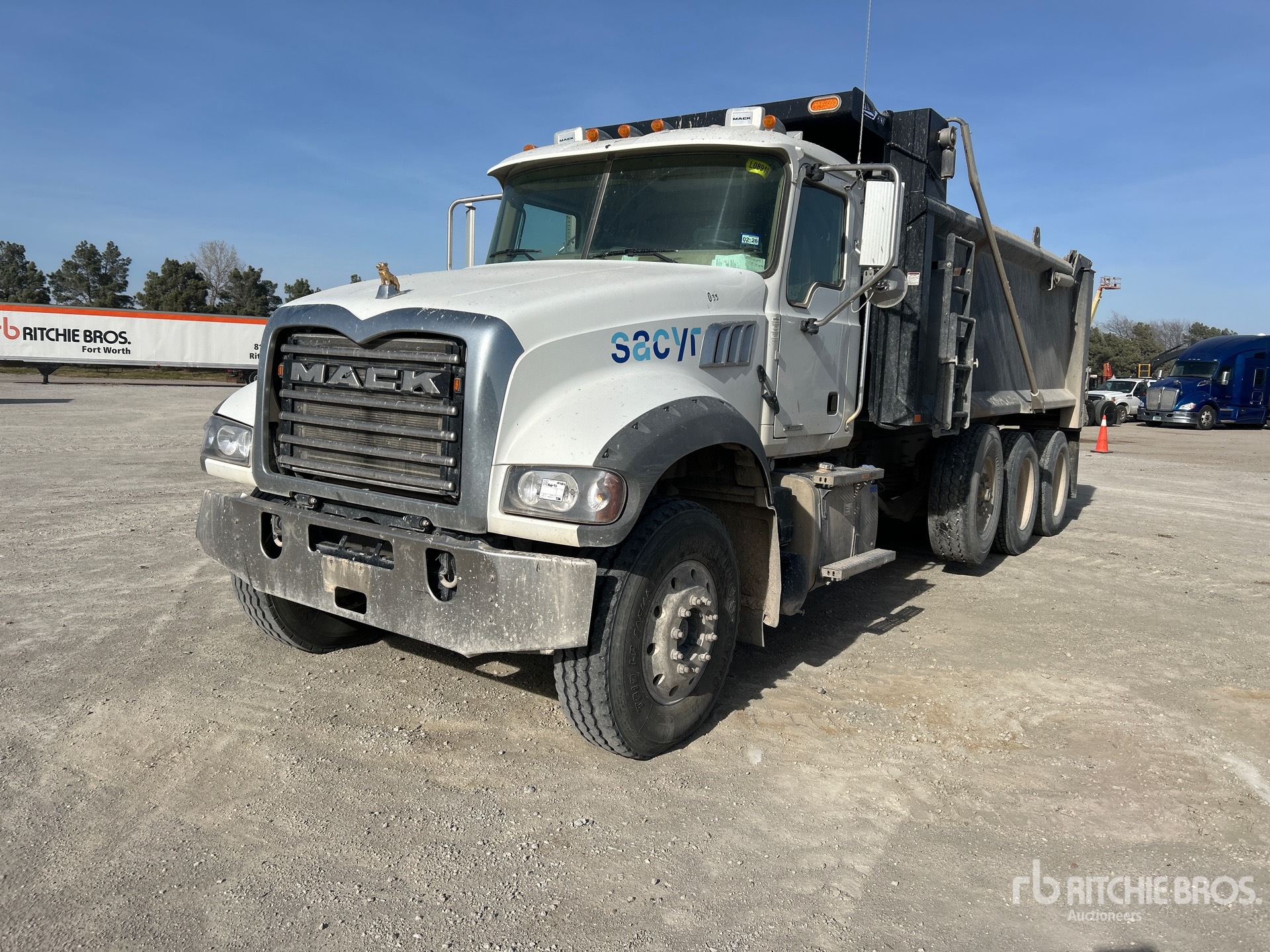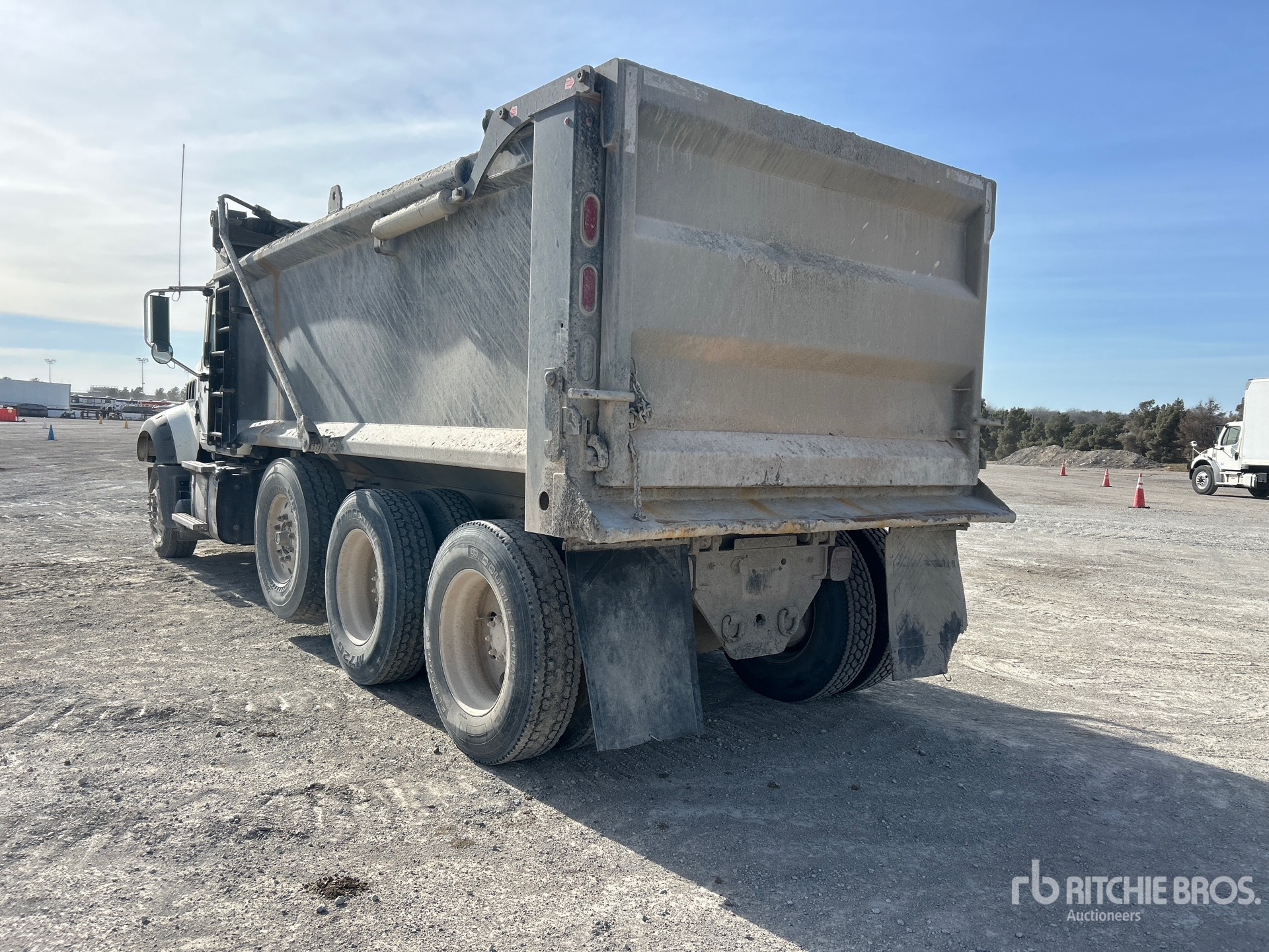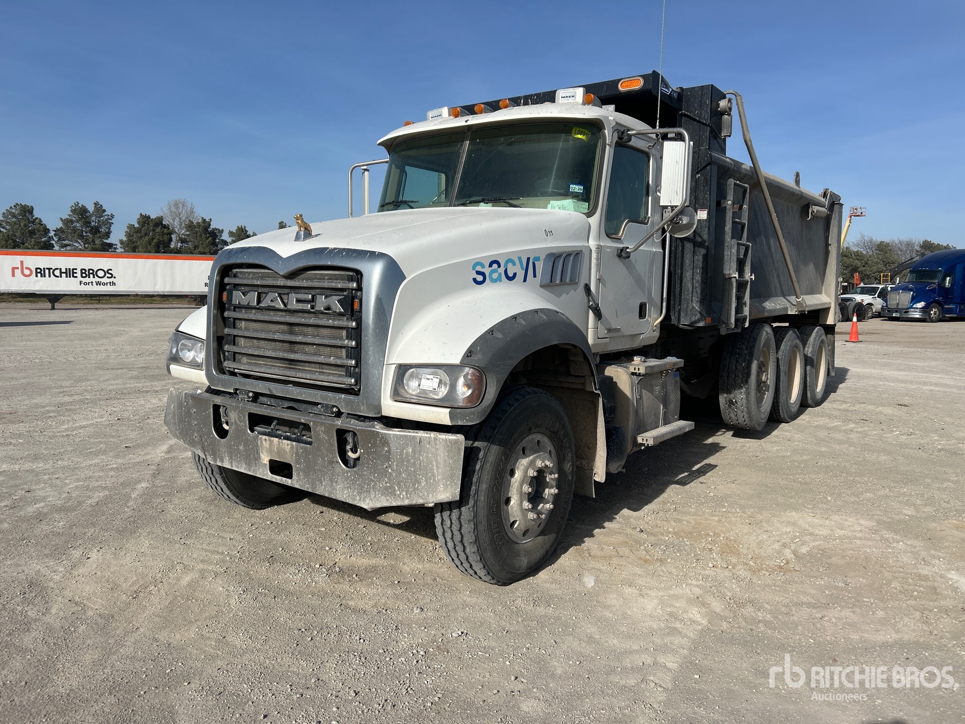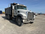 Located in Lane 44 Spot 15, Mack MP8 12.8 L Diesel 505 hp Engine, 2022 US EPA Label, Requires Diesel Exhaust Fluid, 5597.6 Engine hrs, Mack mDrive 12-Speed Automated Transmission, Differential Lock, 20000 lb Front Axle, 66000 lb Rears, 86000 lb GVWR, Aluminum Wheels, 315/80R22.5 Front Tires, 11R24.5 Rear Tires, Steerable Air Lift Pusher Axle, Double Frame, Hendrickson Haulmaax Rubber over Walking Beam Suspension, 249 in Wheelbase, PTO, Load king 17 ft 6 in Long x 3 ft 11 in High Steel Body, 20 cyd, Capacity, Air High-Lift Tailgate