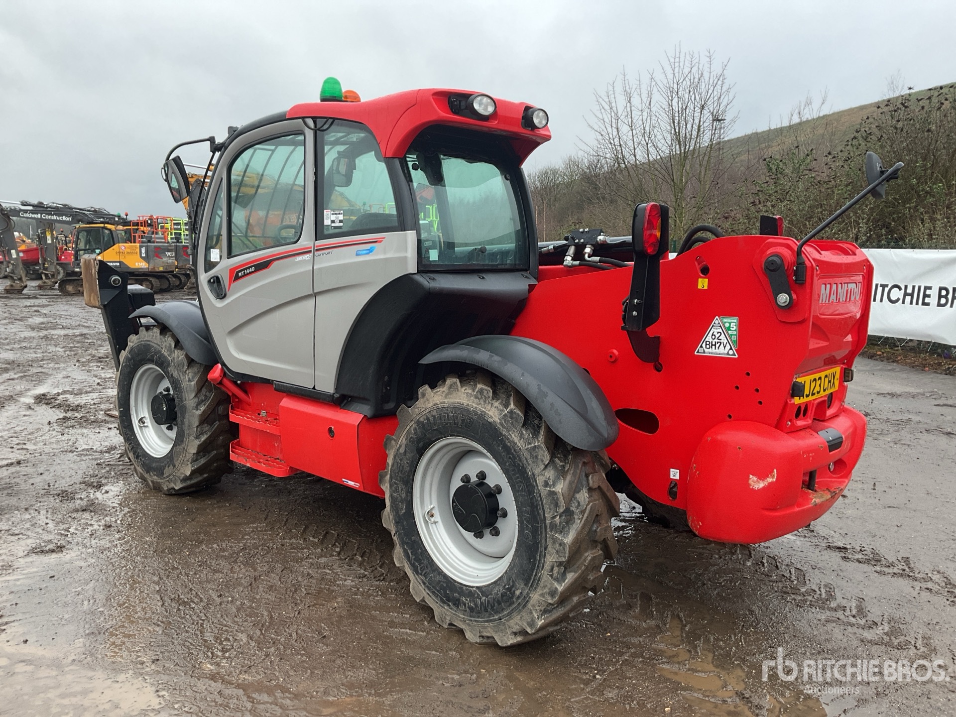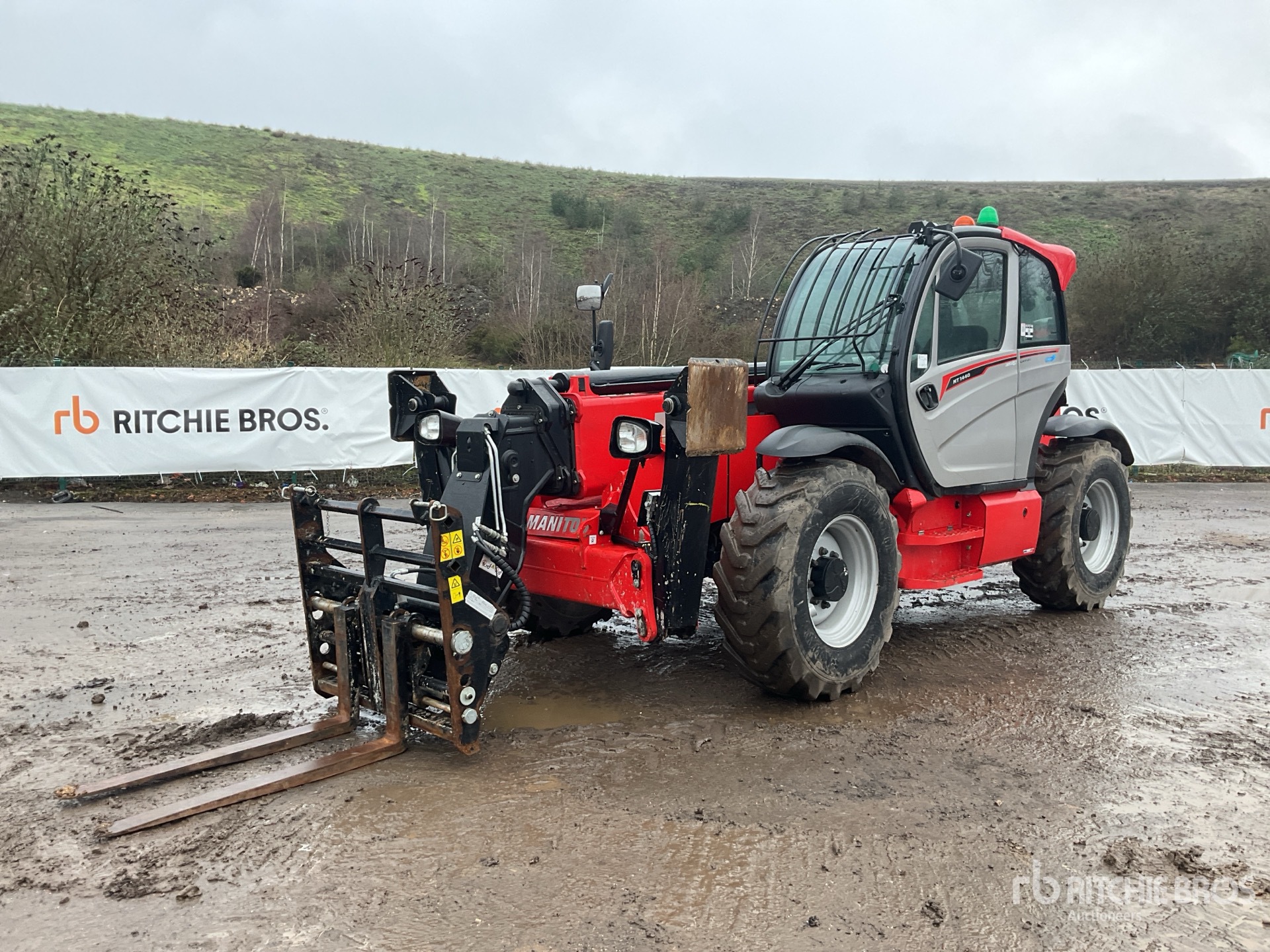 Enclosed Cab, Air Conditioner, Load Moment Indicator, 14 m Max Lift Height, 4000 kg Max Lift Capacity, 1200 mm Forks, Fork Positioner, Manual Coupler, Outriggers, Frame Leveling, Auxiliary Hydraulic Plumbing, 400/80-24 Tires