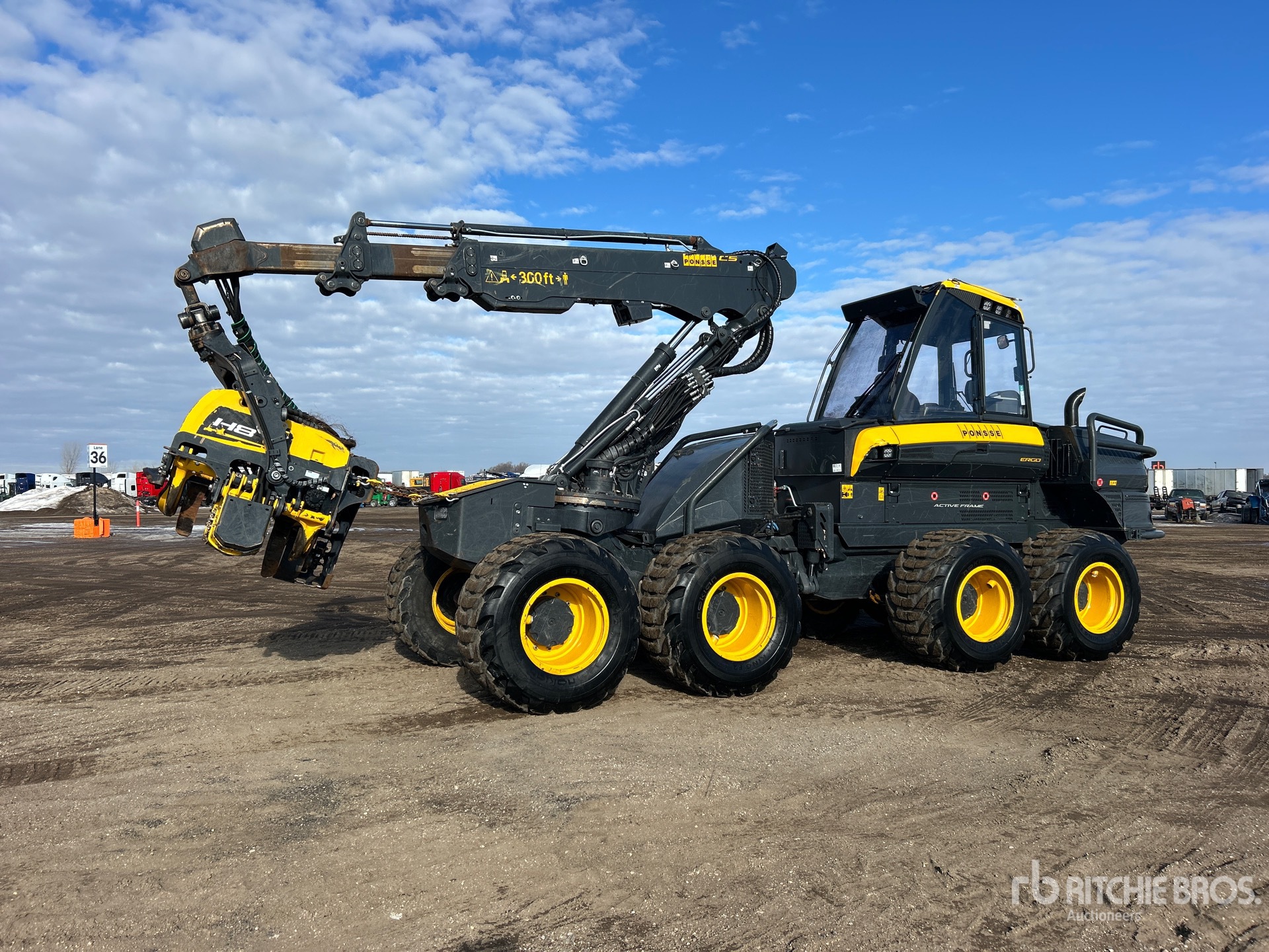 Variable Angle Swing Boom, 14 ft Stick, Ponsse H8 26 in Harvesting Head, Steel Feed Rolls, Butt Saw