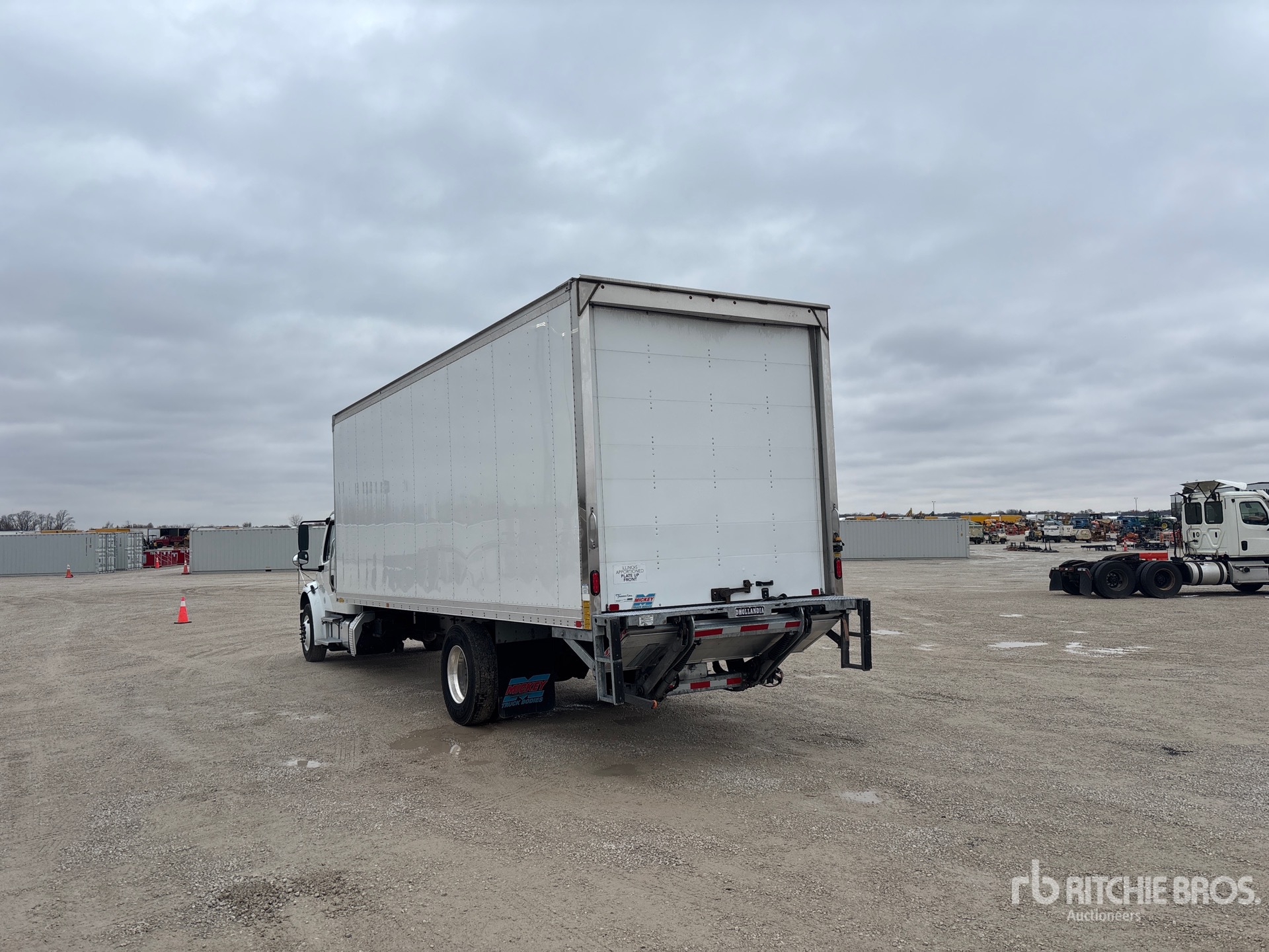 Located in Lane 10 Spot 1, Detroit DD8 6 Cylinder 7.7 L Diesel 260 hp Engine, 2023 US EPA Label, 7476.9 Engine hrs, Engine Brake, Allison 2500 Automatic Transmission, 10000 lb Front Axle, 19000 lb Rears, Detroit DA-RS-19.0-2 Drive Axles, 5.13:1 Axle Ratio, 26000 lb GVWR, 34 in Sleeper Cab, Aluminum Wheels, 275/80R22.5 Front Tires, 11R22.5 Rear Tires, Air Ride Suspension, 289 in Wheelbase, Mickey 26 ft x 102 in Wide x 98 in High Body, Liftgate