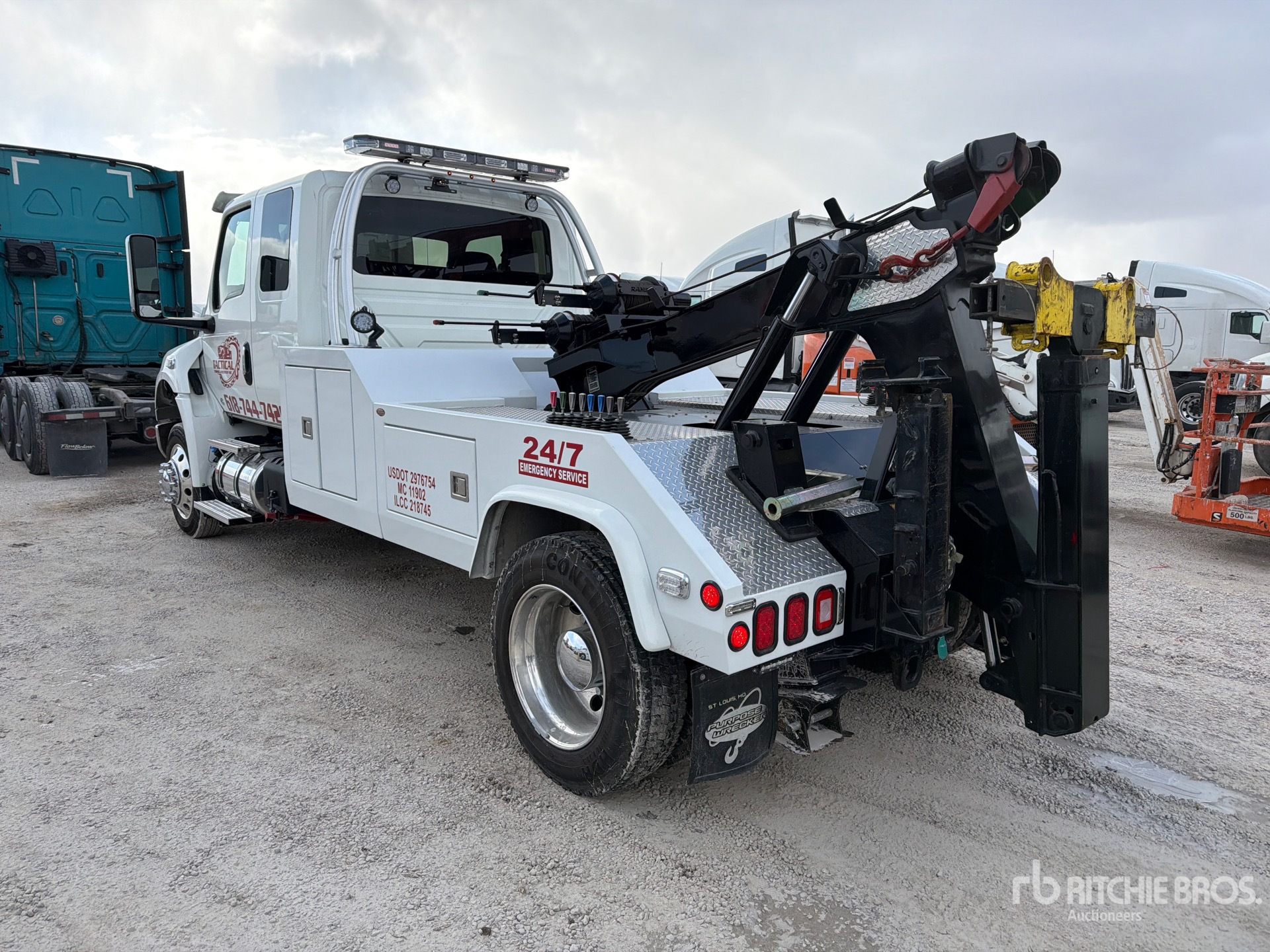Cummins 6 Cylinder Diesel Engine, 434 Engine hrs, Exhaust Brake, Allison Automatic Transmission, 8618 lb Front Axle, 19000 lb Rears, 26000 lb GVWR, Aluminum Wheels, 255/70R22.5 Front Tires, 255/70R22.5 Rear Tires, Air Ride Suspension, 201 in Wheelbase, PTO, Purpose Steel Wrecker Body