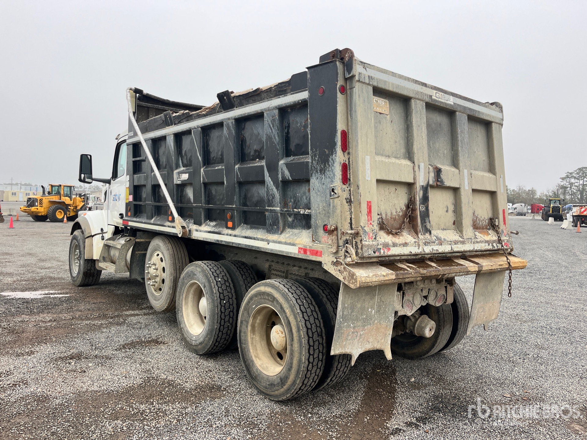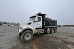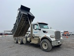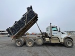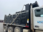 Paccar MX-13 12.9 L Diesel 456 hp Engine, 2023 US EPA Label, Requires Diesel Exhaust Fluid, 2156 Engine hrs, Allison 4500 Automated Transmission, 20000 lb Front Axle, 45400 lb Rears, 77750 lb GVWR, Aluminum Wheels, 425/65R22.5 Front Tires, 295/75R22.5 Rear Tires, Steerable Air Lift Pusher Axle, Rubber Suspension, 255 in Wheelbase, GAR-P 16 ft Long x 5 ft High Steel Body, Electric Roll Tarp
