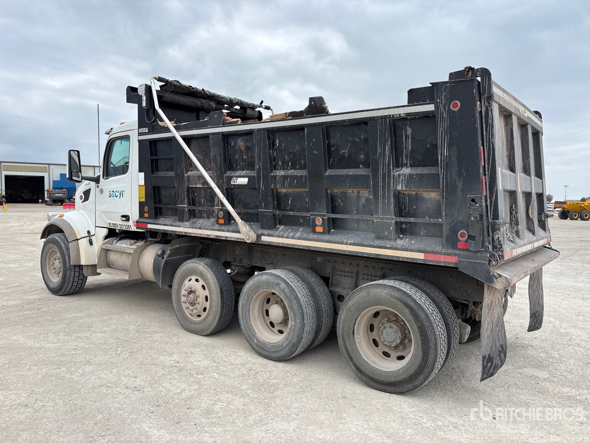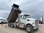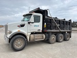 Paccar MX-13 6 Cylinder 12.9 L Diesel 456 hp Engine, 2023 US EPA Label, Requires Diesel Exhaust Fluid, 3782 Engine hrs, Engine Brake, Allison Automatic Transmission, Double Differential Locks, 20000 lb Front Axle, 57750 lb Rears, 77750 lb GVWR, Air Ride Cab, Aluminum Wheels, 425/65R22.5 Front Tires, 295/75R22.5 Rear Tires, Dual Steering Boxes, Double Frame, Hendrickson Haulmaax Rubber over Walking Beam Suspension, 220 in Wheelbase, PTO, Garp 16 ft Long x 4 ft High Steel Body, Bed Vibrator, Electric Roll Tarp