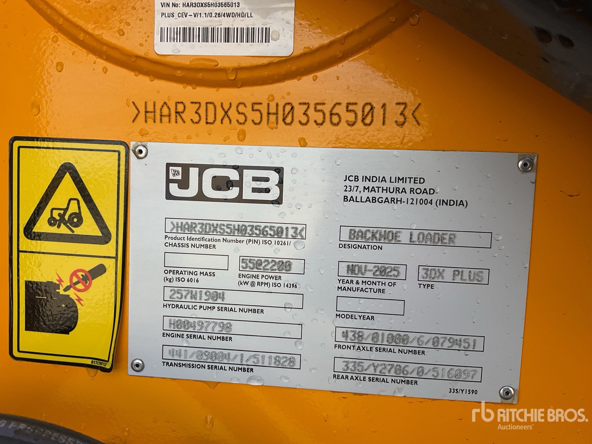 Los equipos no se prueban bajo carga ni se manejan en todas las marchas disponibles. No efectuamos ninguna declaración ni otorgamos garantía alguna en cuanto a que el equipo está operando de acuerdo con las especificaciones del fabricante. No se ha realizado ninguna inspección con respecto a ningún aspecto funcional que no sean las que expresamente se incluyen aquí. Se han proporcionado fotografías seleccionadas de componentes individuales del chasis, y pueden no ser indicadoras de la condición de todo el chasis como una unidad.
