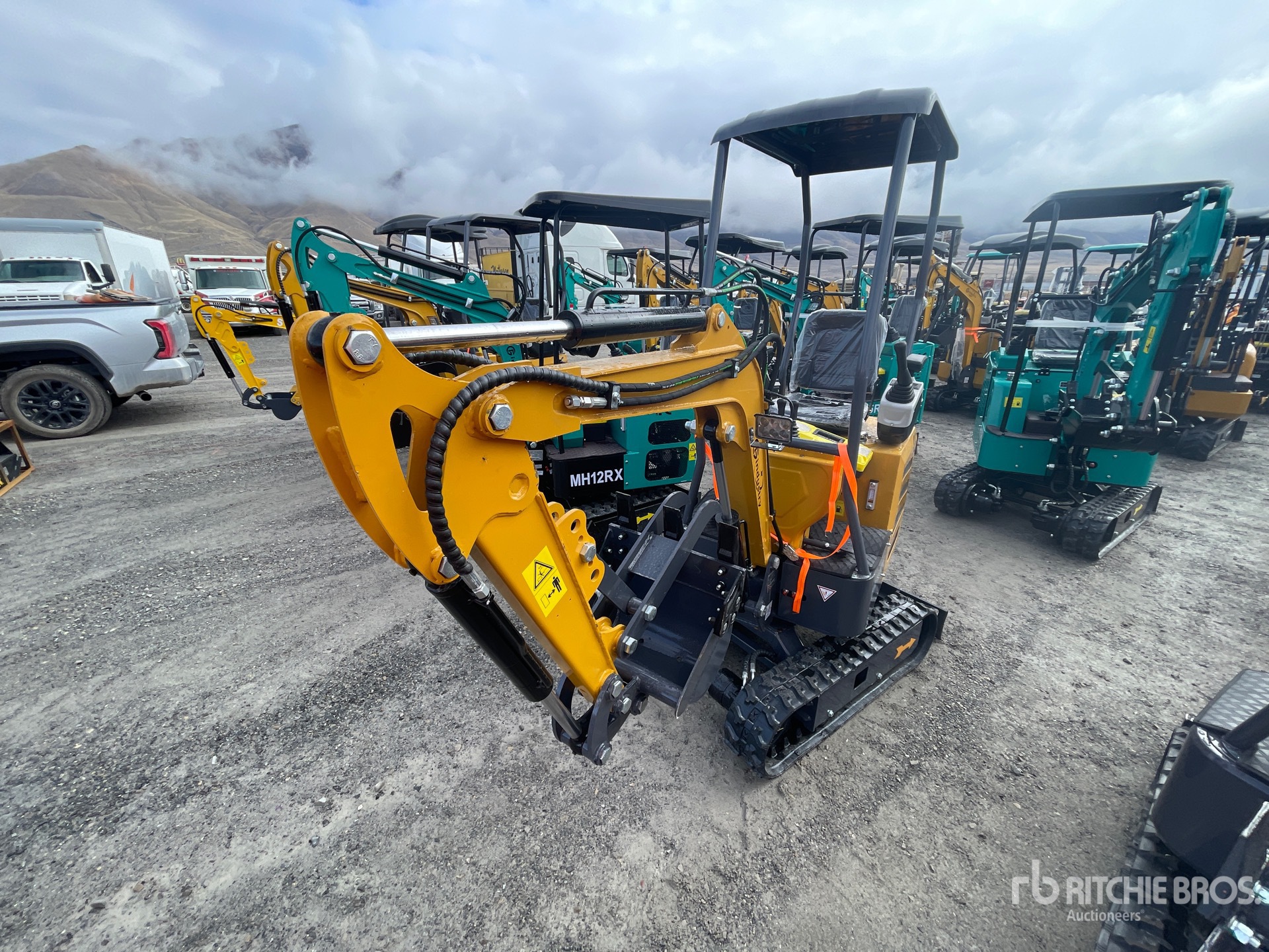 2025 US EPA Label, 2 ft 4 in Stick, Auxiliary Hydraulic Plumbing, Backfill Blade, 7 in Rubber Tracks, 16 in Digging Bucket, Manual Thumb