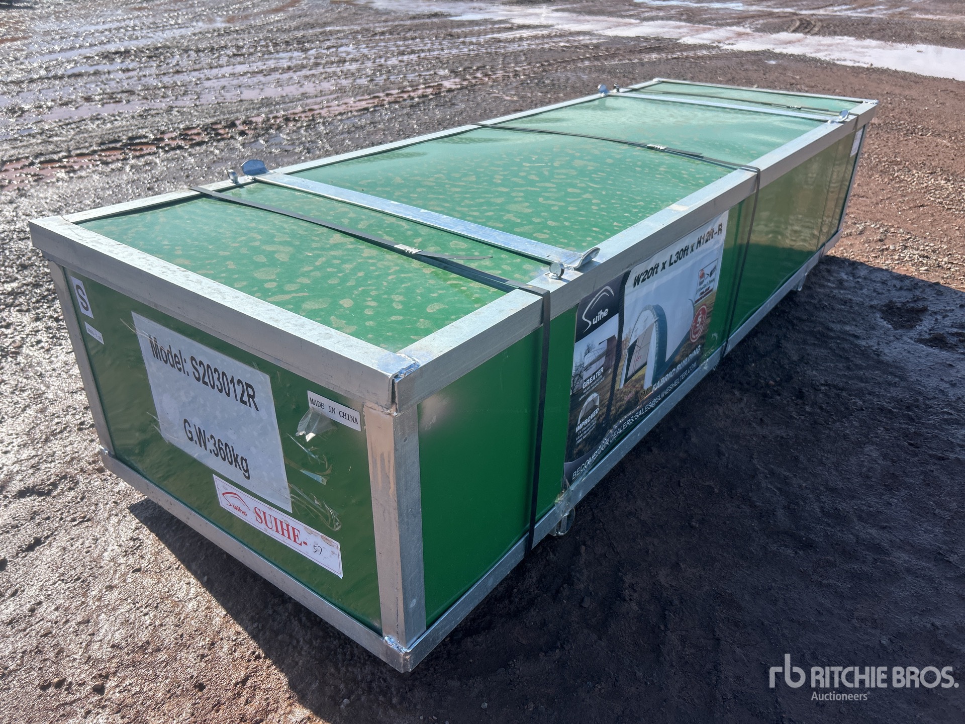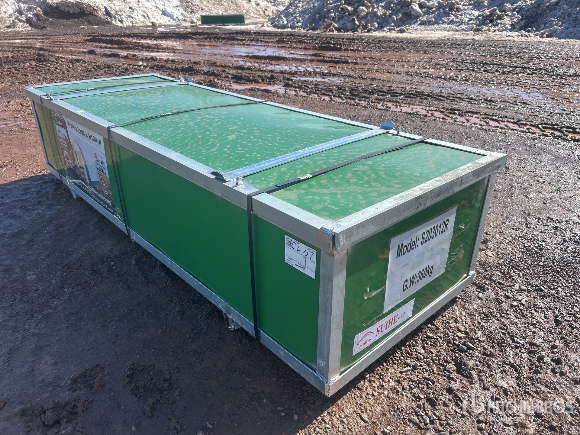 Las mediciones se expresan de modo estimativo solamente. Las dimensiones reales de la carga pueden variar según la altura del camión o remolque y la posición o configuración de la máquina cargada. Es responsabilidad del comprador calcular las dimensiones de las cargas antes de abandonar nuestro sitio de subastas a fin de garantizar que aquellas se pueden transportar de modo seguro. El comprador deberá verificar todas las dimensiones. No confíe en estas dimensiones para fines de transporte.
