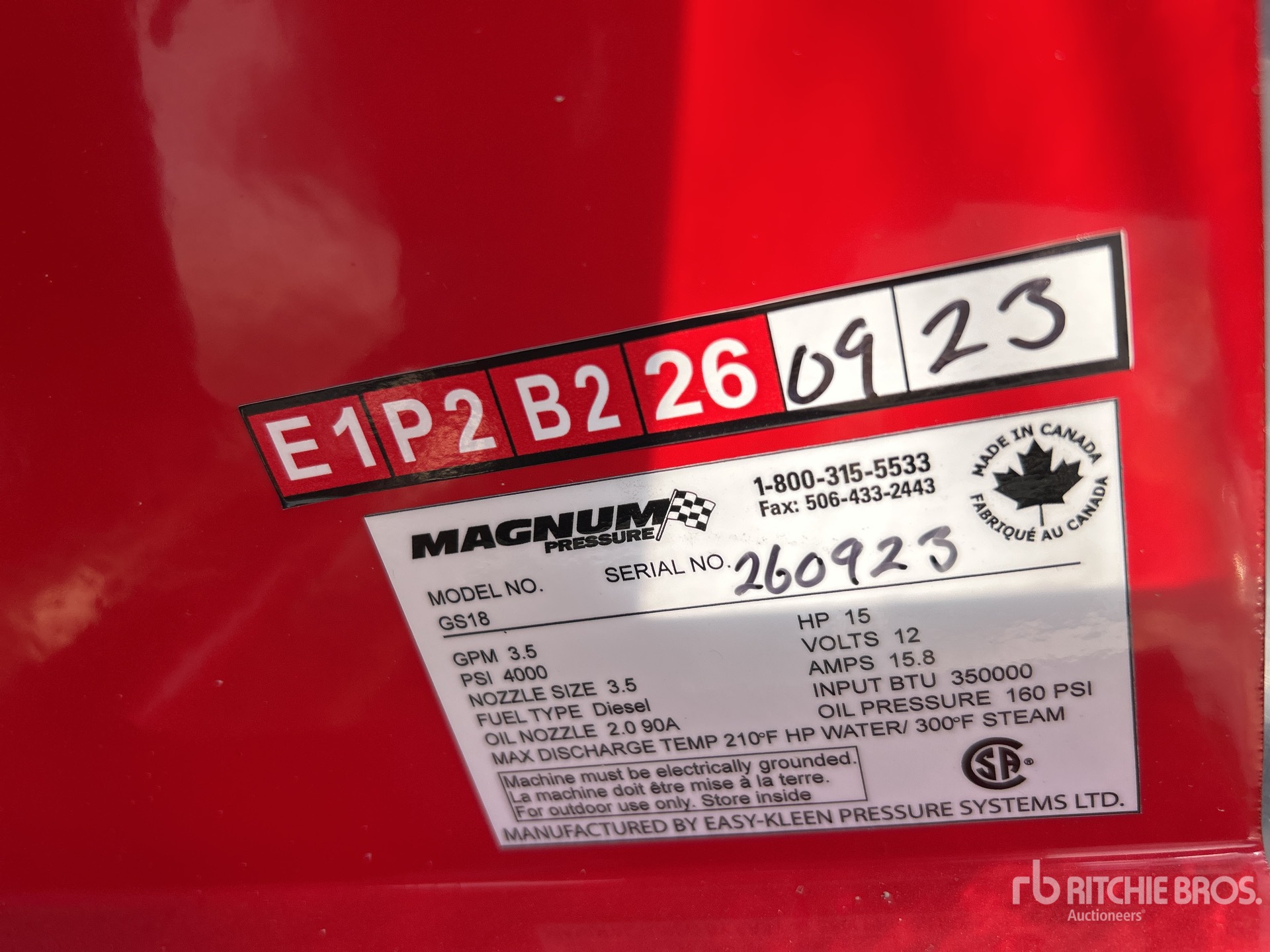 4000 psi Rating, Water Heater, Hose, Spray Wand, 1 Cylinder 15 hp 420 cc Gasoline Engine
