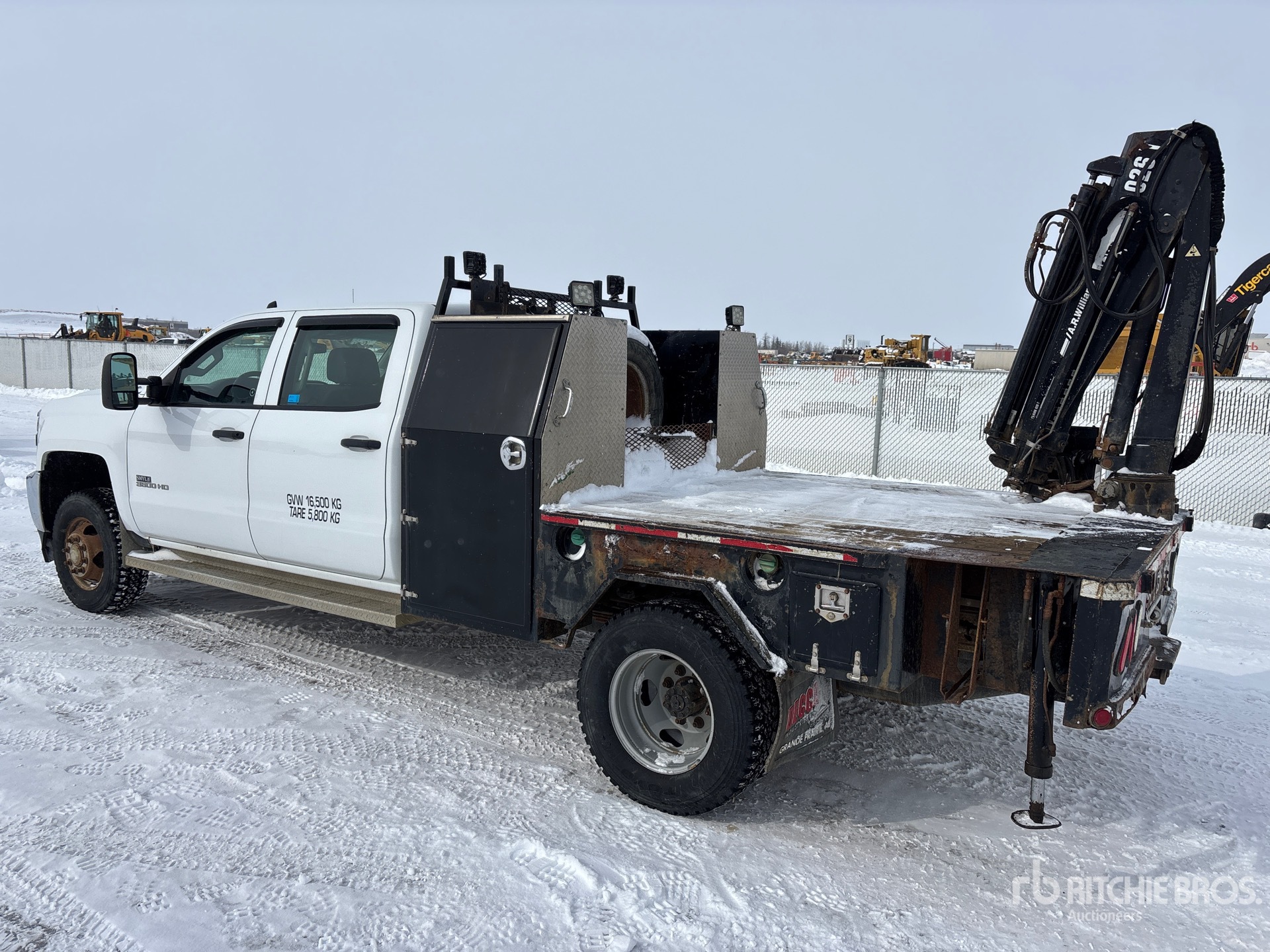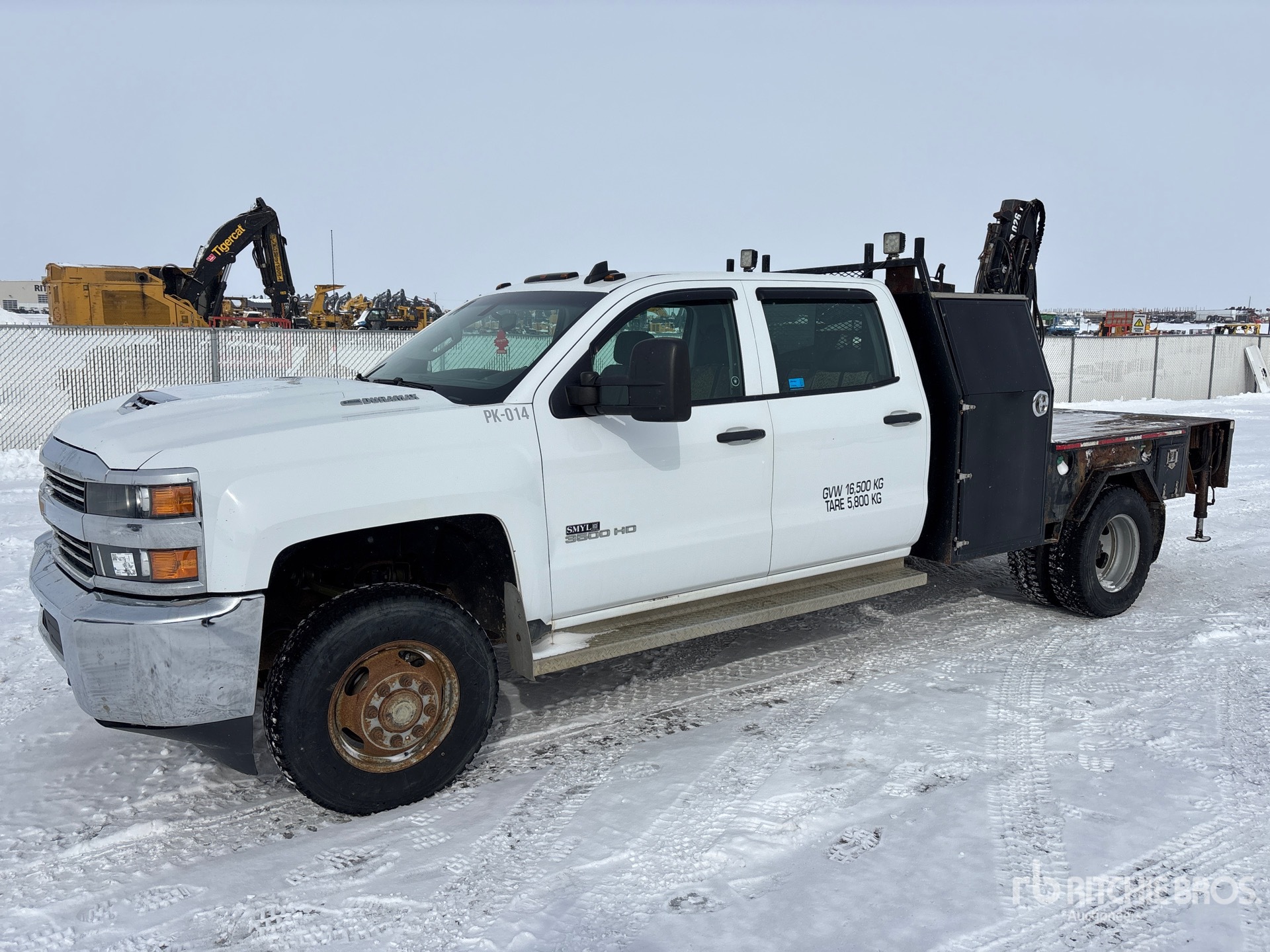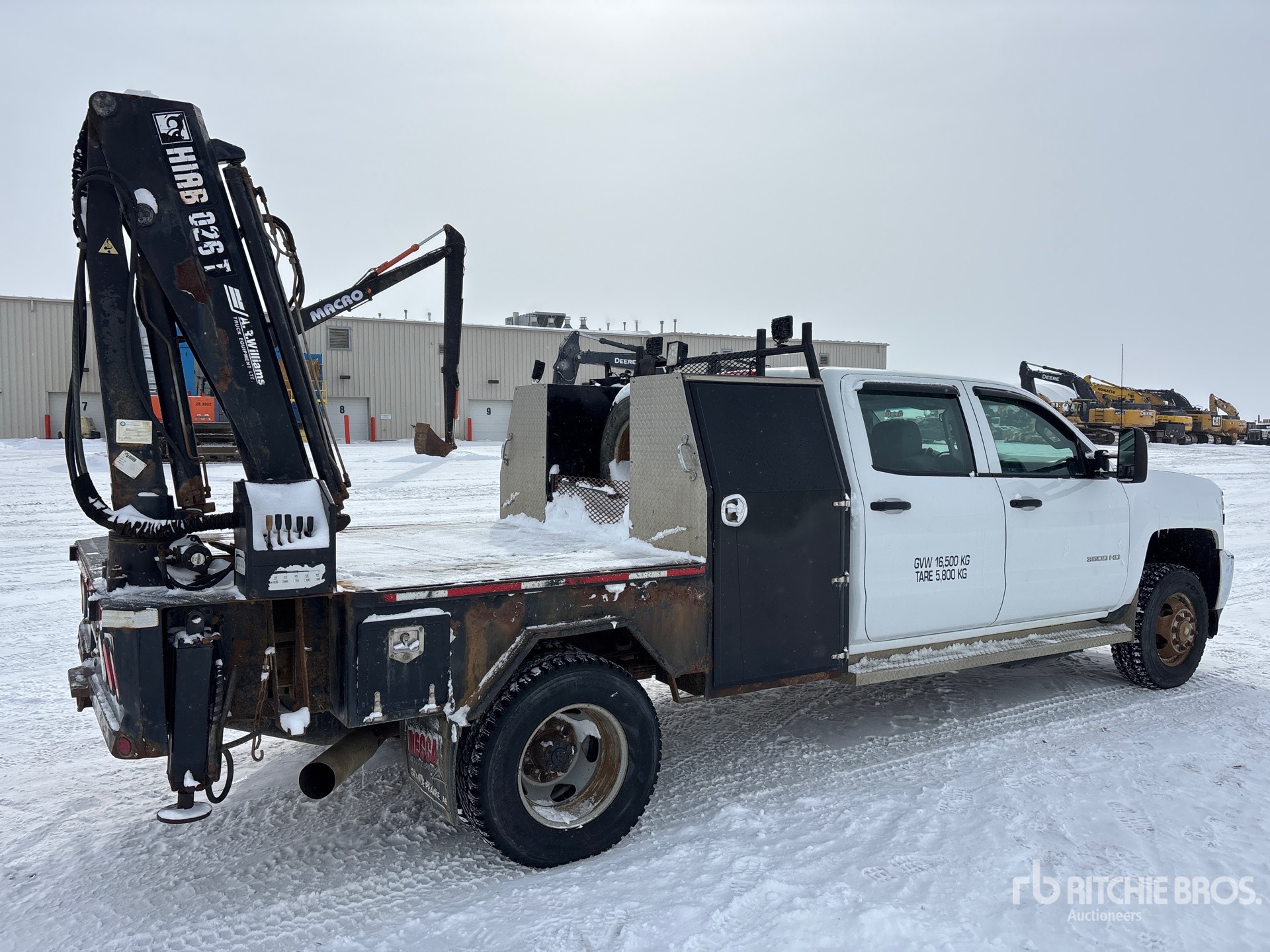 6.6 L Diesel Engine, 4879 Engine hrs, Exhaust Brake, Allison Automatic Transmission, 5600 lb Front Axle, 9750 lb Rears, 13200 lb GVWR, 235/80R17, Spring Suspension, 169 in Wheelbase, PTO, 1.4 m - 4.6 m 3 Section Boom, Out and Down Outriggers, 2006 Hiab 026 1820 kg Crane, 7 ft x 82 in Bed