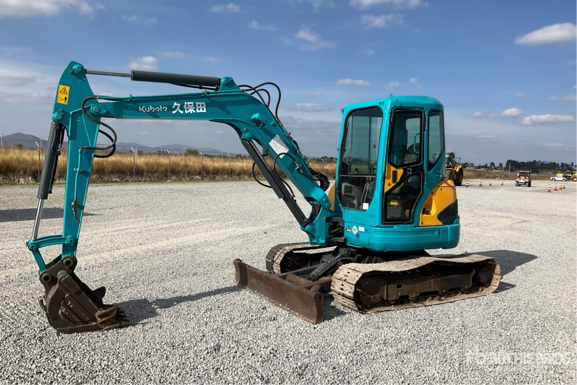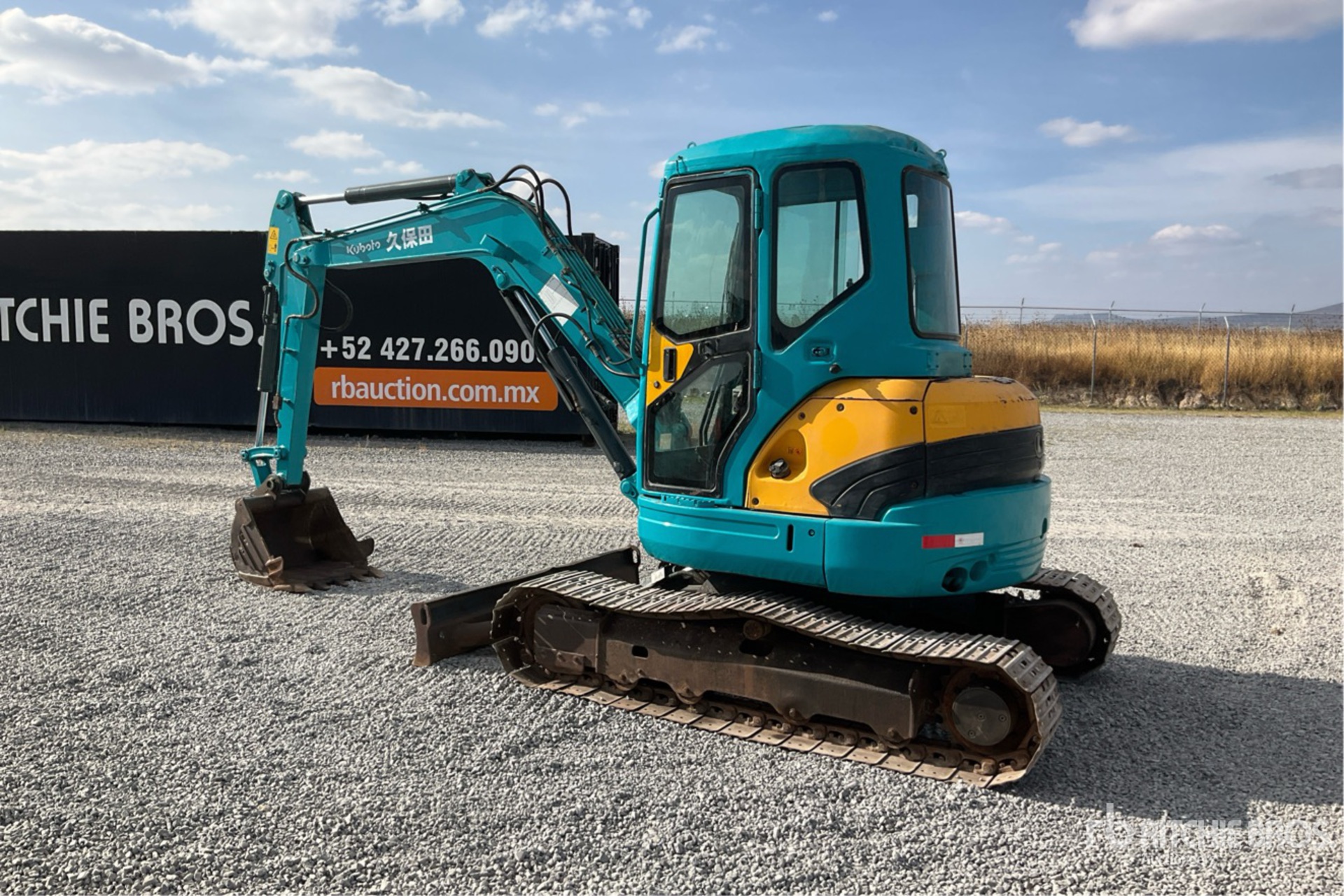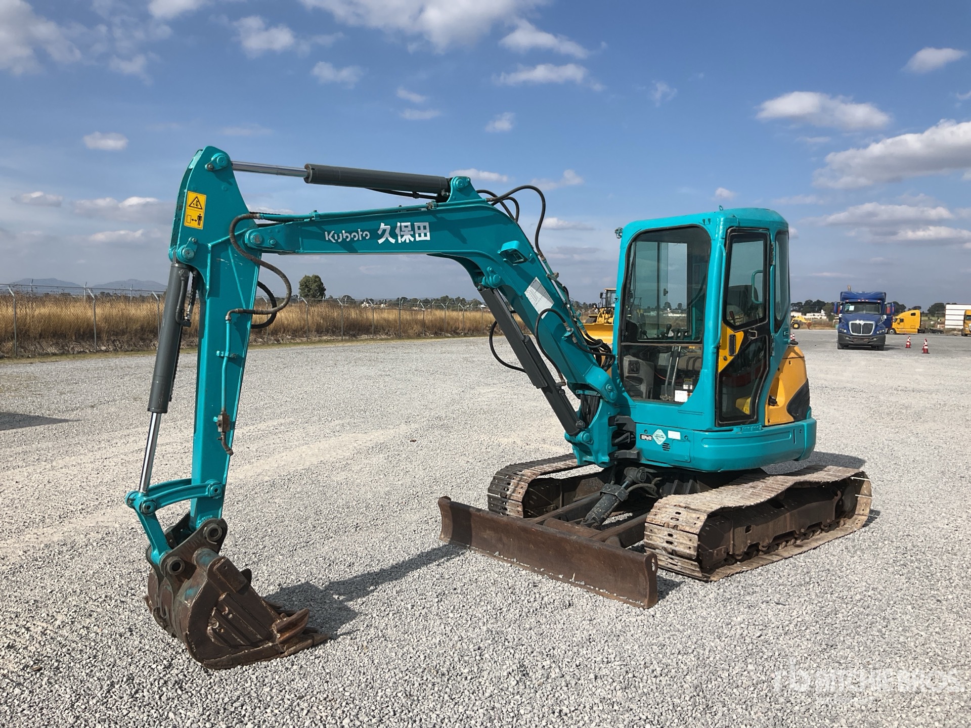 Enclosed Cab, 4 ft 11 in Stick, Auxiliary Hydraulic Plumbing, Backfill Blade, 16 in Triple Grouser Track Shoes, 27 in Digging Bucket, / Cabina, Brazo de 4 ft 11 in, Sistema Auxiliar Hidráulico, Cuchilla, Zapatas Triples de 16 in, Cucharón para Roca de 27 in