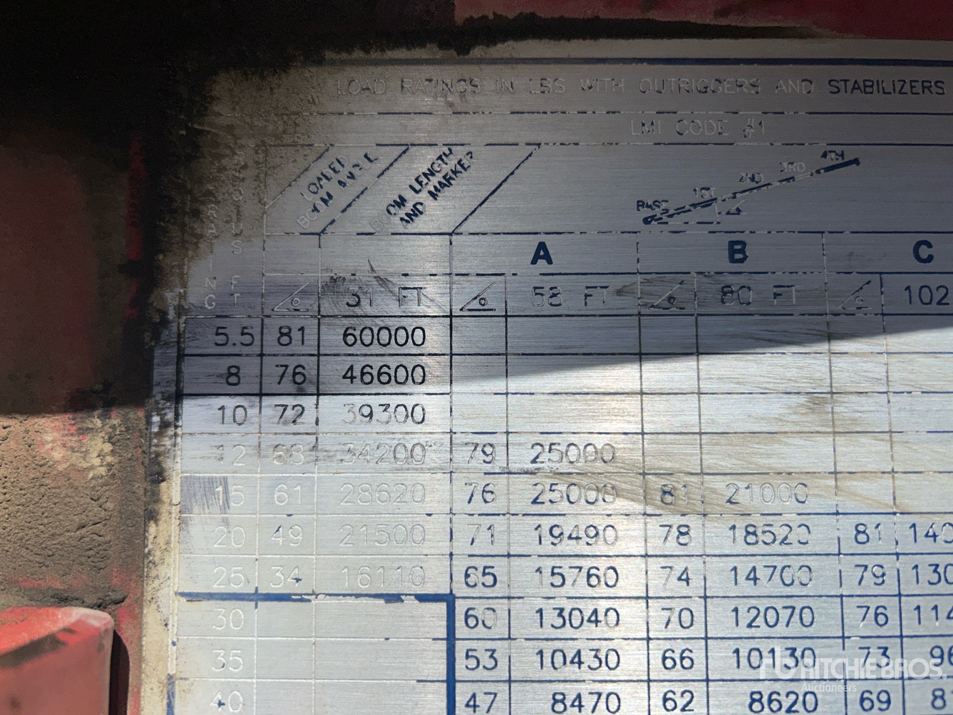 Cummins ISM 6 Cylinder Diesel Engine, 3529 Engine hrs, Engine Brake, Eaton Fuller 10-Speed Manual Transmission, Differential Lock, 18000 lb Front Axle, 40000 lb Rears, 58000 lb GVWR, Aluminum Wheels, 315/80R22.5 Front Tires, 11R22.5 Rear Tires, Double Frame, Rubber over Walking Beam Suspension, 260 in Wheelbase, PTO, 124 ft 5 Section Boom, 31 ft - 31 ft Jib, 150 lb Ovrehaul Ball McKissick 276 lb 1 Sheave 15 lb Capacity Hook Block, Dual Controls, Rear Outriggers, 5th Outrigger, Manures 30124 60000 lb 5 Section Hydraulic Crane, 22 ft 3 in x 96 in Bed
