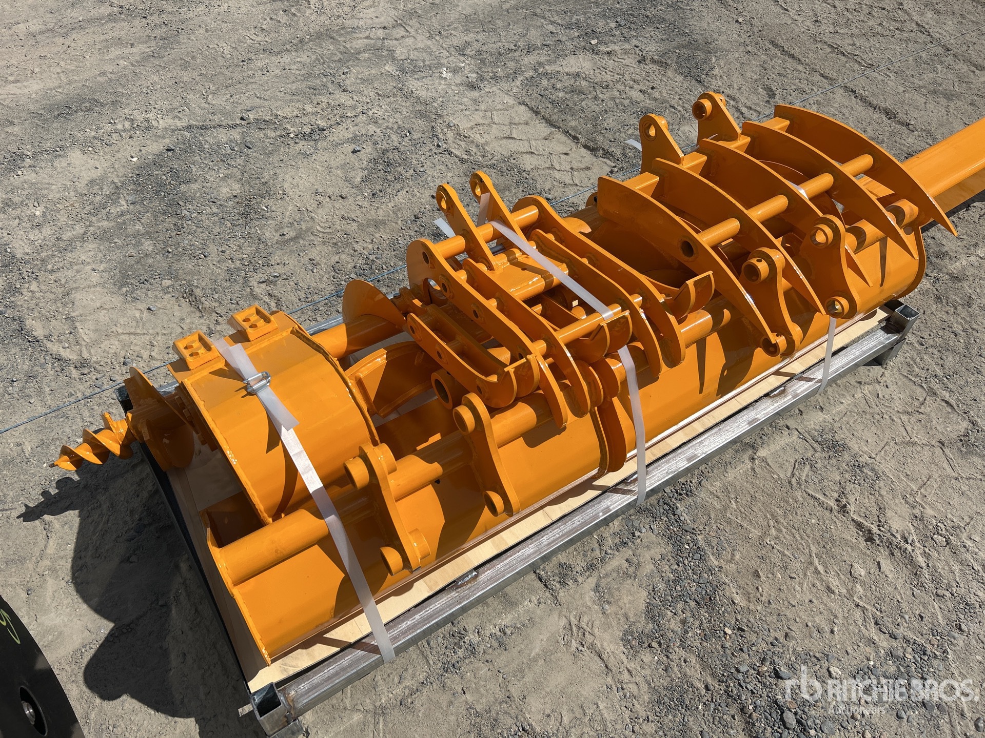 30 mm Diameter Pins, 130 mm Center of Pin Boss to Center of Pin Boss, 105 mm Inside to Inside Pin Boss Spacing, (1) Rake, (1) Ripper, (1) Grapple, (1) Auger w/ 12 in & 16 in Auger Bits, (1) 8 in Narrow Bucket, (1) 24 in Bucket, (1) 32 in Bucket ; Product images displayed are stock photos. Item is new/unused.