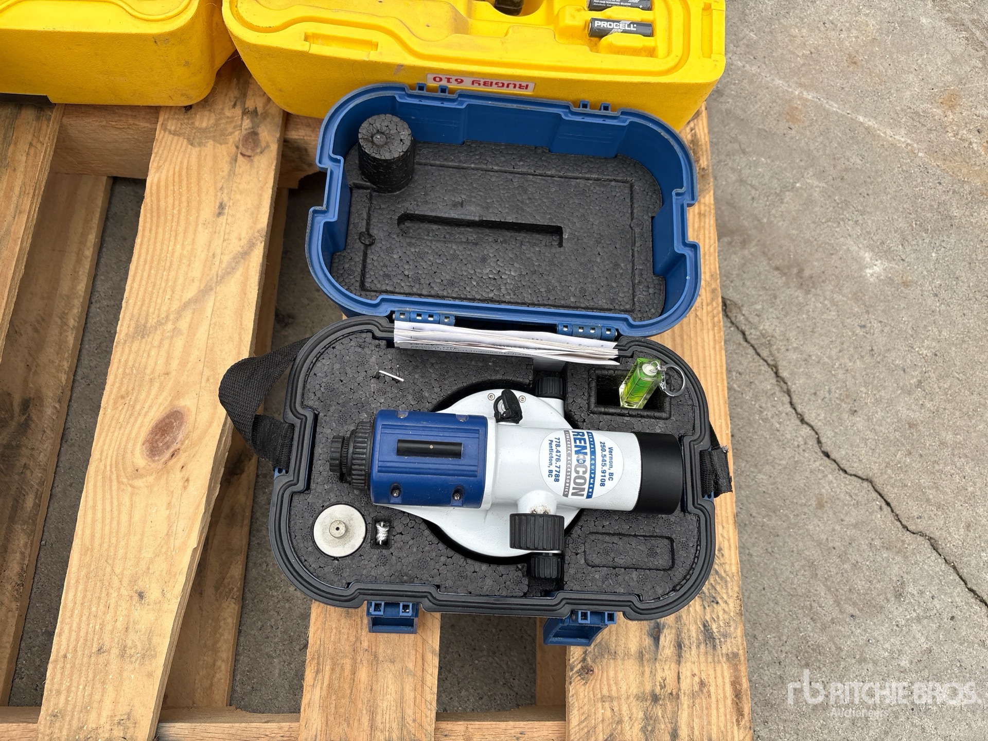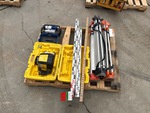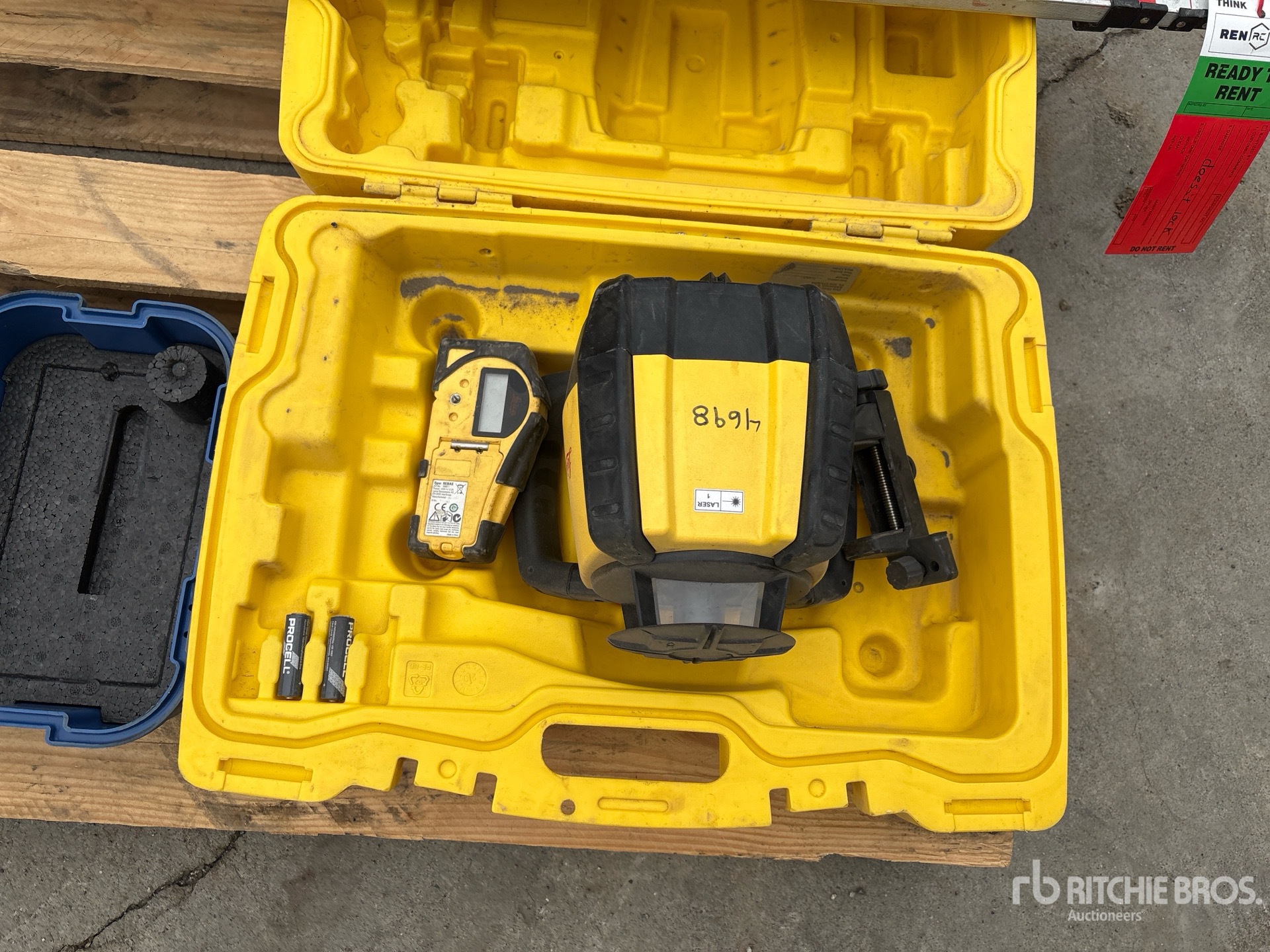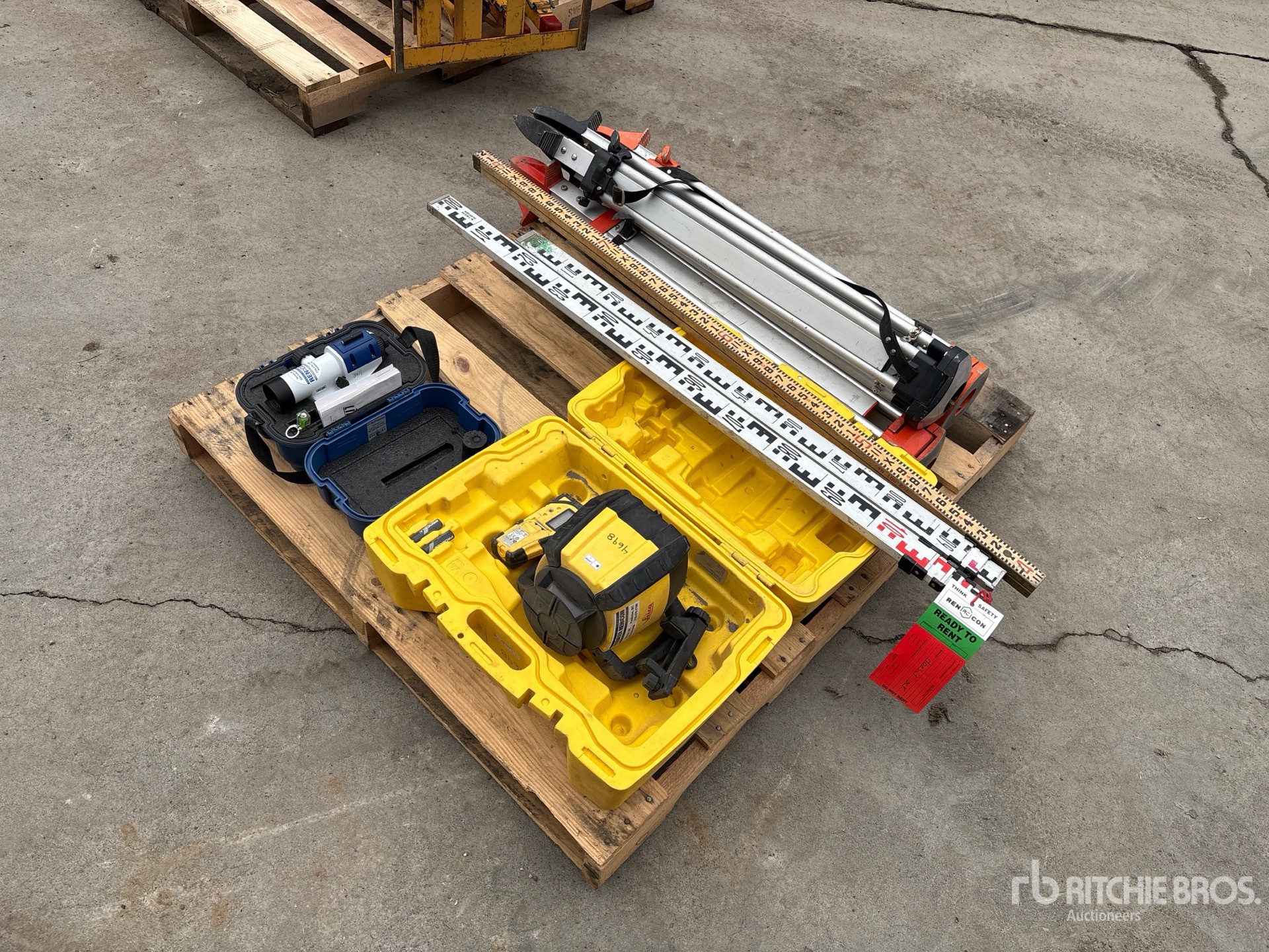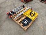 (3) Tripod Stands, Yard Sticks, Line-Site Laser Level, Leica Rugby 610 Rotating Laser