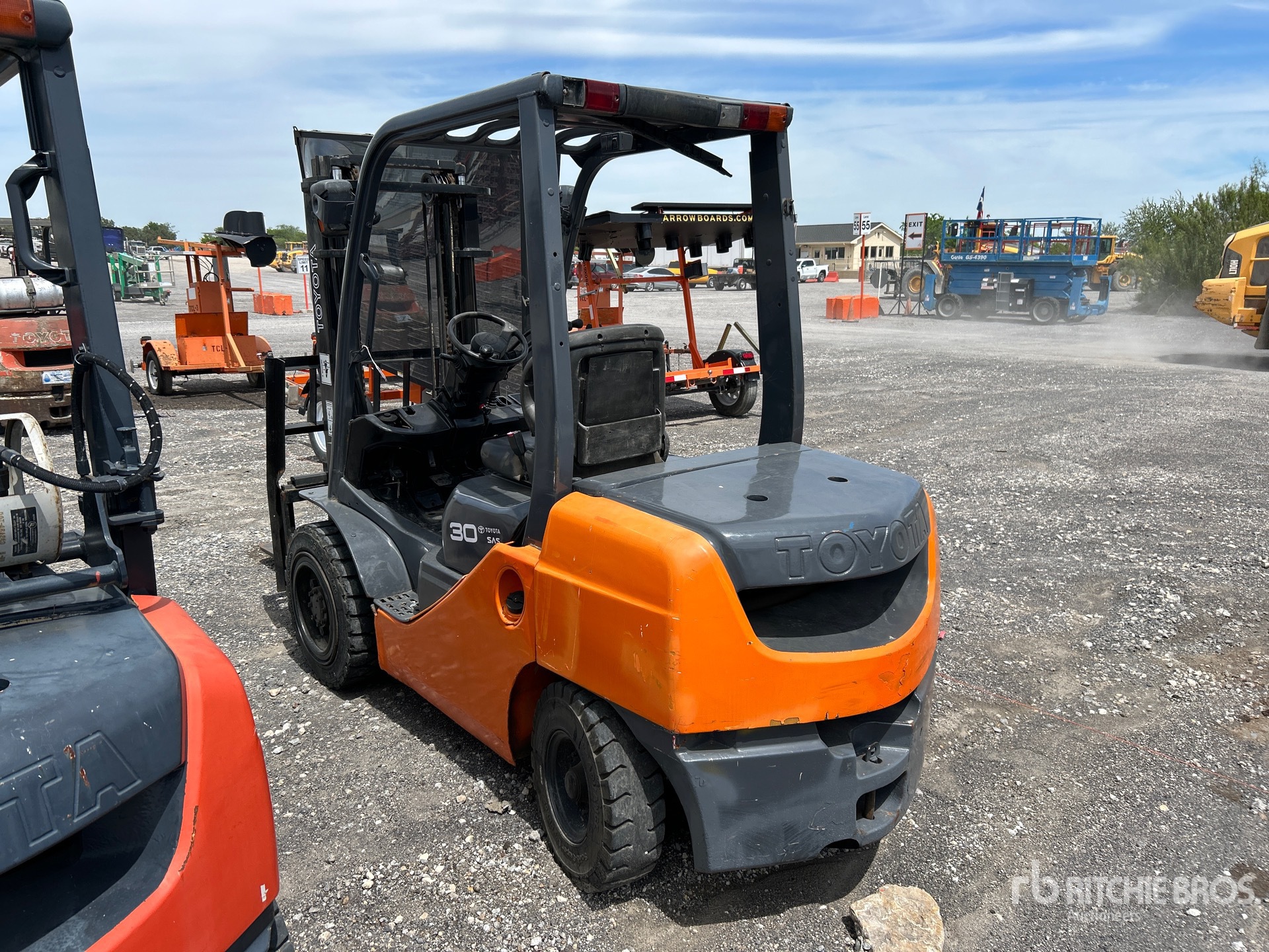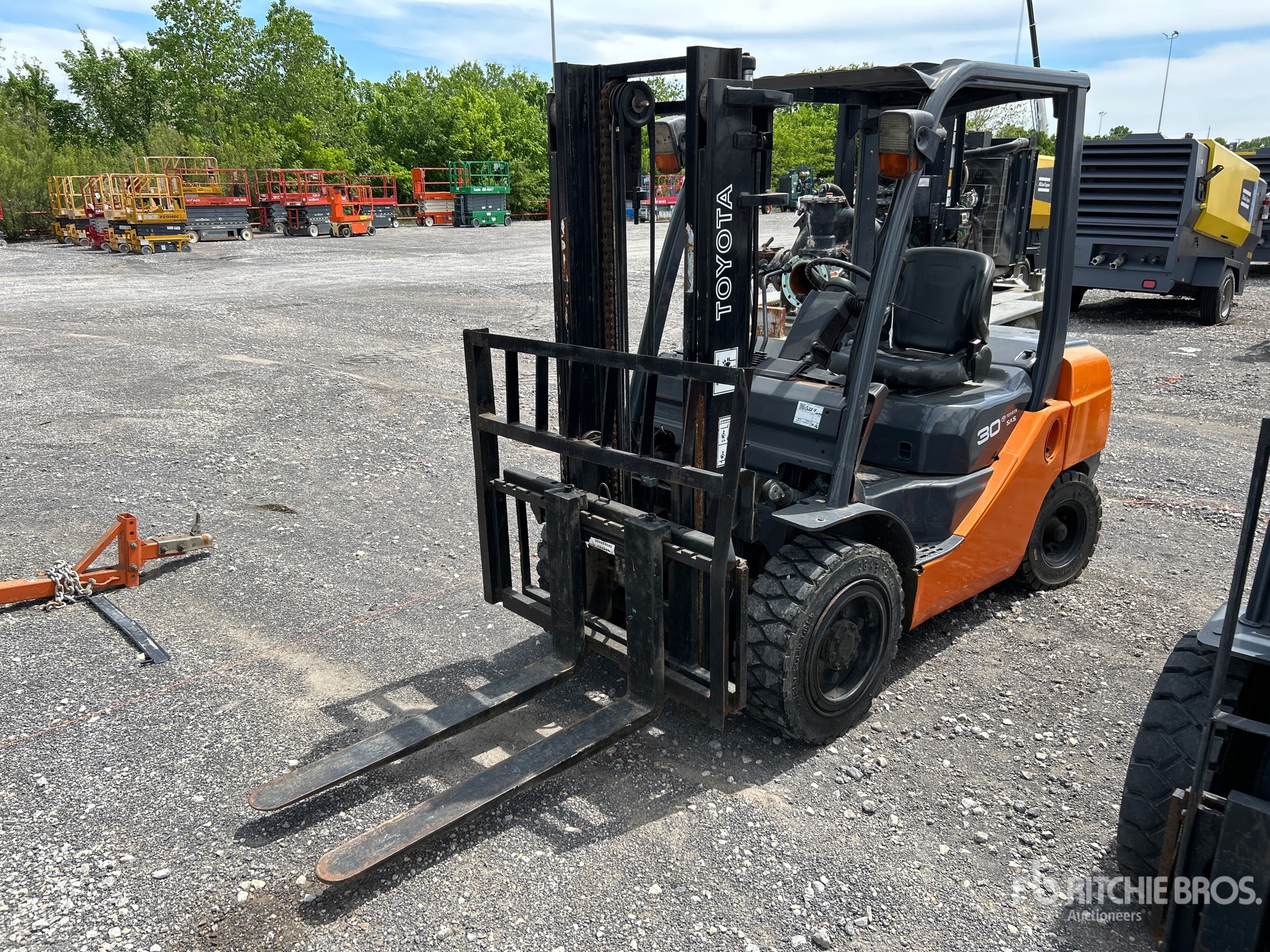 2 Stage Mast, 82 in Lowered Mast Height, 42 in Forks, Side Shift, Solid Pneumatic Tires