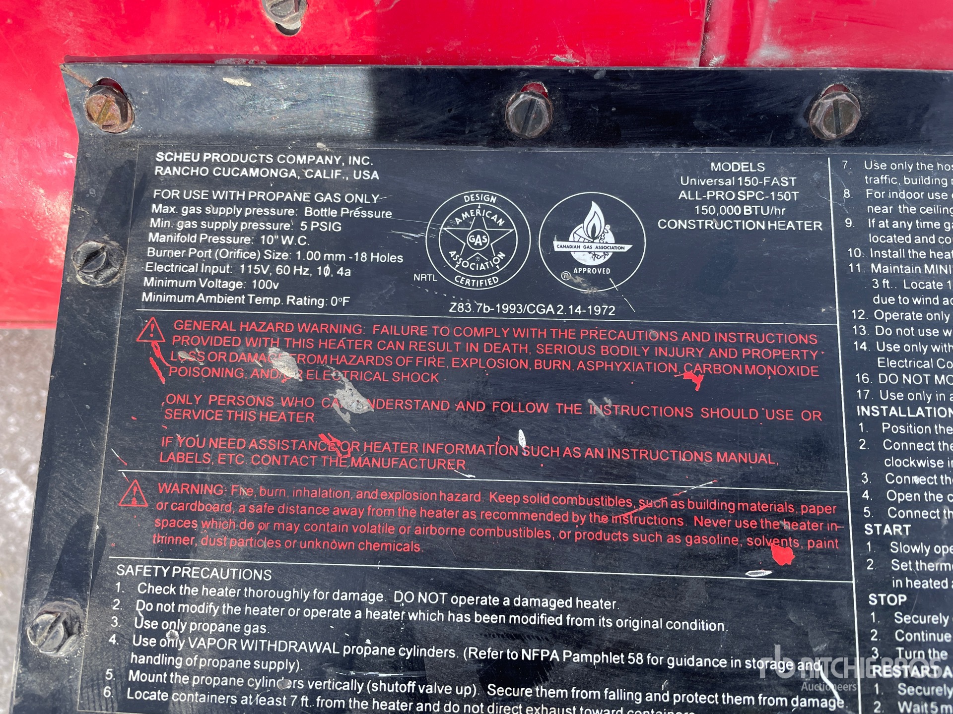 Propane Fueled, 100 V / 115 V Input
